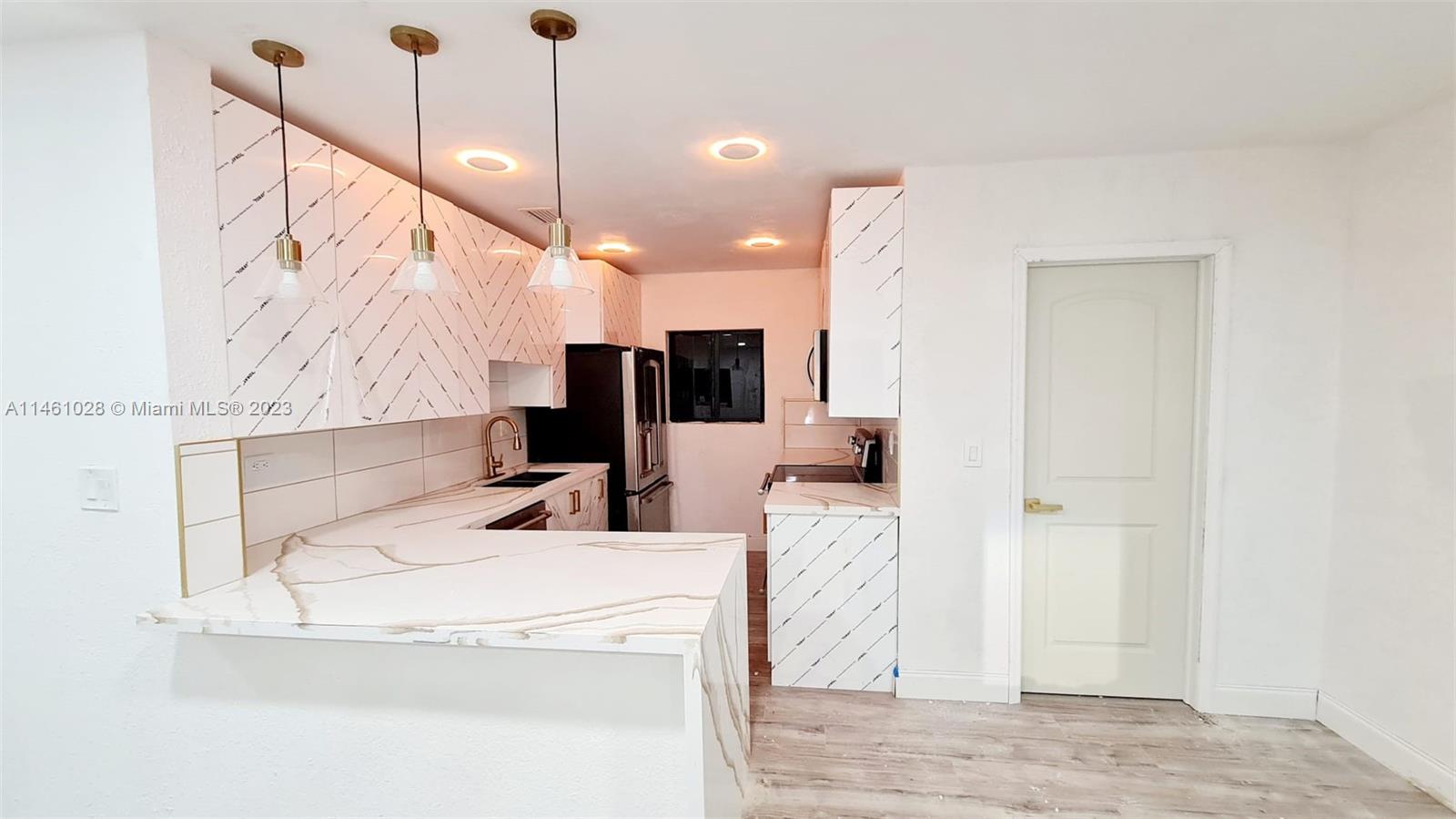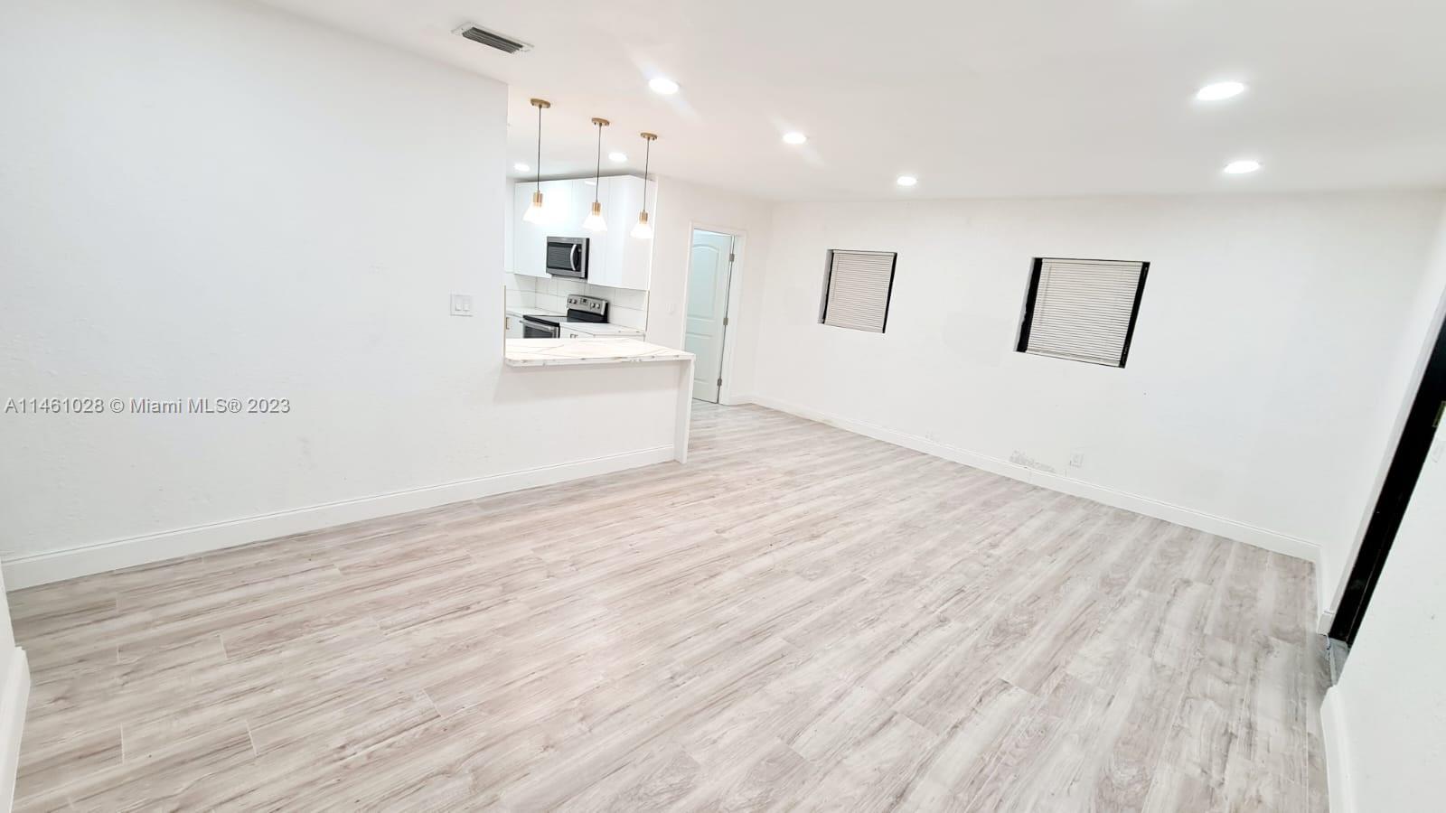 Fully remodeled 3 bedroom 2 bathroom home, located on a one-way street. This home has been completely remodeled and is ready for move in! It features an open floor plan, with a chef's style kitchen and custom acrylic cabinets and quartz waterfall countertops. It includes new Central AC throughout, halo recessed lights, hurricane impact windows and doors, and brand new upgrades including a new roof (2023), tankless water heater etc. The stainless steel appliances, washer & dryer connections, porcelain tile bathrooms, and luxurious vinyl wood floors truly make this home a turn-key investment for its future owner. Gated yard, privacy hedges for ample privacy! This home has ample parking and is located in a quiet neighborhood just east of the Turnpike