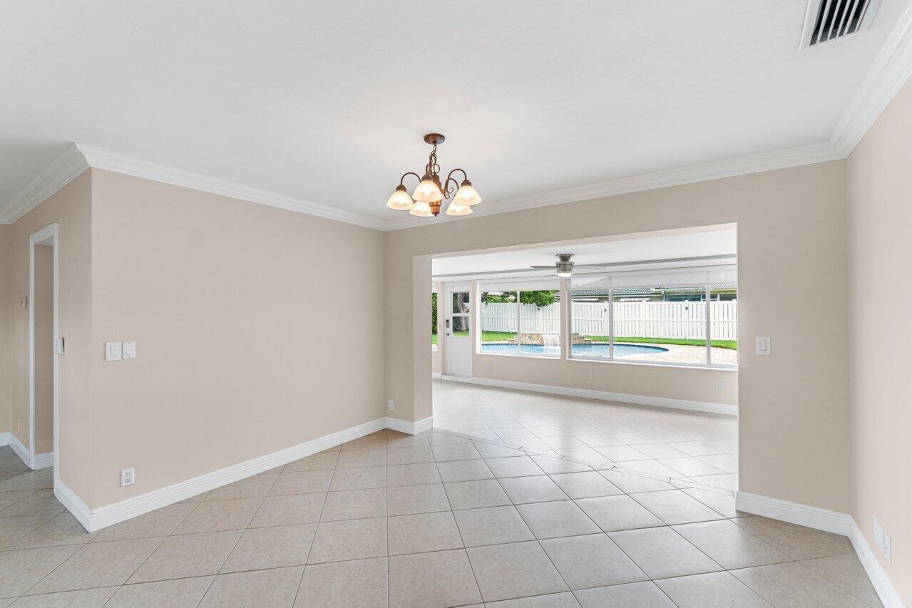Welcome home to this spacious and beautifully appointed single-family home in the highly sought-after Boca Raton Square. Brand New Roof, Chicago brick paver driveway, custom built pool, welcoming entry that leads you to a large living room, and formal dining room area. Open floor plan. Kitchen is complete with stainless steel appliances and a granite countertop. Florida Room offers plenty of space for additional living and entertainment options. The custom primary suite is a true retreat with its ensuite bathroom that boasts a spa tub, walk-in shower, and a double vanity. French doors provide convenient access to the backyard, where you'll find a true tropical oasis. NO HOA. Baby gate for pool.