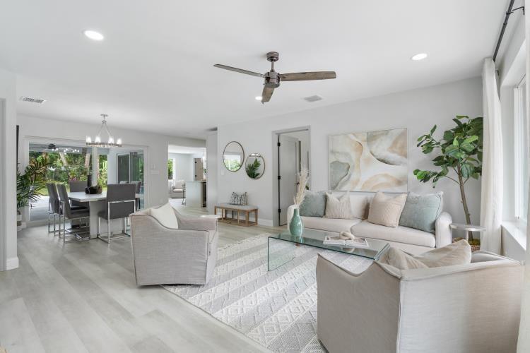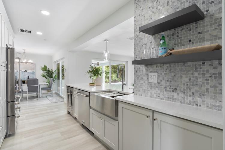 Beautifully remodeled 4/2 pool home in East Boca that boasts a rare oversized lot filled with tropical plants and trees. Home exterior consists of a new metal roof, new paver driveway, and resurfaced pool and spa. All exterior openings are complete with City of Boca Raton approved new hurricane impact windows and doors. AC units installed in 2022. New luxury vinyl flooring is installed throughout the home. Bathrooms are elegantly updated. The exquisite chef's kitchen is the heart of the home with an oversized eat-in peninsula, high end appliances, and a convenient pot filler. Home is in walking distance to Mizner Elementary School. This home is truly a turnkey tropical paradise awaiting its next family.