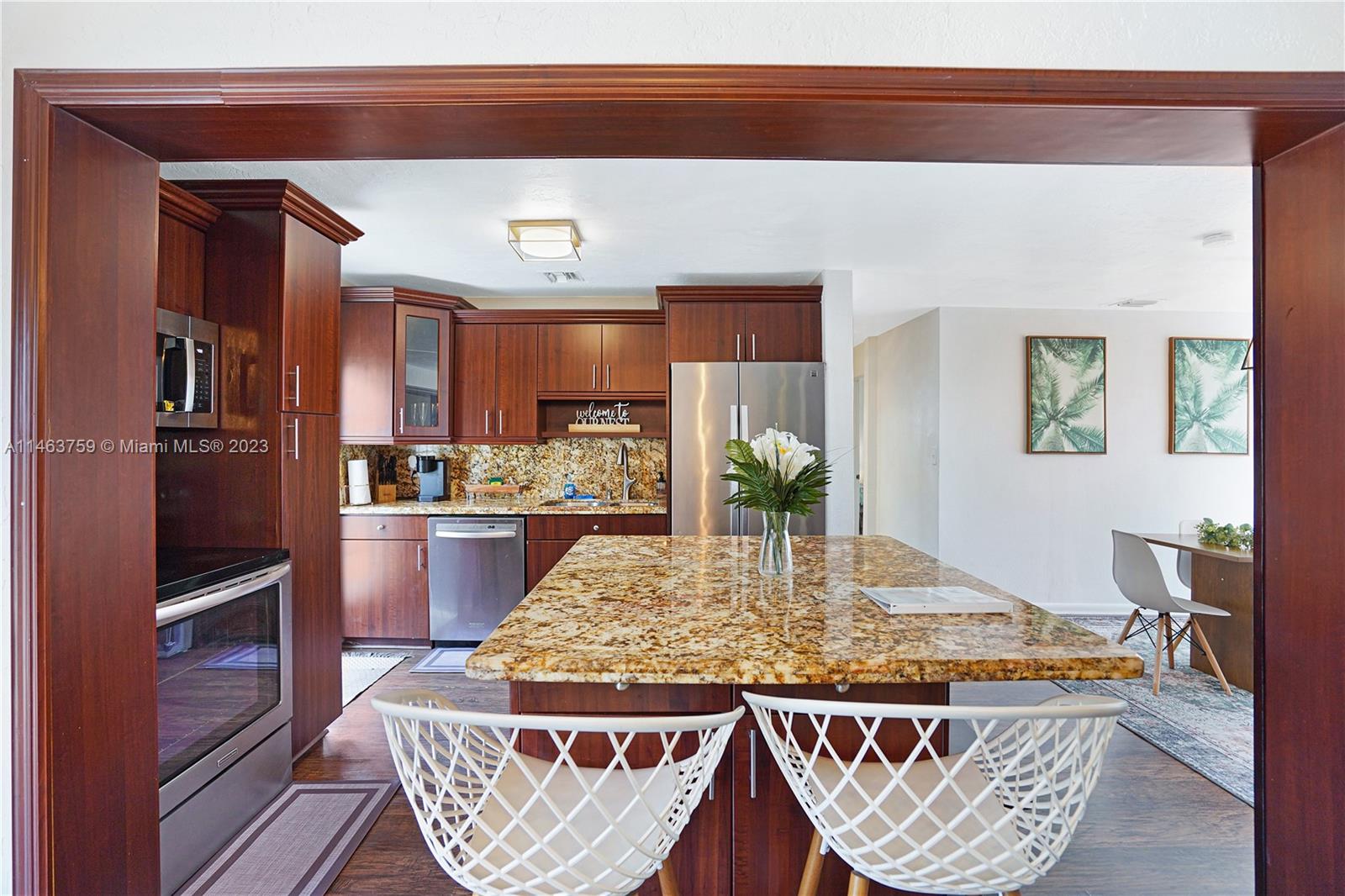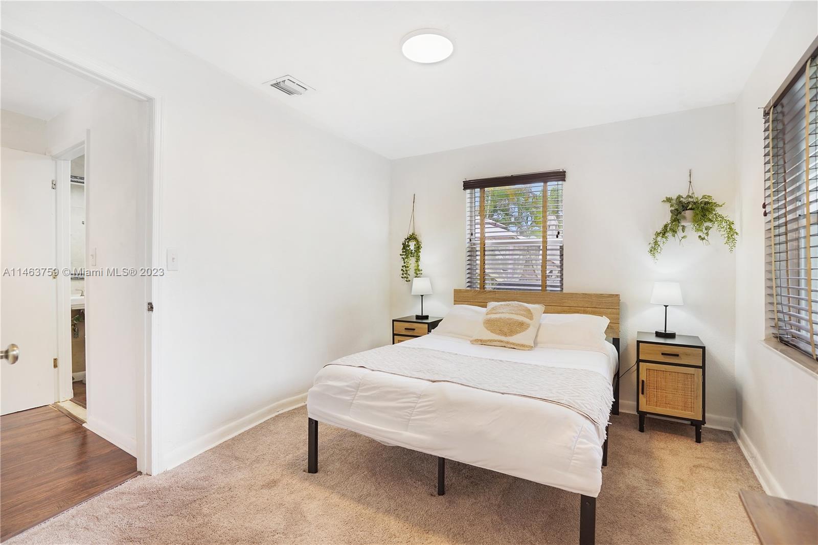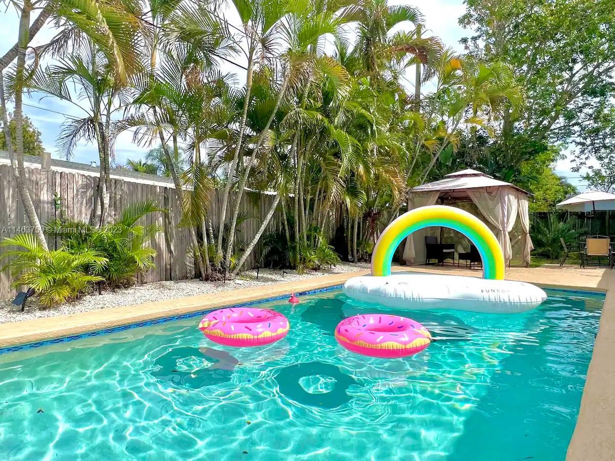 Welcome home to a tropical paradise with a stellar location close to shops, restaurants, the beach, and golf courses. The best of South FL at a comfortable price. The home has 3 bedrooms. One bedroom is a flex room with W/D. The open floor plan has an updated kitchen + island with granite countertops, dishwasher. The backyard is made for outdoor fun with in ground Pool and area for a family BBQ. Home features laminate floors, new carpet in bedrooms, fresh paint, lush landscaping, and much more. The yard includes a shed and fenced-in for your privacy. This property won't last, schedule your home tour today! Property is being sold furnished, OK to do Airbnb there are no rental restrictions.