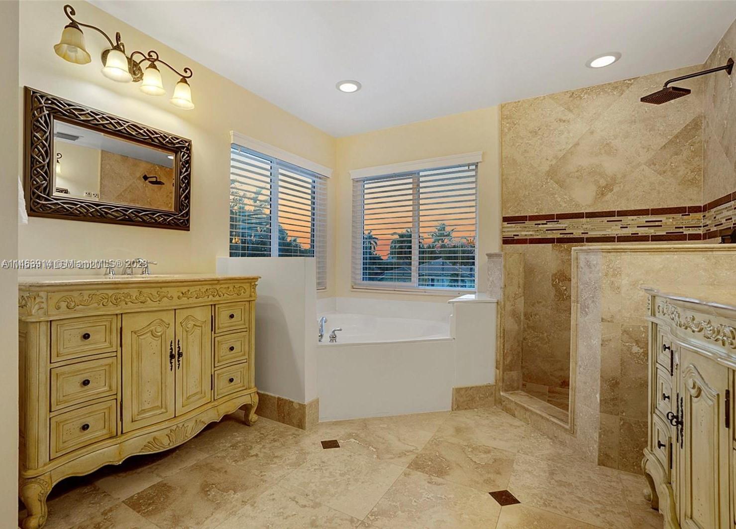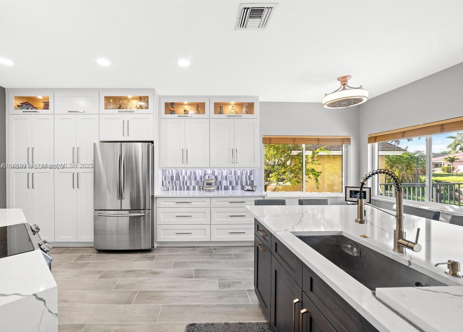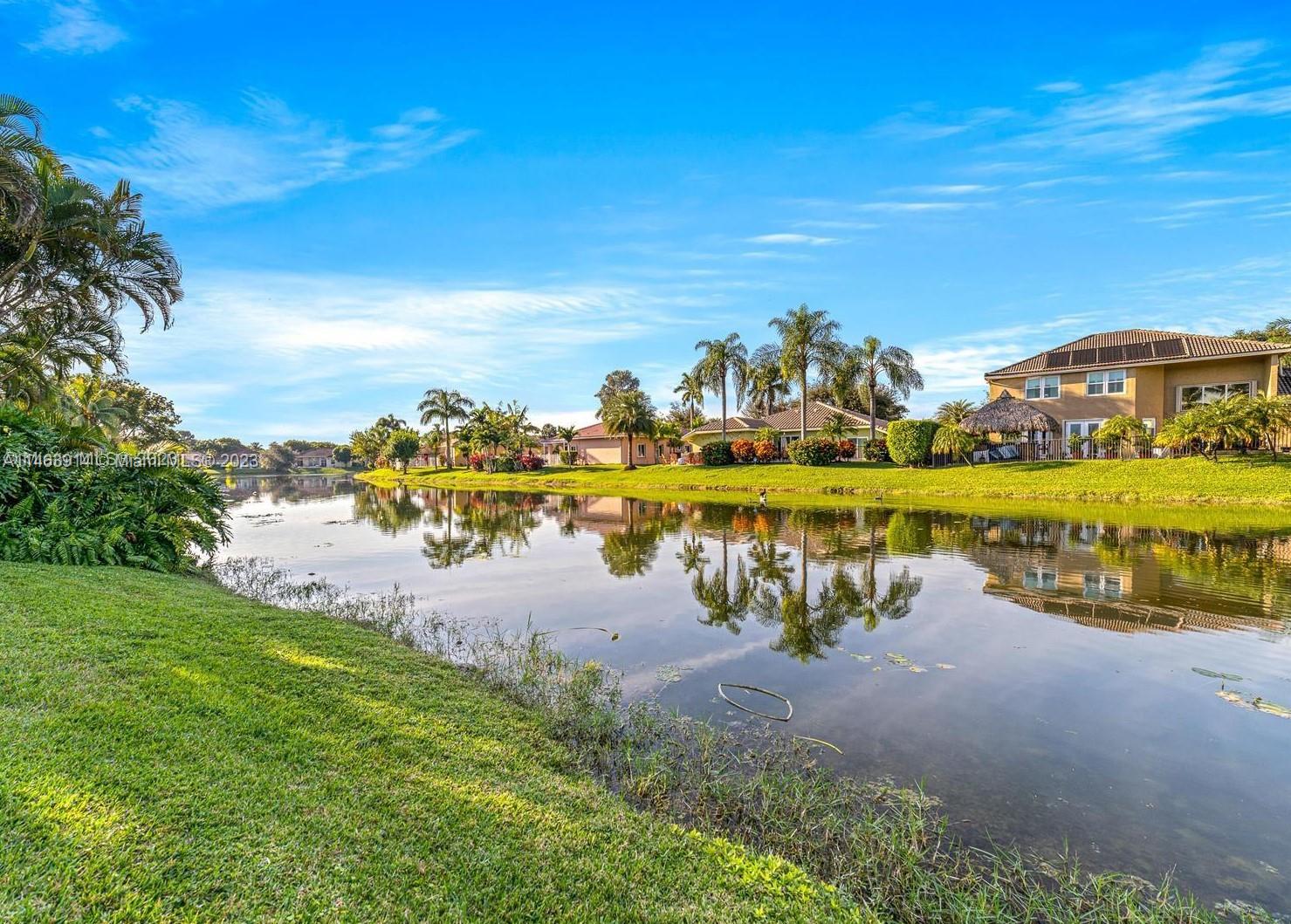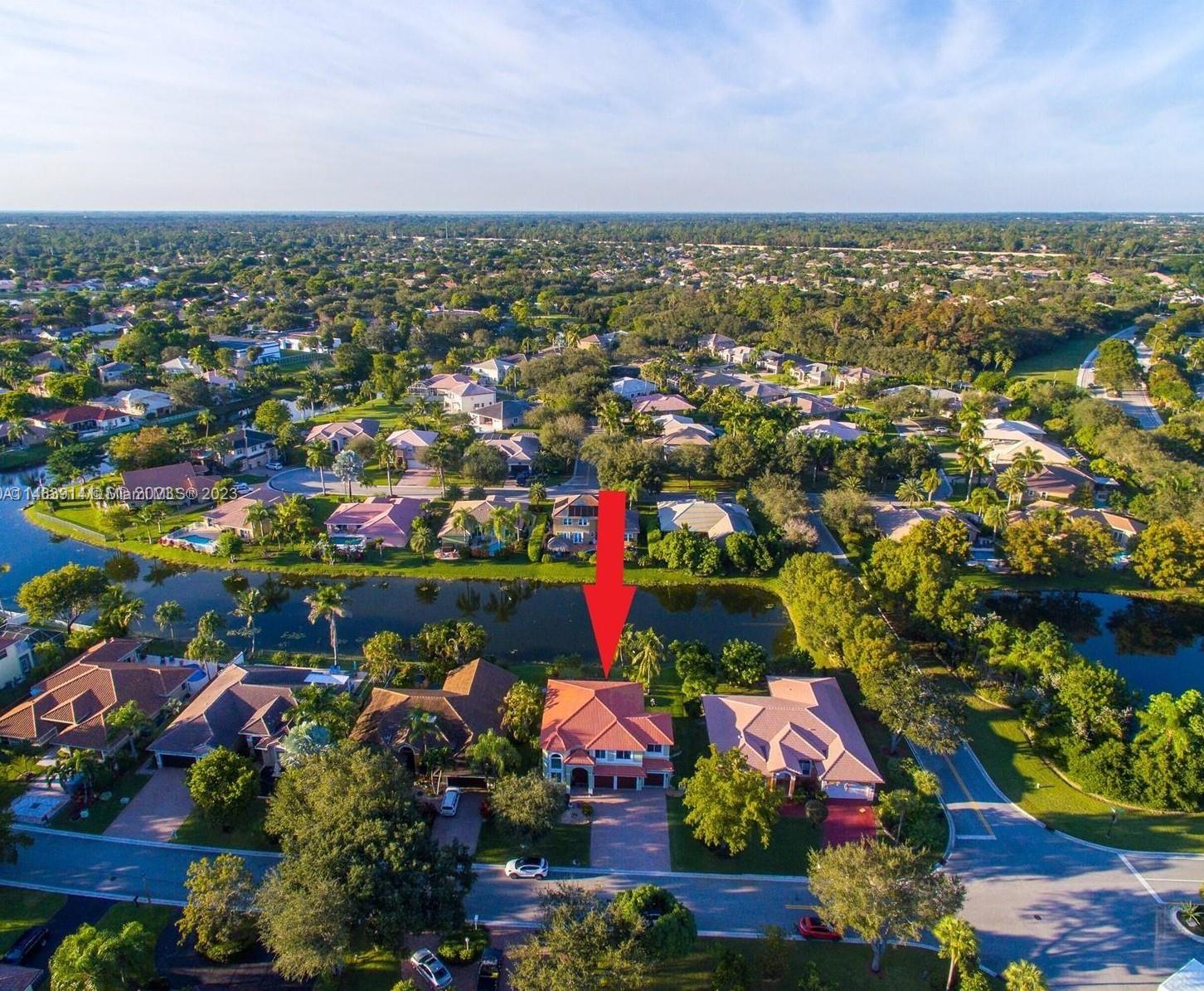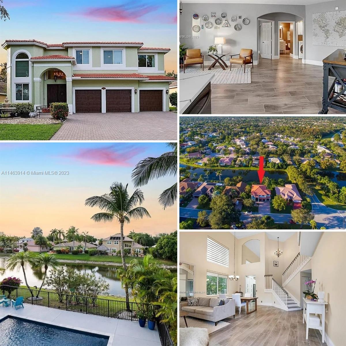 Gorgeous upgraded two story, 4 bedroom, 3 bathroom house for sale, with amazing lake view and swimming pool. Huge master suite with additional study area. Large updated kitchen space, top of the line appliances, oversized quartz island with breakfast bar. Very spacious and bright interior with many upgrades throughout the whole house, high ceilings, impact windows and doors, custom window treatments and 3 car garage. This house features a full bedroom and bathroom on the first floor, ideal for using as guest room or office. Very low HOA dues and no HOA approval needed.