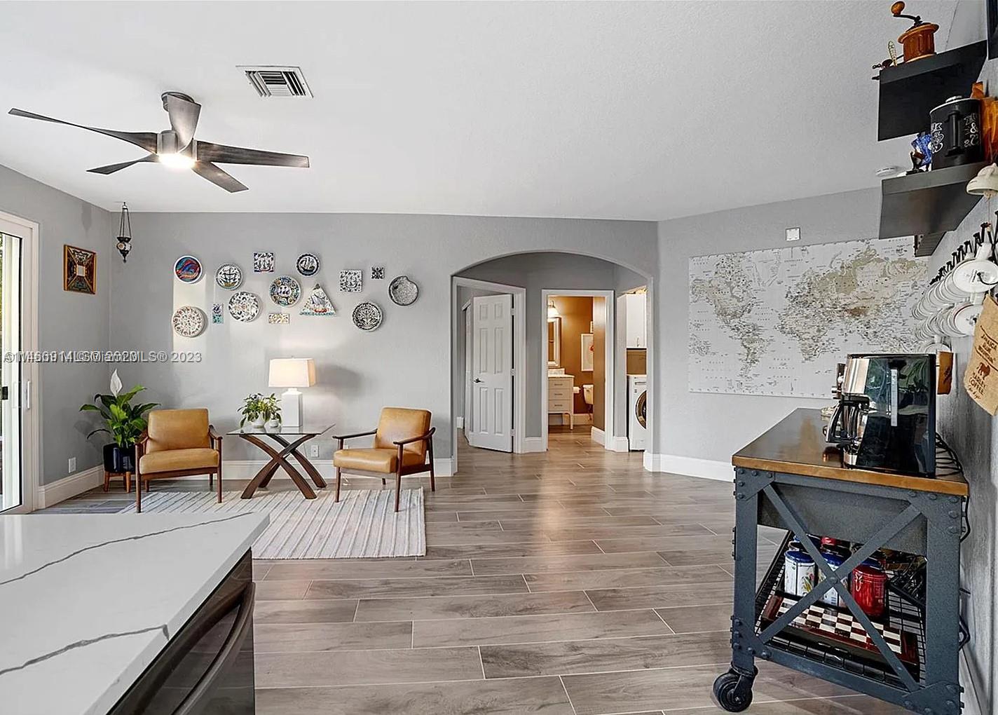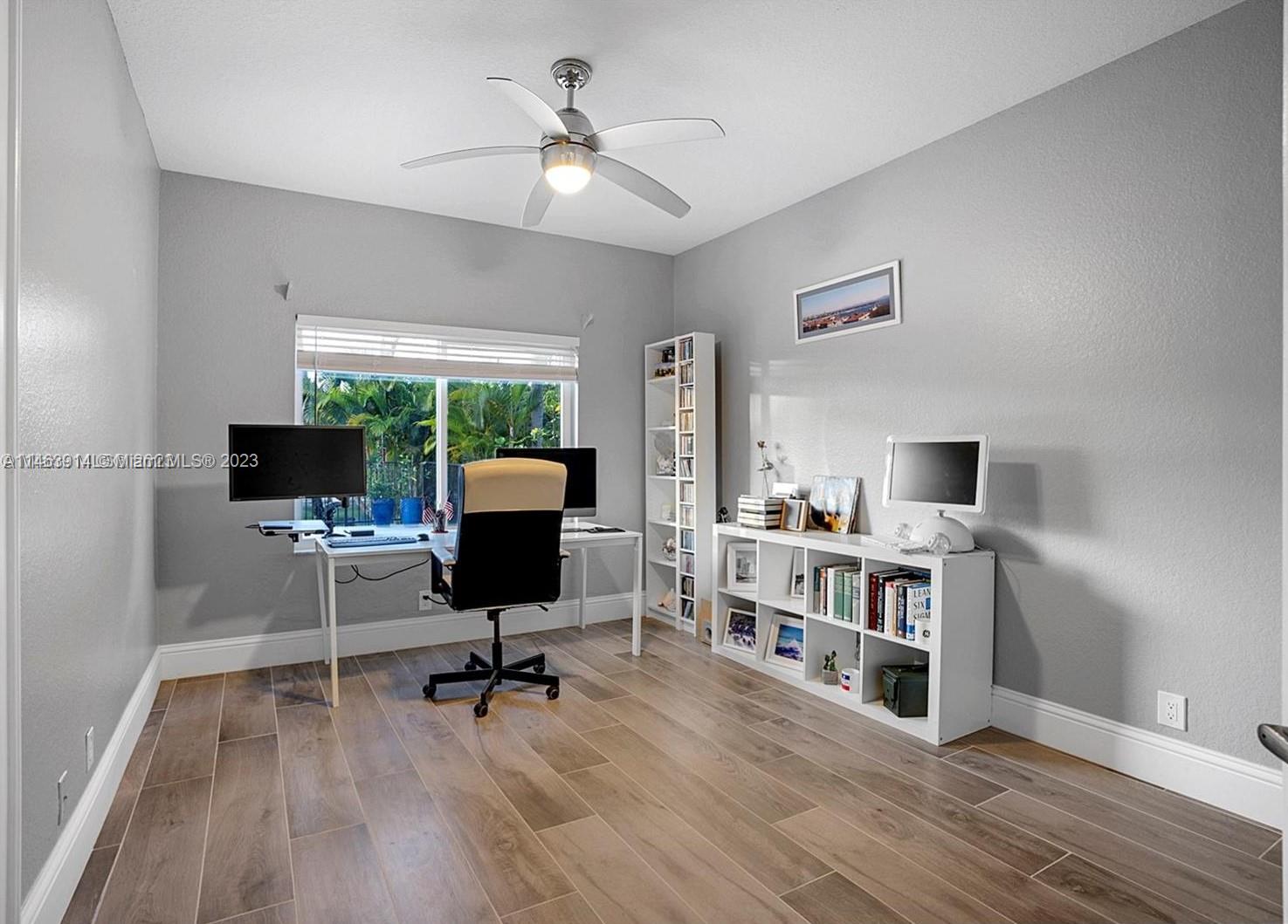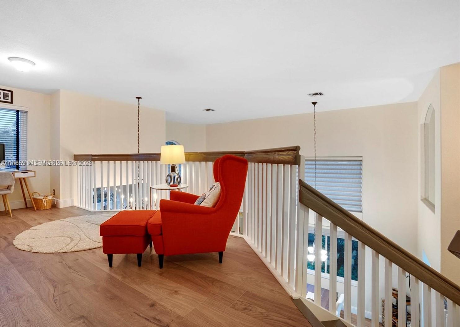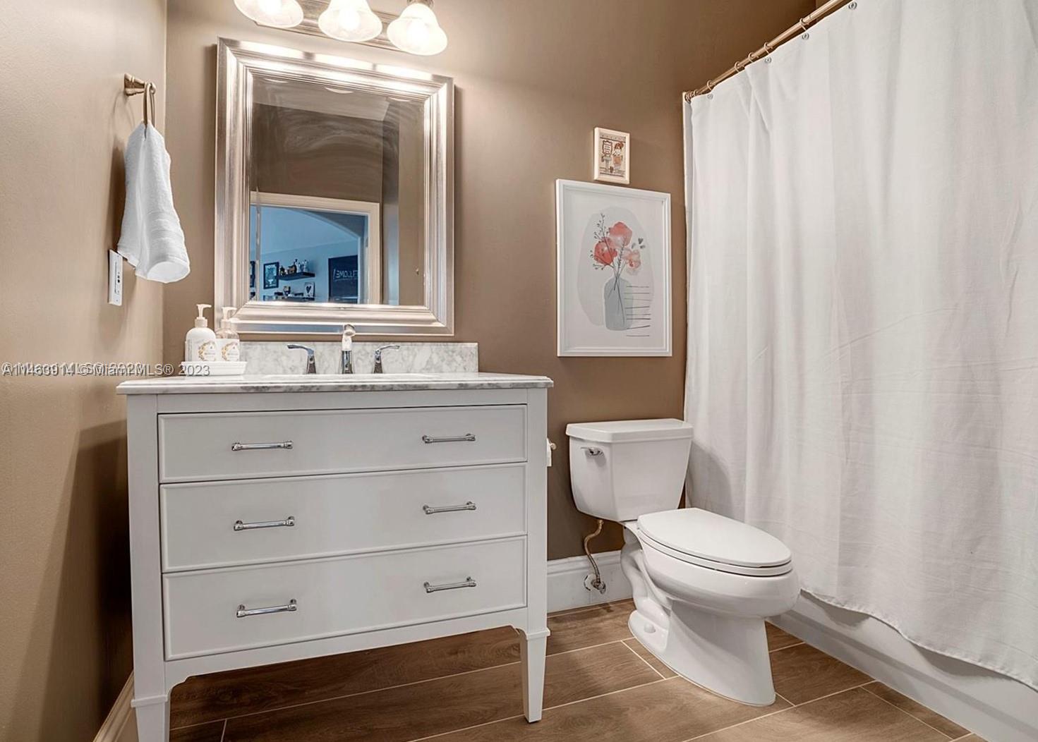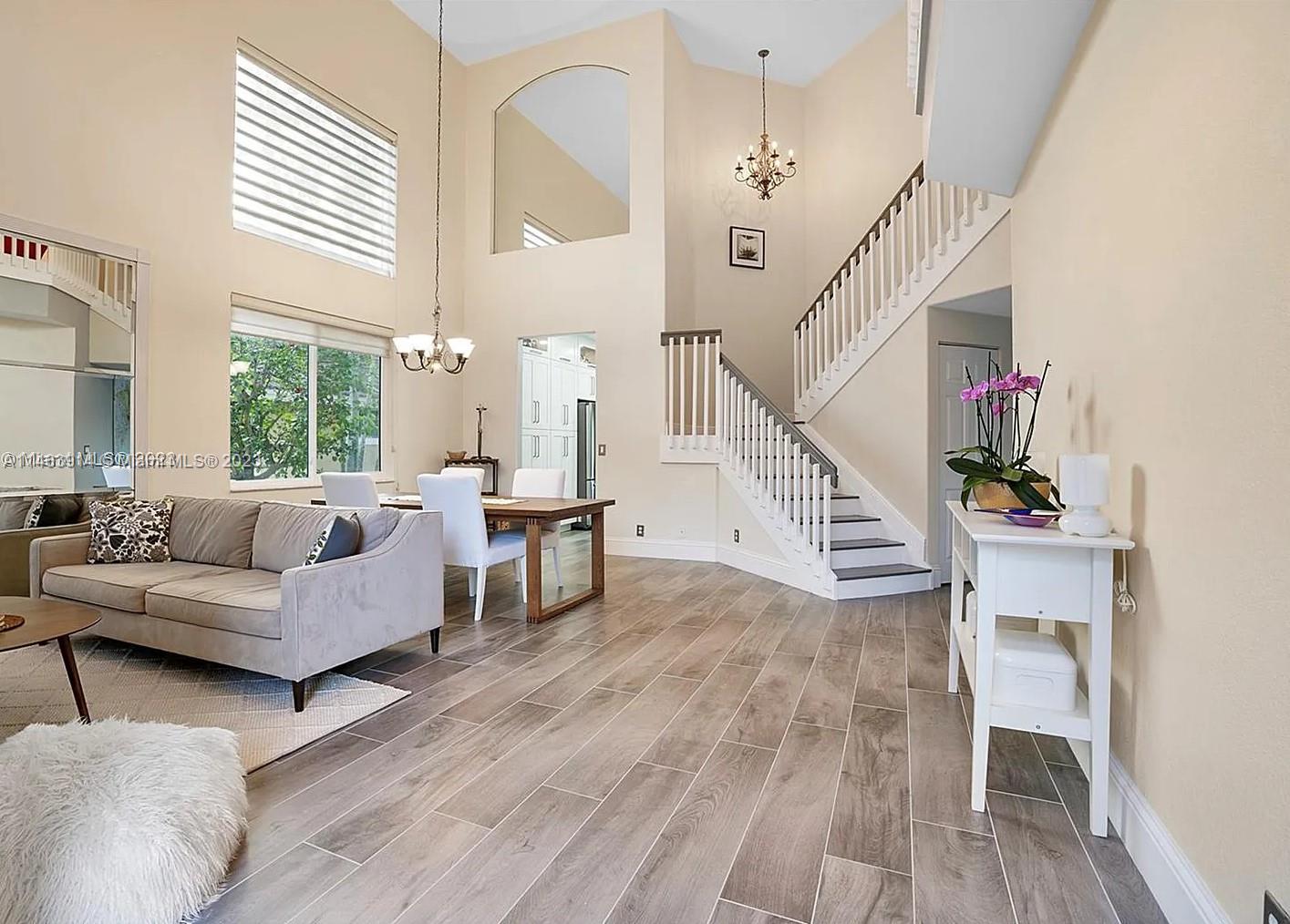 Gorgeous upgraded two story, 4 bedroom, 3 bathroom house for sale, with amazing lake view and swimming pool. Huge master suite with additional study area. Large updated kitchen space, top of the line appliances, oversized quartz island with breakfast bar. Very spacious and bright interior with many upgrades throughout the whole house, high ceilings, impact windows and doors, custom window treatments and 3 car garage. This house features a full bedroom and bathroom on the first floor, ideal for using as guest room or office. Very low HOA dues and no HOA approval needed.