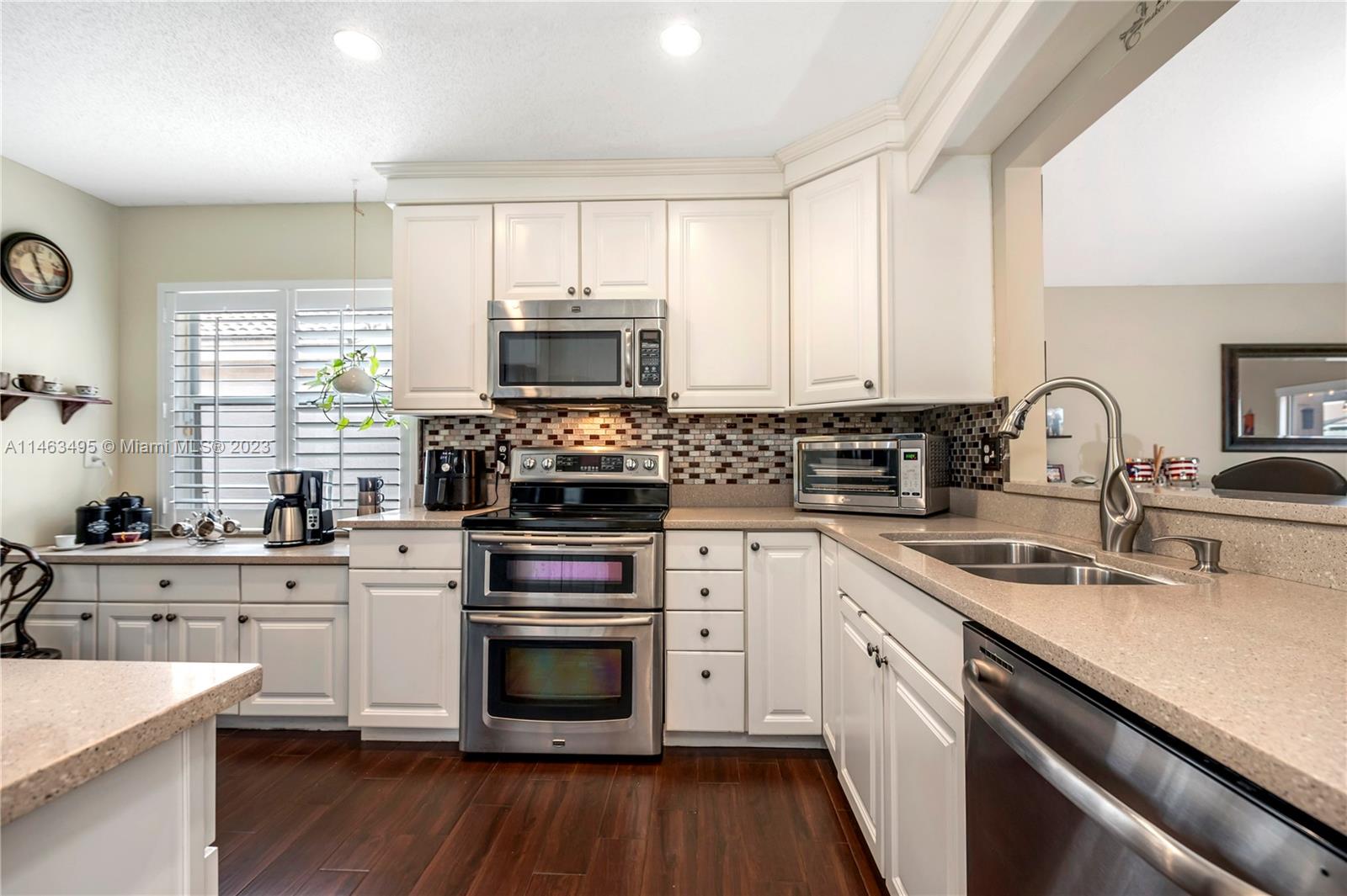 This charming house full of natural light creates an inviting atmosphere. Updated home located in Sapphire Bay includes stainless steel appliances, water heater and A/C are 3 years old, generous sized 2 car garage with epoxy coat floor. Access to an updated and spacious attic perfect for storage. The backyard fully fenced with covered area offers ample space for entertainment and relaxing moments with family and friends. Beautiful tile flooring throughout the living areas and wood flooring on the bedrooms are the perfect combination.