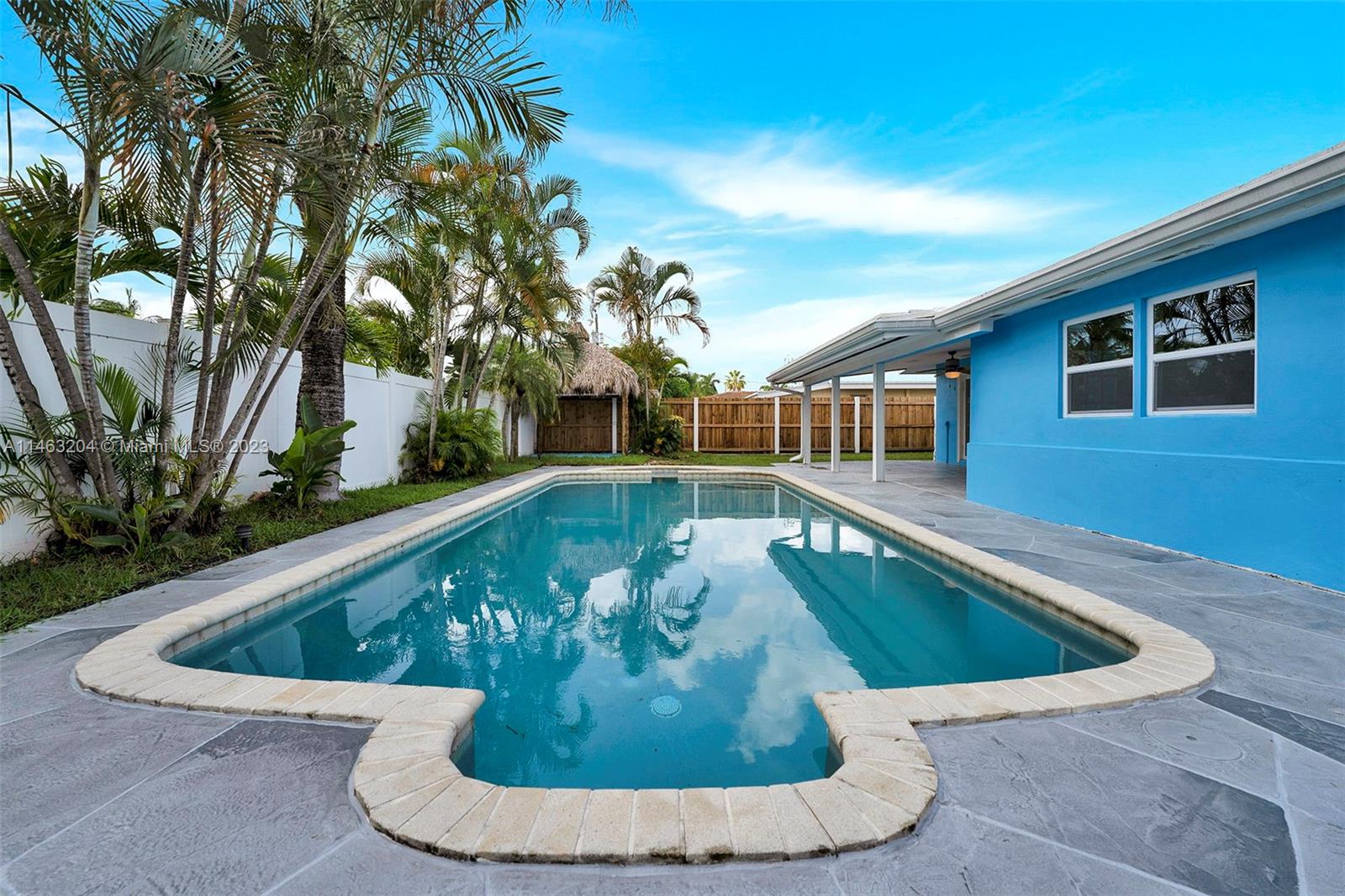 Beautiful home nestled on a quiet cul-de-sac street at the desirable Pompano Beach neighborhood. Open concept living, two bedrooms and one and half bathrooms with a great backyard and oversize salt water pool with attached hot tub and a tiki hut that makes a perfect combination for entertainment or family gatherings. This home features impact windows and doors, new and updated bathrooms and kitchen, new appliances, tankless water heater and, NEW ROOF! Conveniently located 5 minute drive to the beach and close to shopping, restaurants, entertainment and easy access to major roadways. Come see it and fall in love!