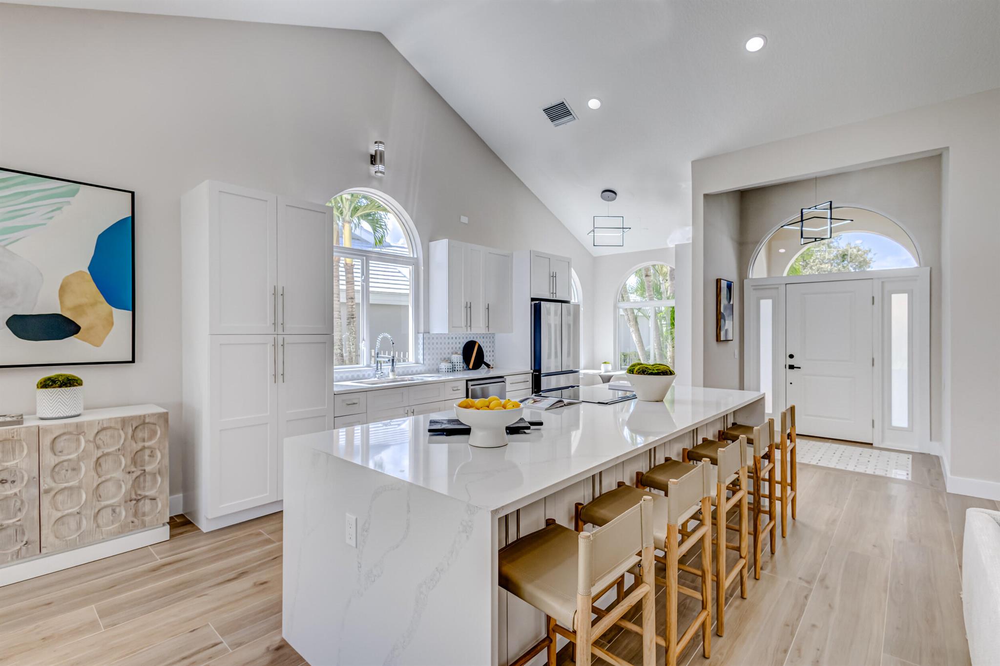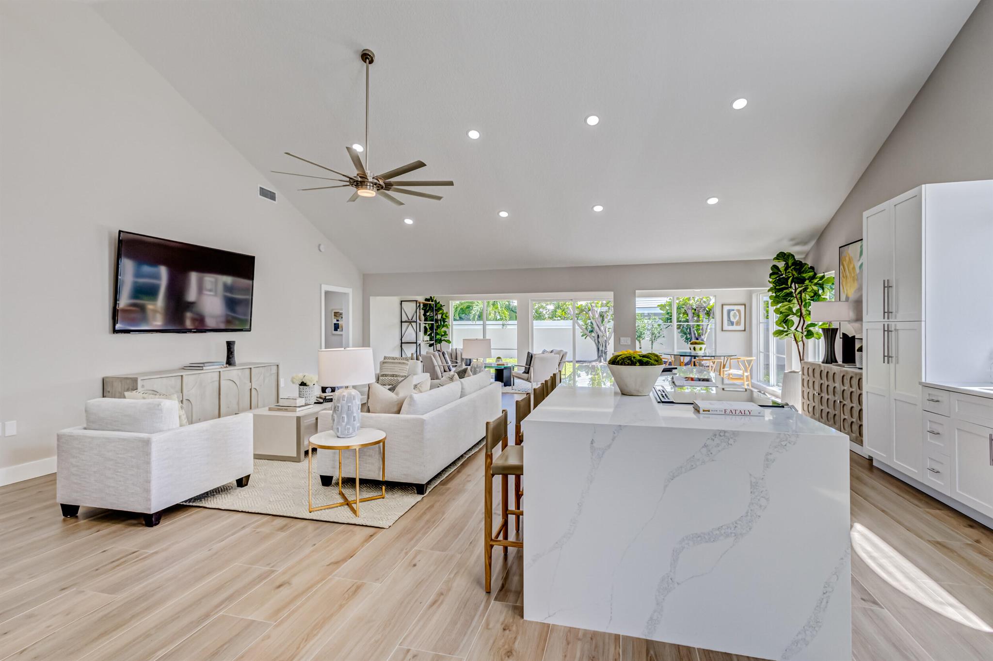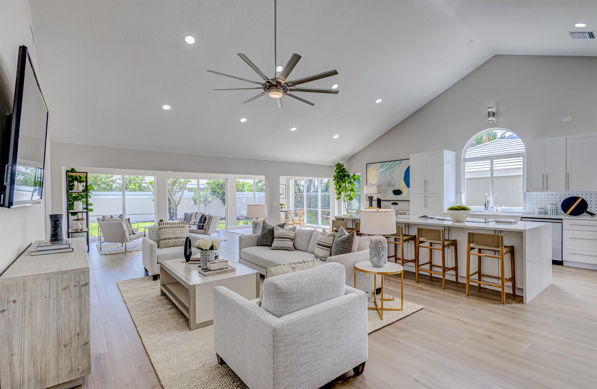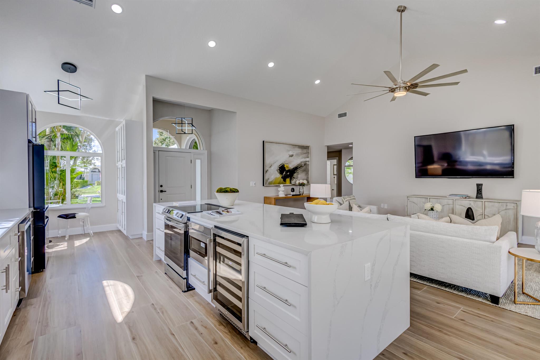 Masterfully designed, this stunning home has been COMPLETELY renovated withimpeccable craftsmanship throughout every detail. With over 2,200 SF of living area(and Bear Island's largest model), this single-story residence is ideal for today'scontemporary lifestyle and features 3 bedrooms including incredible master suite, 2 full bathrooms, 2 car garage, expanded Florida room, gourmet kitchen surrounded by all new impact windows and doors. Designed with precision and perfection, this exquisite open floor plan is adorned with vaulted ceilings, stunning Woodville natural tile flooring throughout, dazzling modern light fixtures and built-in LED lights.Breathtaking kitchen suitable for a culinary chef! Meticulously designed and perfectlyequipped with an abundance of custom cabinets