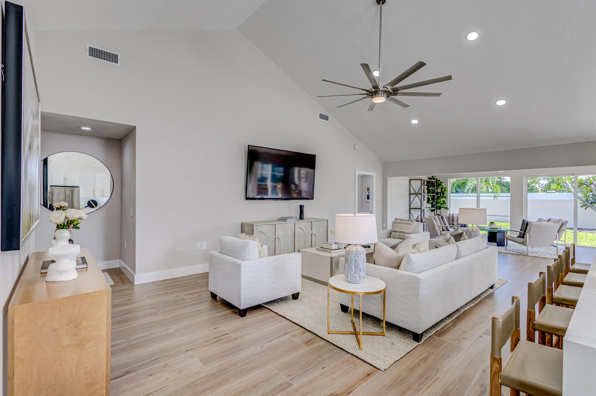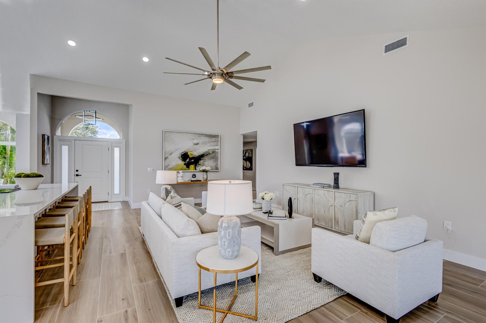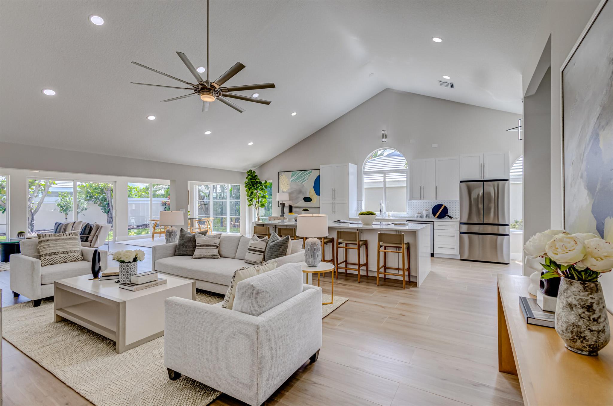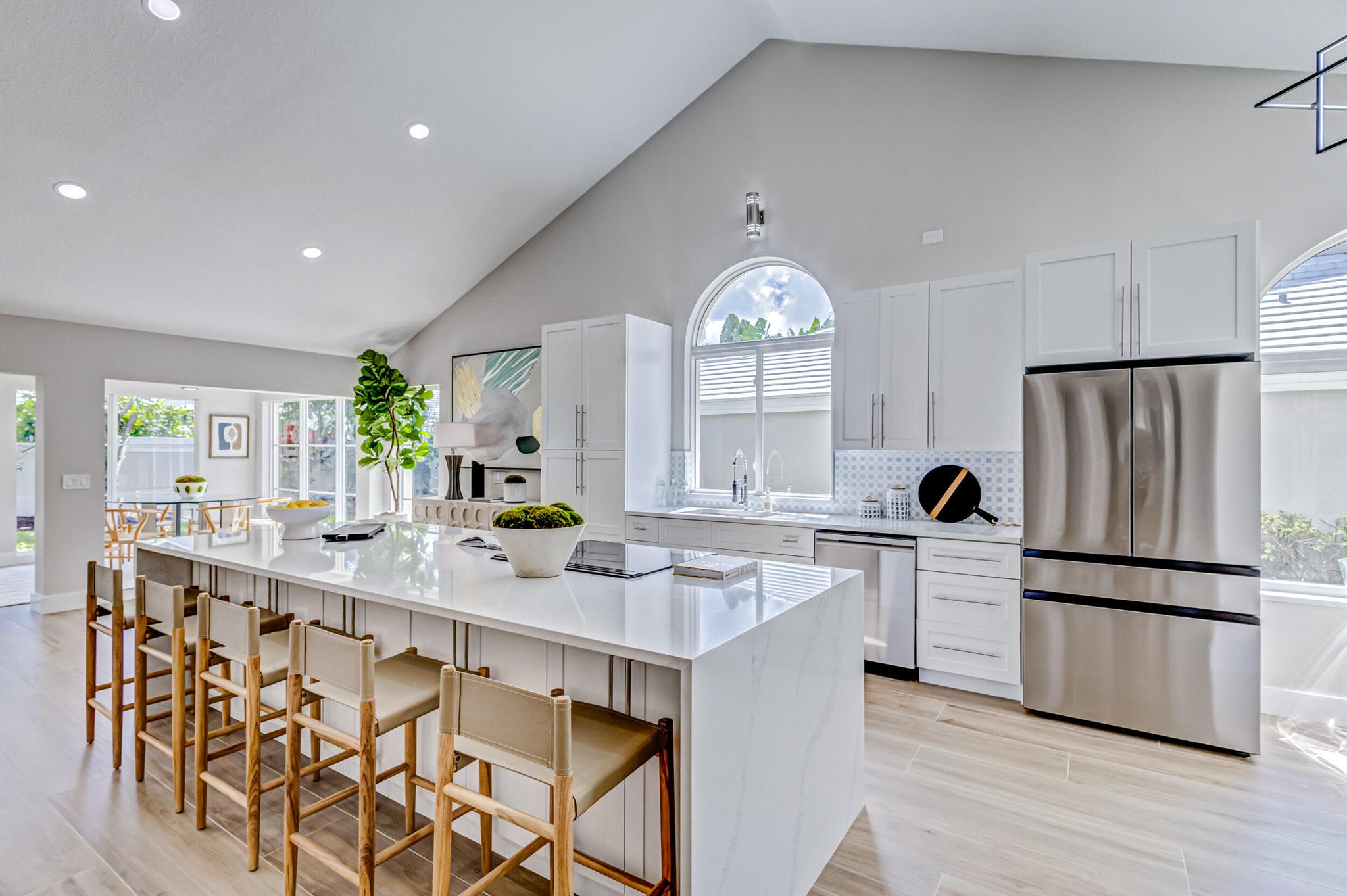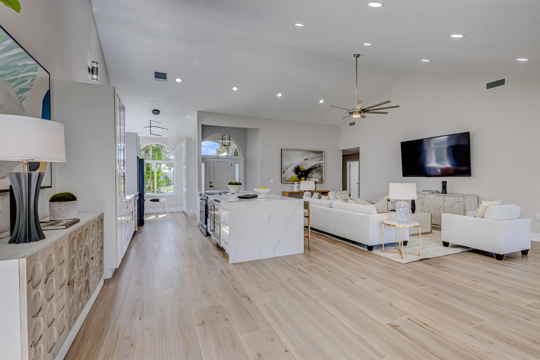 Masterfully designed, this stunning home has been COMPLETELY renovated withimpeccable craftsmanship throughout every detail. With over 2,200 SF of living area(and Bear Island's largest model), this single-story residence is ideal for today'scontemporary lifestyle and features 3 bedrooms including incredible master suite, 2 full bathrooms, 2 car garage, expanded Florida room, gourmet kitchen surrounded by all new impact windows and doors. Designed with precision and perfection, this exquisite open floor plan is adorned with vaulted ceilings, stunning Woodville natural tile flooring throughout, dazzling modern light fixtures and built-in LED lights.Breathtaking kitchen suitable for a culinary chef! Meticulously designed and perfectlyequipped with an abundance of custom cabinets