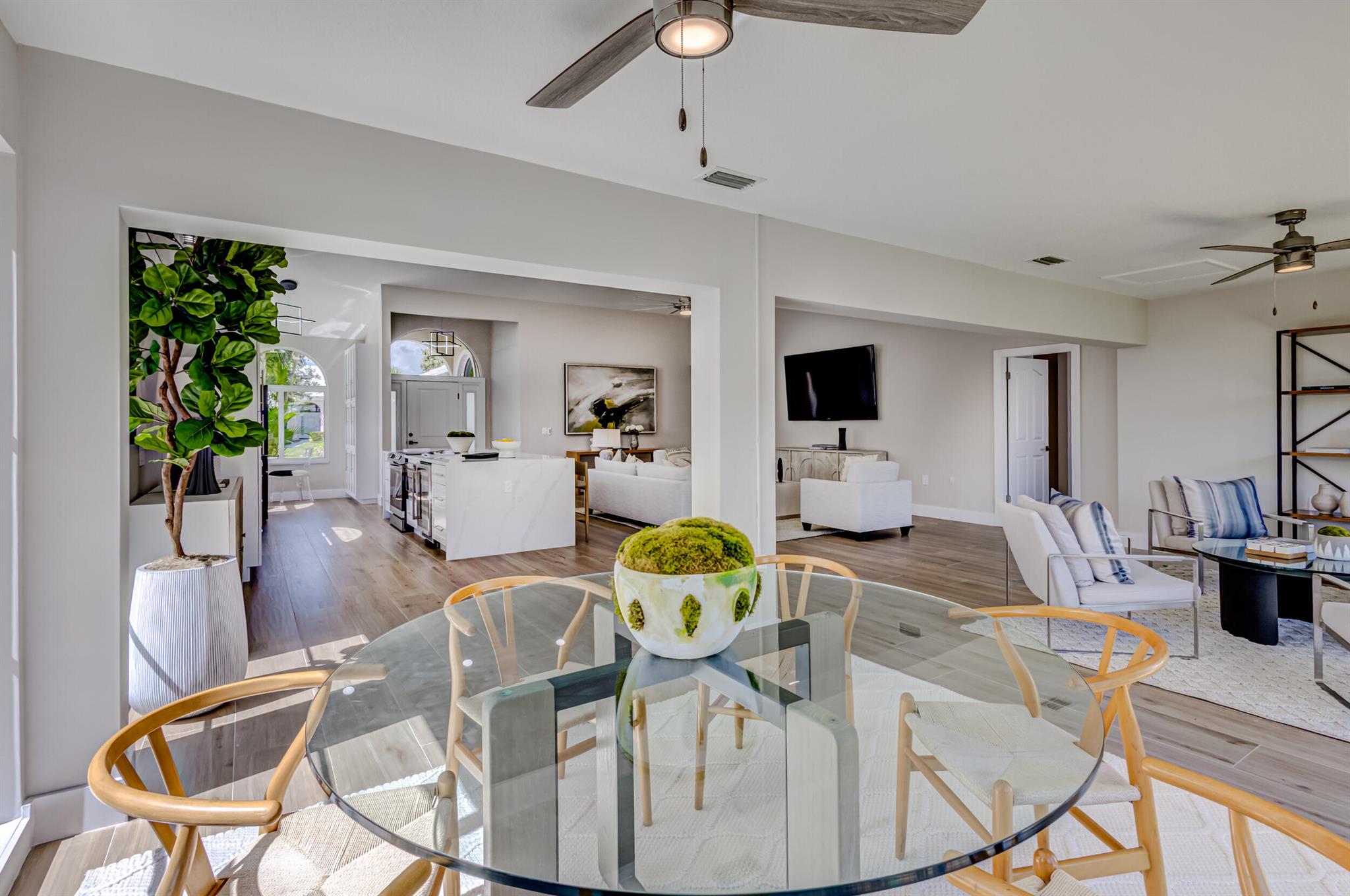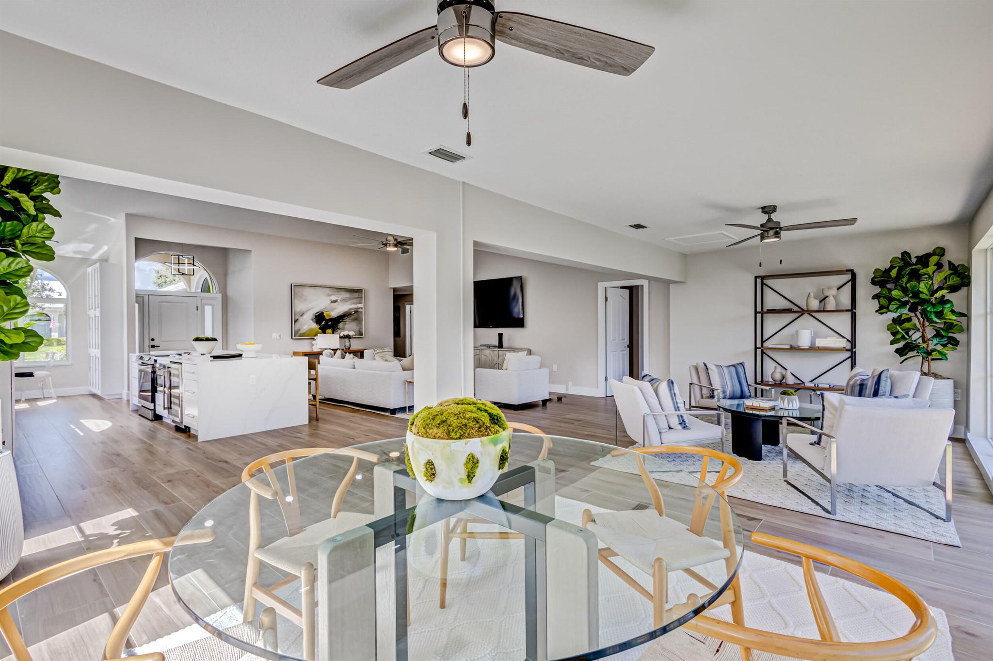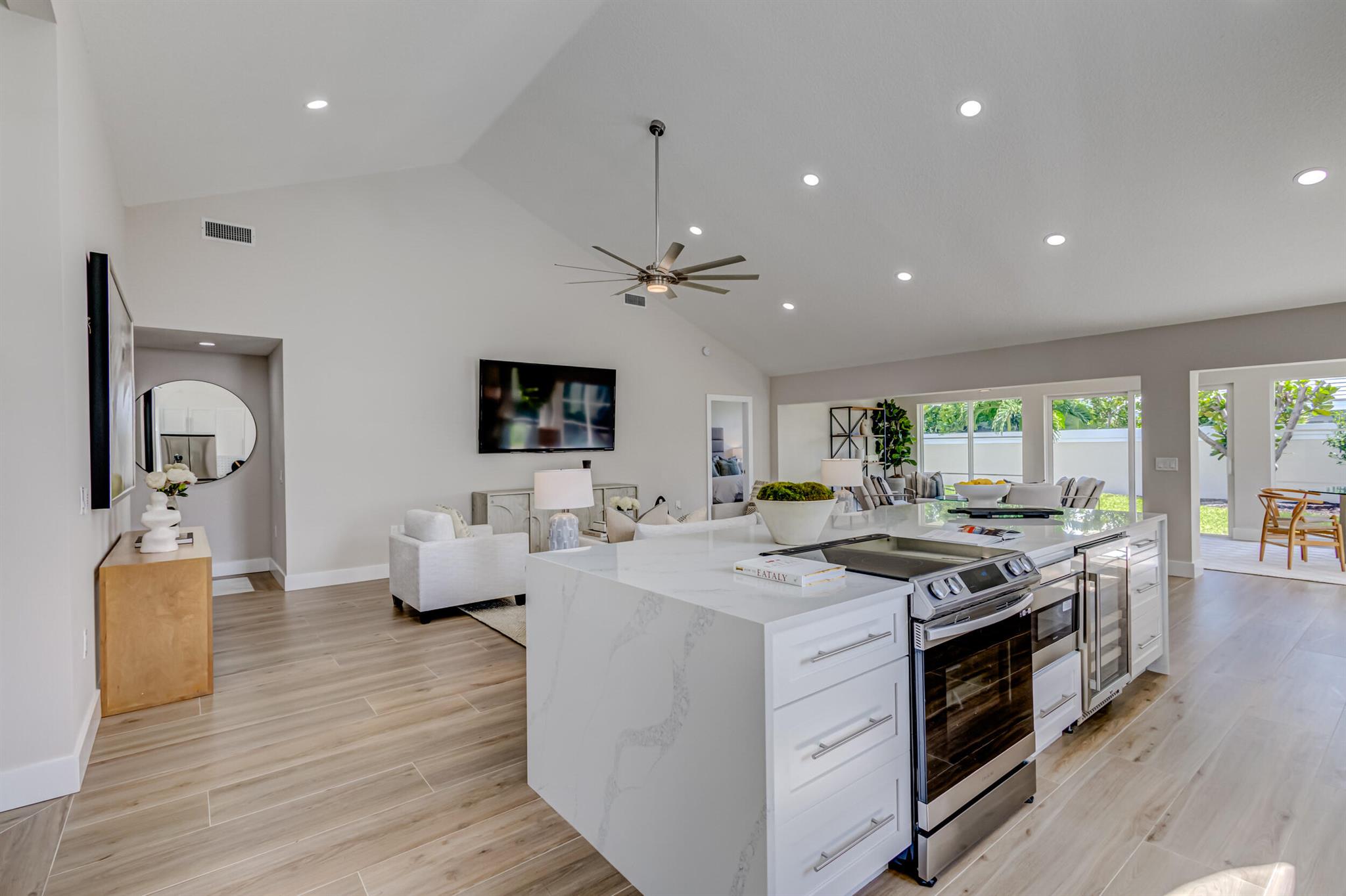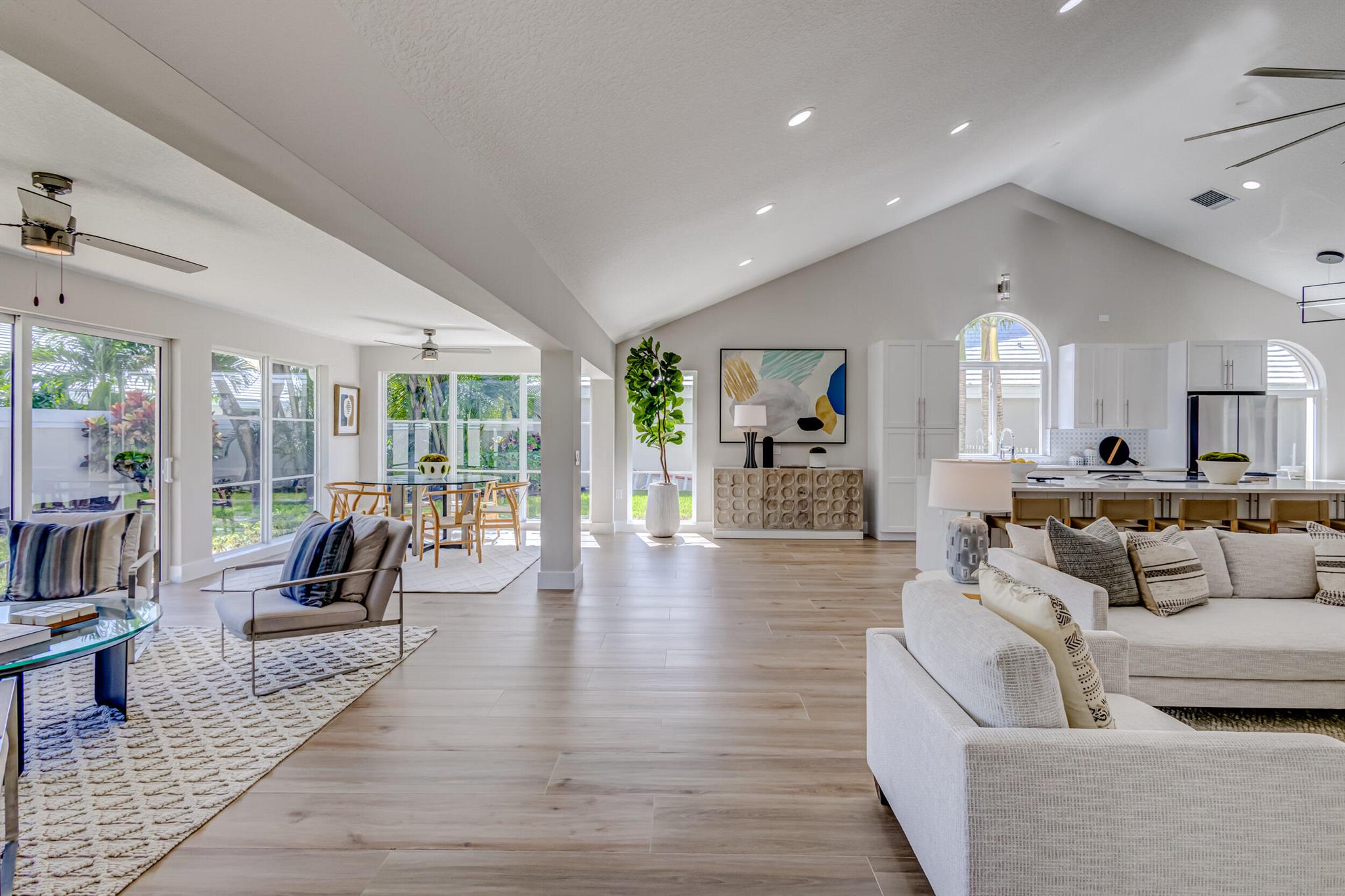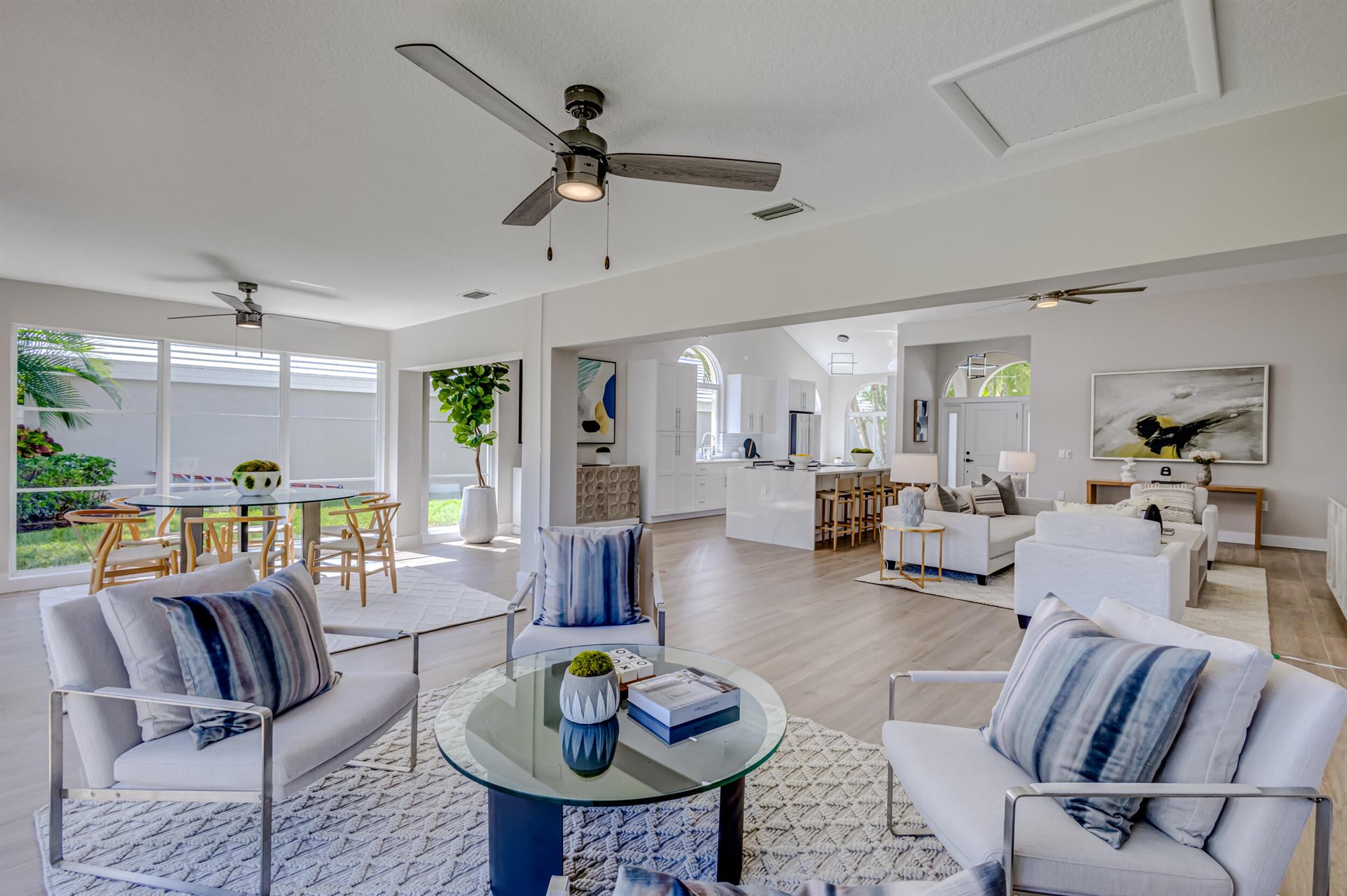 Masterfully designed, this stunning home has been COMPLETELY renovated withimpeccable craftsmanship throughout every detail. With over 2,200 SF of living area(and Bear Island's largest model), this single-story residence is ideal for today'scontemporary lifestyle and features 3 bedrooms including incredible master suite, 2 full bathrooms, 2 car garage, expanded Florida room, gourmet kitchen surrounded by all new impact windows and doors. Designed with precision and perfection, this exquisite open floor plan is adorned with vaulted ceilings, stunning Woodville natural tile flooring throughout, dazzling modern light fixtures and built-in LED lights.Breathtaking kitchen suitable for a culinary chef! Meticulously designed and perfectlyequipped with an abundance of custom cabinets