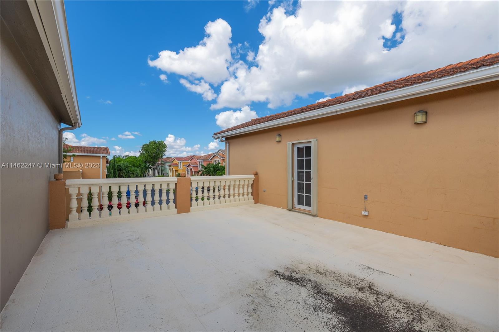 Mediterranean style home in highly desired gated community of Piazza Vecchia. High ceiling house, 3 bedrooms, plus DEN, 3 1/2 baths, huge master bedroom with walking closet and beautiful bathroom, open kitchen with stainless steal appliances and granite countertop, wonderful patio, sun deck, terrace on the second floor. Excellent location close to the major highways, Dolphin and International malls, great schools, quick access to the International Airport .