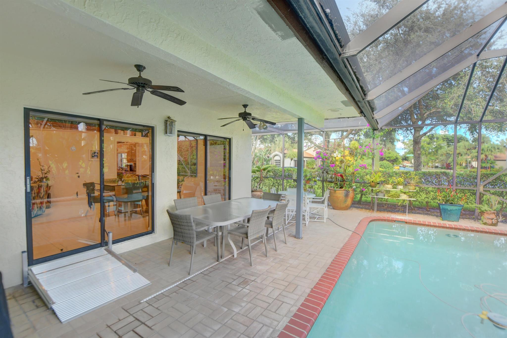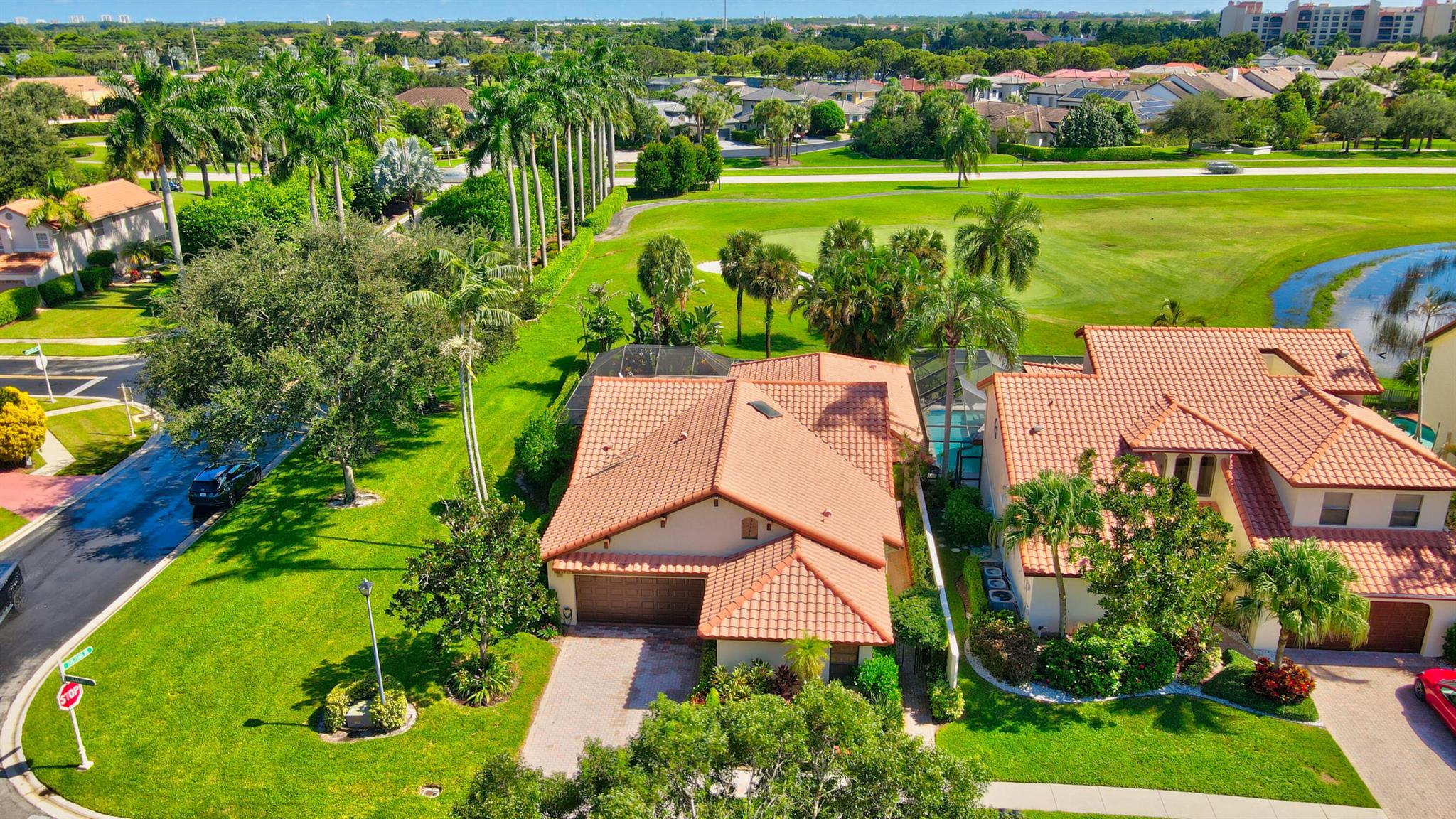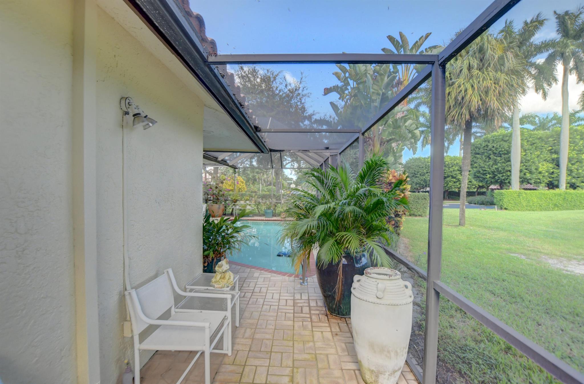 Rarely available immaculate pool home located in popular Esplanada at Boca Pointe. Redone w/ open & expansive floor plan with beautiful golf views. Situated on large corner lot. Beside 3 large bedrooms there's a den area with a large bar area w/ 2 refrigerators. The Primary Bedroom has upgraded carpet & T.V. that raises up or down. Beautiful built-ins w/ glass doors. All baths are redone with either marble, stone or granite. Large kitchen boasts decorator granite countertops, stainless steel appliances & wood paneled cabinets. Large breakfast area in kitchen. Closets outfitted ! Both A/C units replaced, (1) is 2 years old, and other is approx. 7 yrs old. Large pool area overlooking golf course (15th hole). New Polaris pool cleaner. Fabulous home inside & out. Can be purchased turnkey.