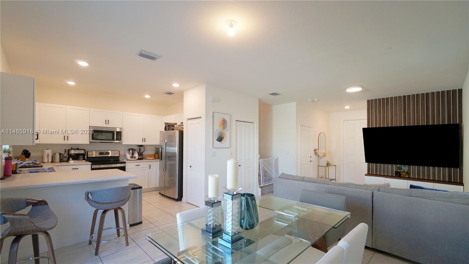 Spectacular 2021 townhouse in Aquabella by Lennar, single owner, with 3 bedrooms, 2.5 baths, with an upstairs laundry room adds to the practicality of this home. 1-car Garage +2 in driveway. This inviting residence is designed to exceed your expectations, offering a spacious open living & dining area that seamlessly connects to a fully remodeled, modern kitchen. It's the perfect setting for family . Step outside through the glass doors onto a charming corner patio with artificial grass, ideal for entertaining friends and family. Enjoy this Resort-style home with great amenities: 2 Clubhouses, Cabana, BBQ area, Pool, 24/7 Security, ample guest parking, Children's, Pet Parks and more. AS IS (SHOWING 24 HS NOTICE )