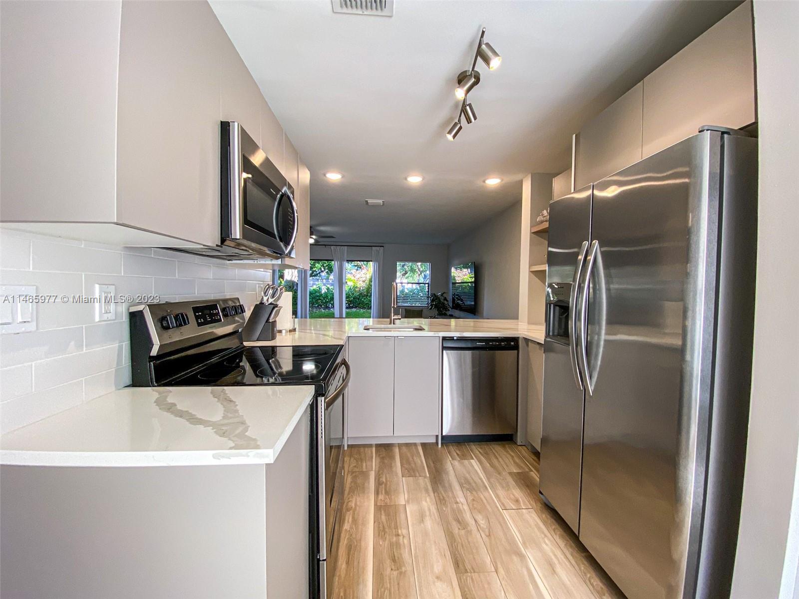 Presenting a thoughtfully designed 3-Bdrm/ 2.5 bath townhome that combines modern elegance w/ meticulous attention to detail. The space is filled w/ natural light, accentuating the clean lines & premium finishes. Luxury vinyl plank flooring throughout the home blends style & durability. The bathrooms feature exquisite Italian Carrara Marble vanities, adding a nice touch of luxury. SS appliances integrate seamlessly w/ custom cabinetry, creating a clutter-free workspace. The quartz countertops not only exude elegance but also provide ample room for meal preparation & entertaining. This home is located in the highly sought-after neighborhood of Central Ridge Corals & is zoned for an exceptional elementary school. The community offers a pool area for relaxation & recreation for residents.