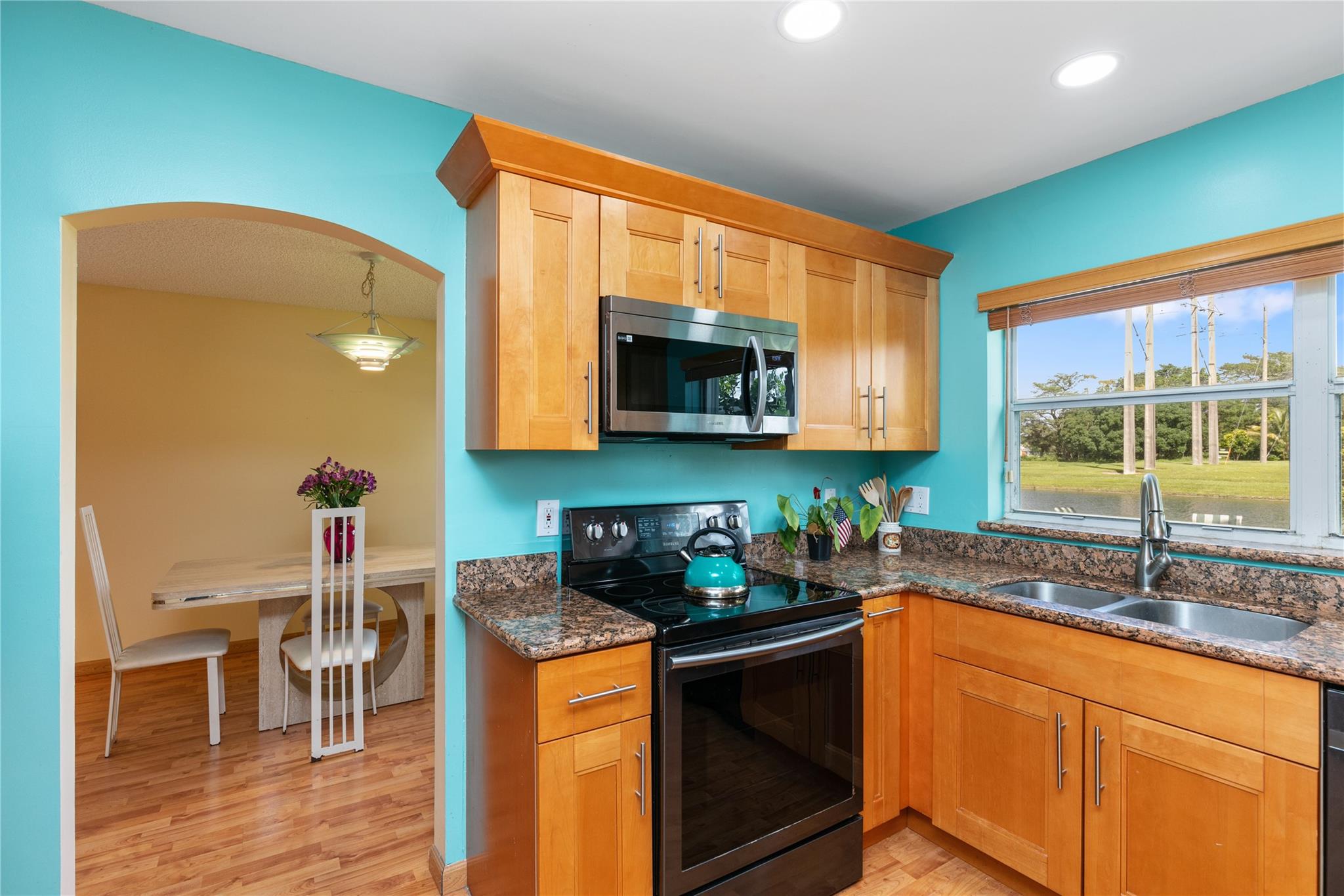 Step inside, & you'll be greeted by the grandeur of 18-foot volume ceilings, while the warm laminate wood flooring adds a touch of sophistication throughout. The heart of the home, an updated kitchen, beckons w/ wood shaker cabinetry, granite countertops, & sleek black stainless steel Samsung appliances. Entertain & unwind effortlessly on your covered patio, overlooking a generously sized waterfront backyard that promises serene moments by the water's edge. Retreat to the upper level, where all bedrooms offer privacy & comfort. The primary bedroom is a true sanctuary, offering scenic water views & an expansive updated bathroom featuring dual vanities, a Jacuzzi tub, & separate shower. Nestled within the gated community of Harbor Island, you'll have access to a community pool & playground.