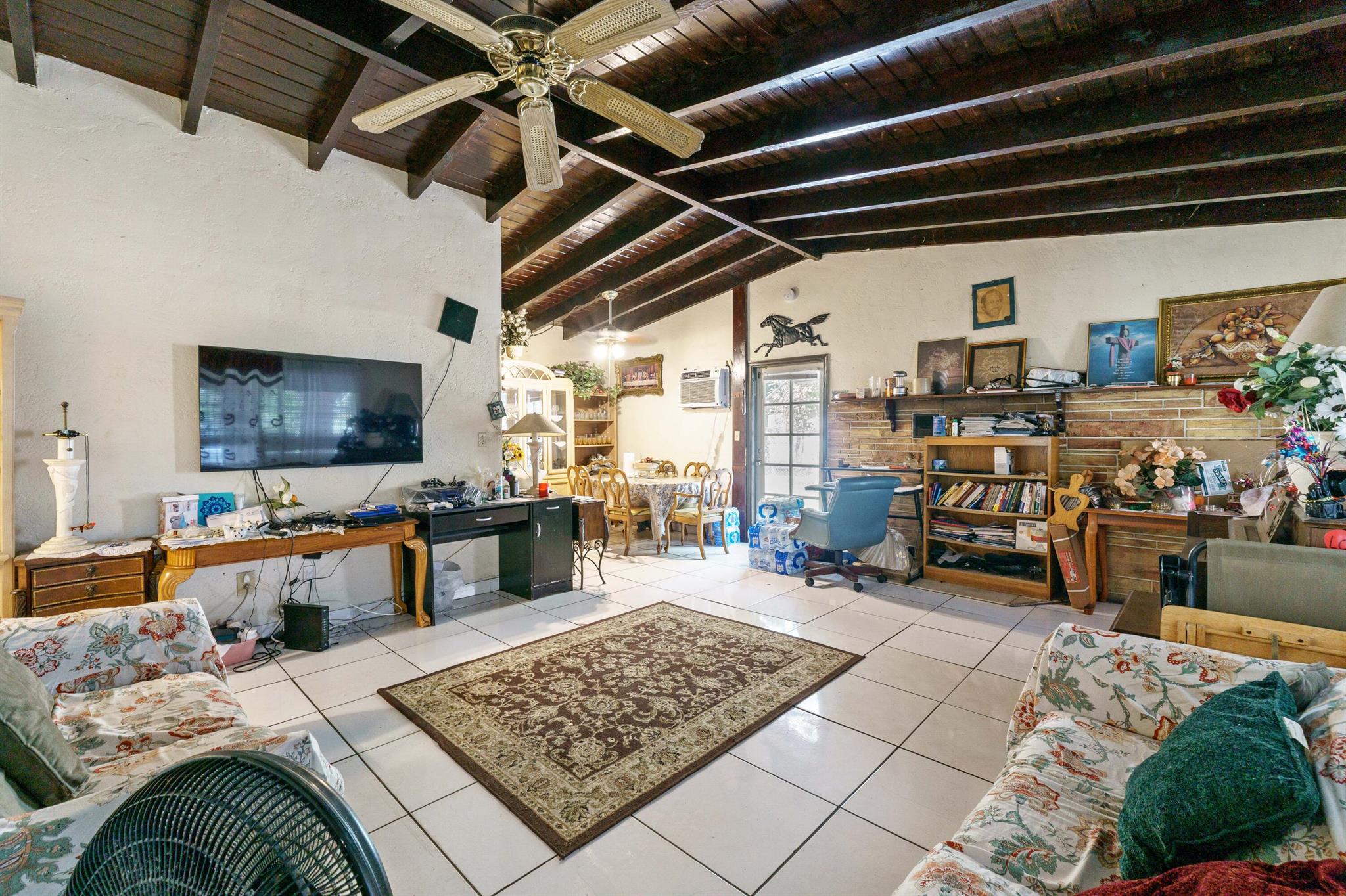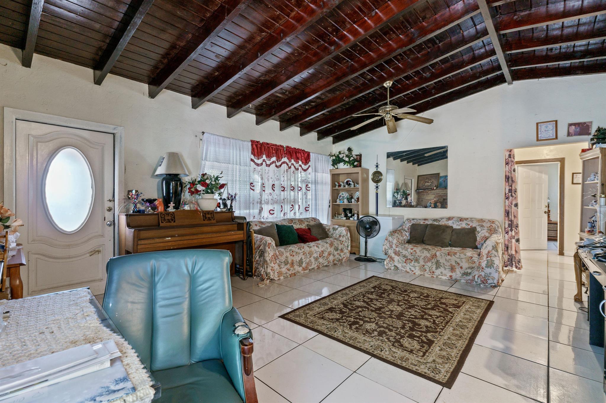 This home sits on such great yard space both front and back with great possibilities to add on (expand home) or build a carport or attached garage, needs your renovating touches, sun room, enclosed front patio, den/living room, ceramic tiled floors, 3 bedrooms and 2 bathrooms, 3rd bedroom can be a nice office space, kitchen w/granite counters, wood beam ceilings, fenced yard, lots of trees (coconut, ackee, mangos, neeseberry etc, Central location minutes to downtown, beaches, park, shopping, eateries, HCA Hospital, short drive to Ft Laud Golf & Country Club, No HOA, Come make this special home yours, As Is Contract Sale