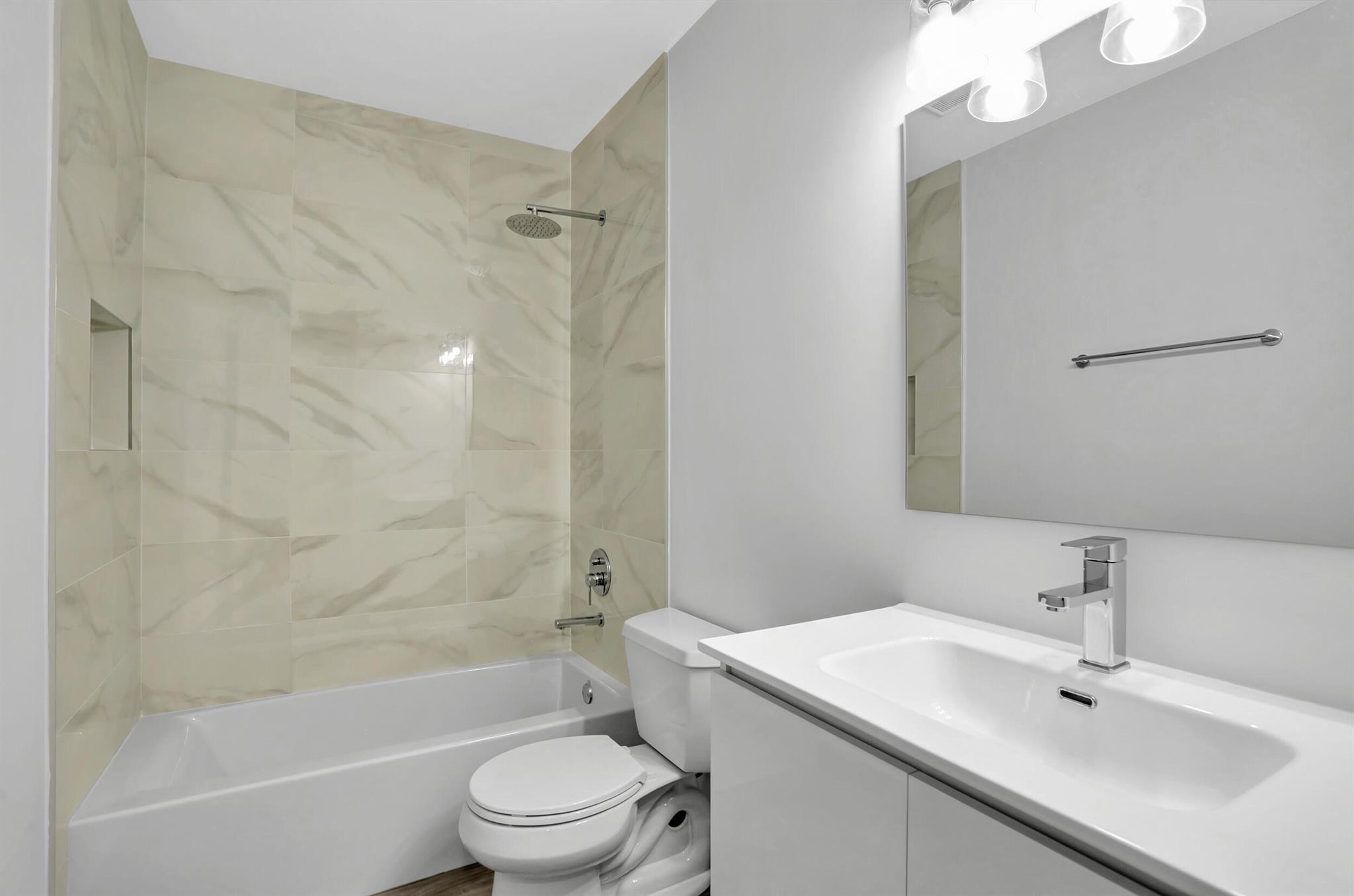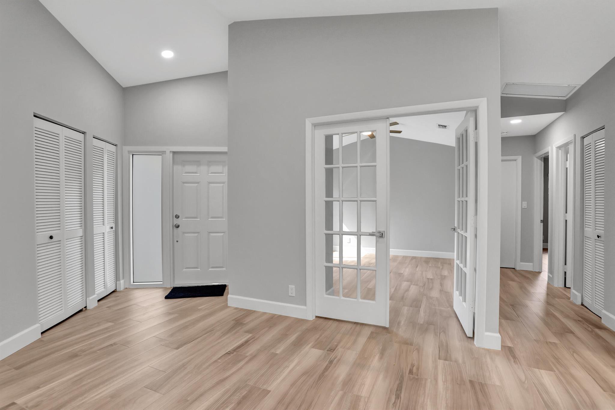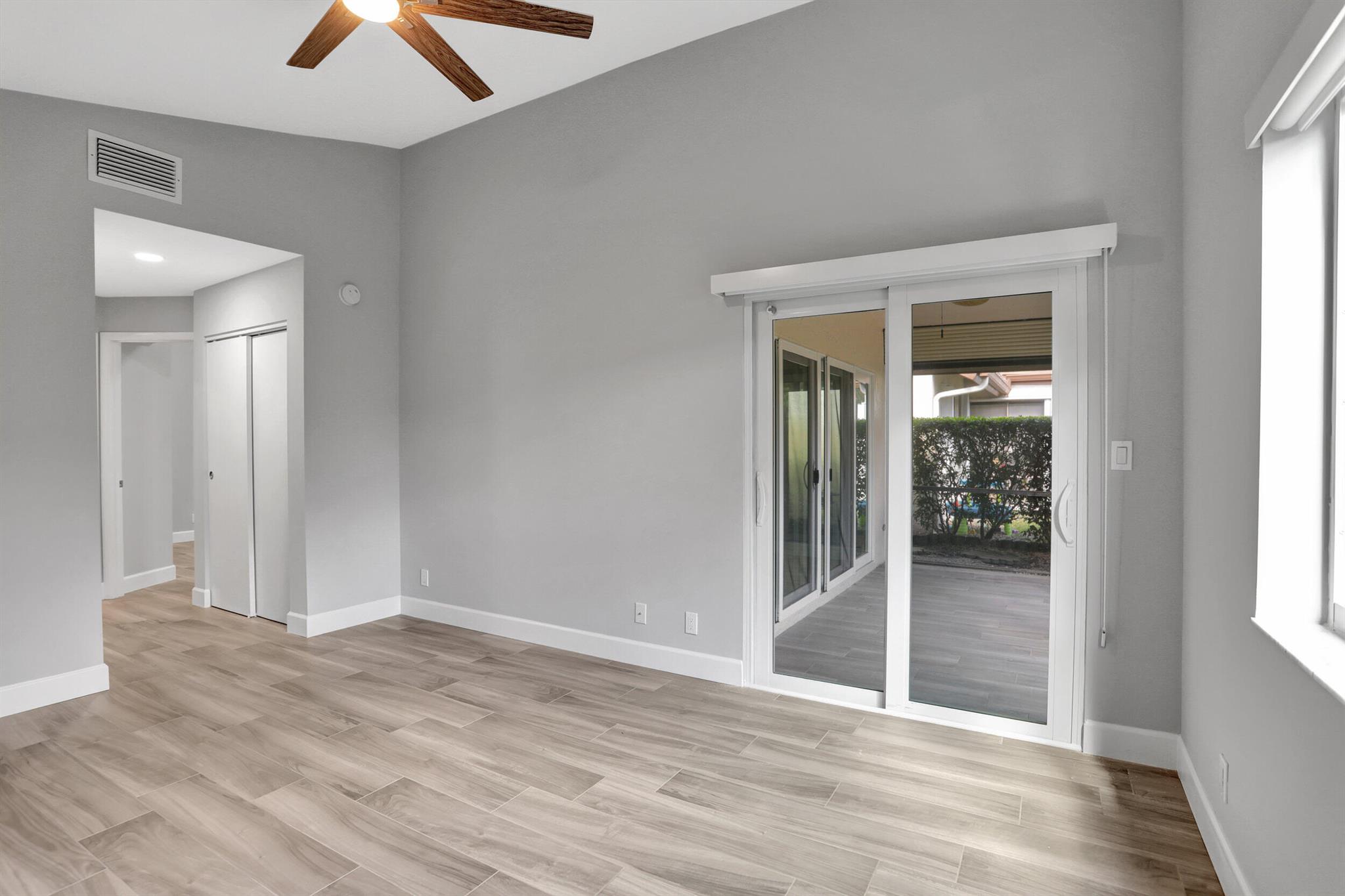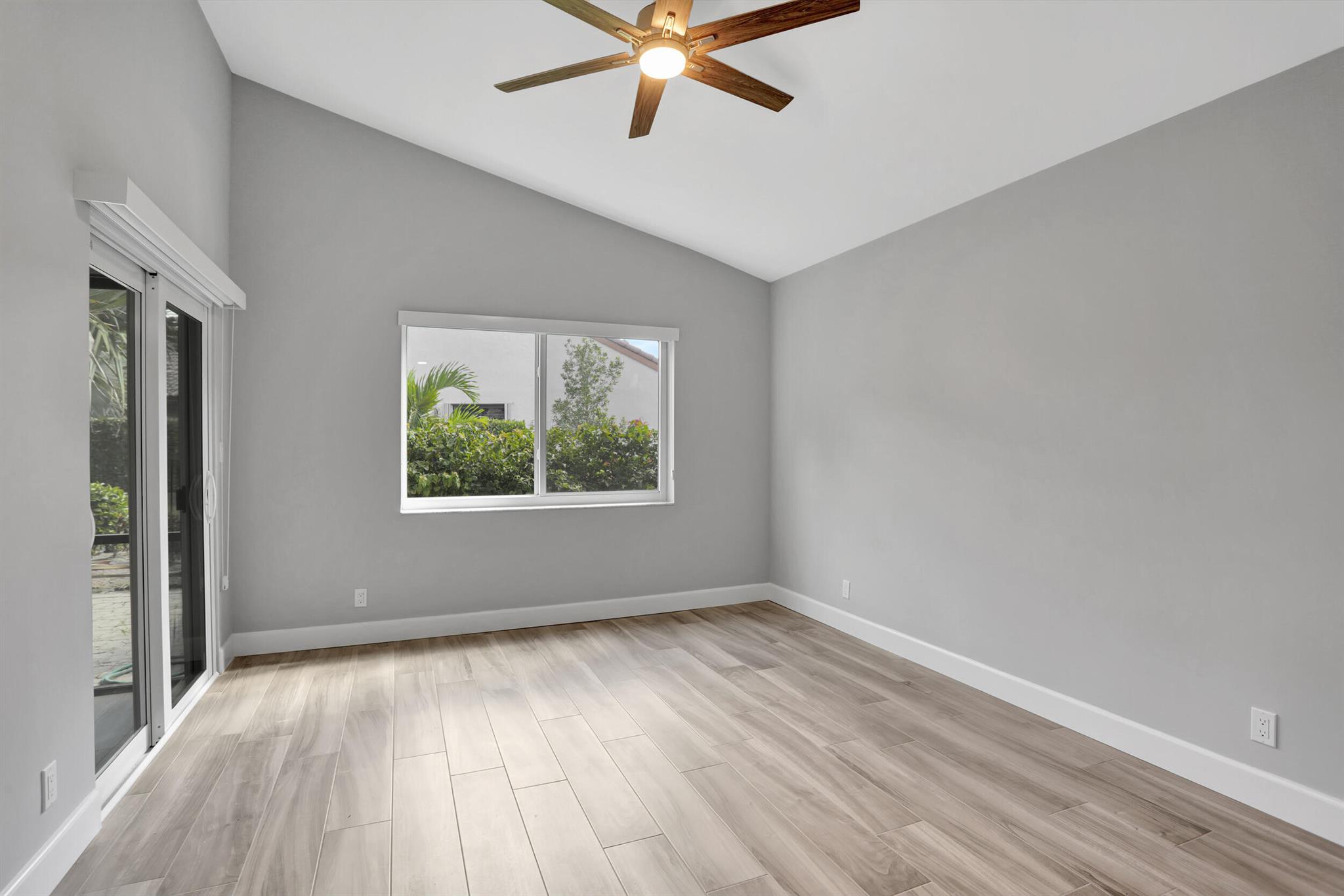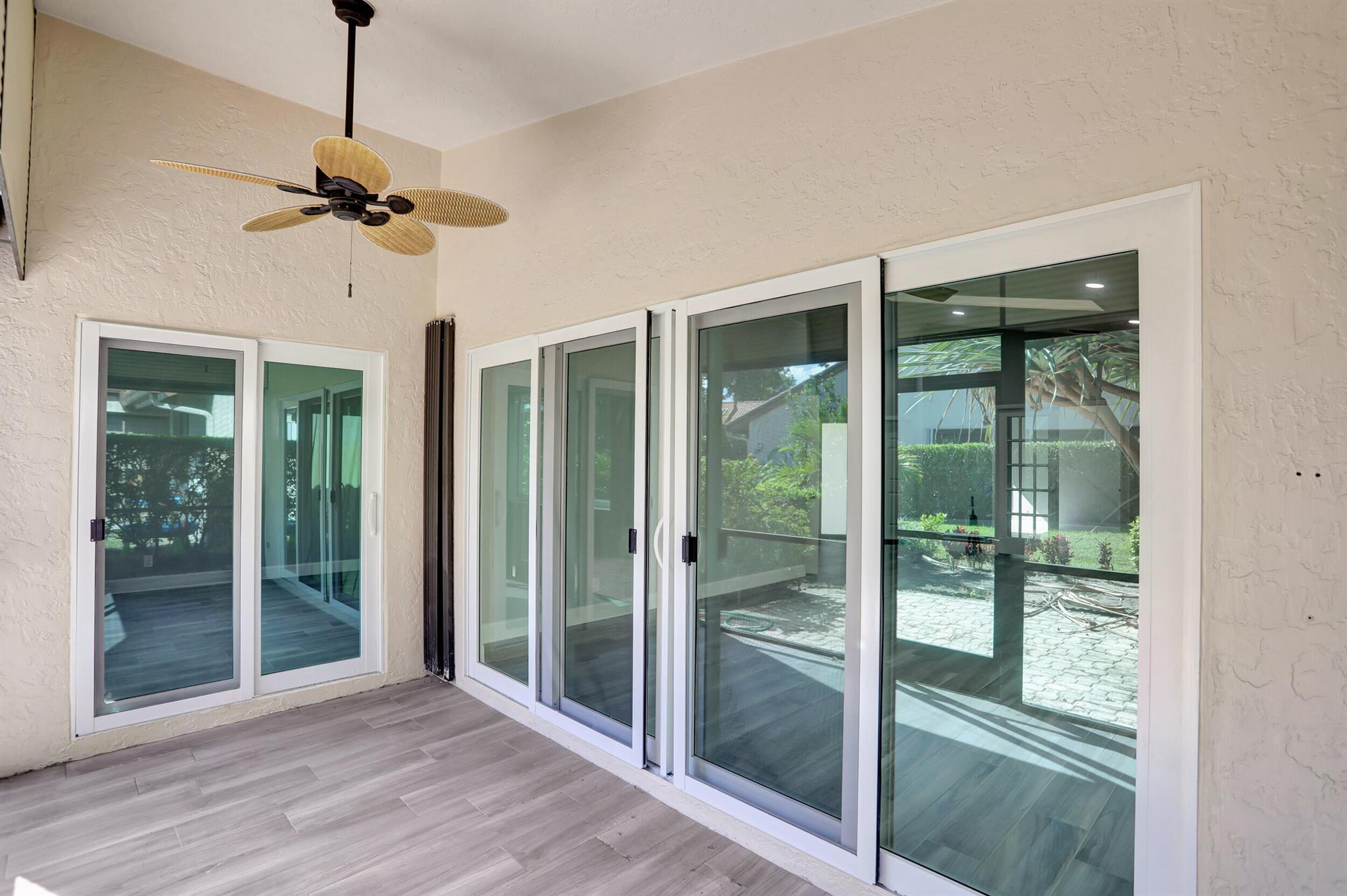 Welcome to this fully upgraded home in the beautiful and gated community of Waterside. This home has a modern open living area with high ceilings enhanced by natural lighting from skylights in both the living room and kitchen. The kitchen features new cabinets, quartz countertops, stainless steel appliances, and updated fixtures.Main bedroom has a large walk-in closet, access to screened patio, and blackout shades. All bathrooms have been tastefully updated. Impact glass and thermal blinds throughout the home provide energy efficiency, lowering cooling and insurance costs. Ceramic tile flooring has the look of hardwood. New water tank, 5-year-old roof, 3-year-old A/C unit.Relax and enjoy outdoor living space in the screened in patio with garden view.