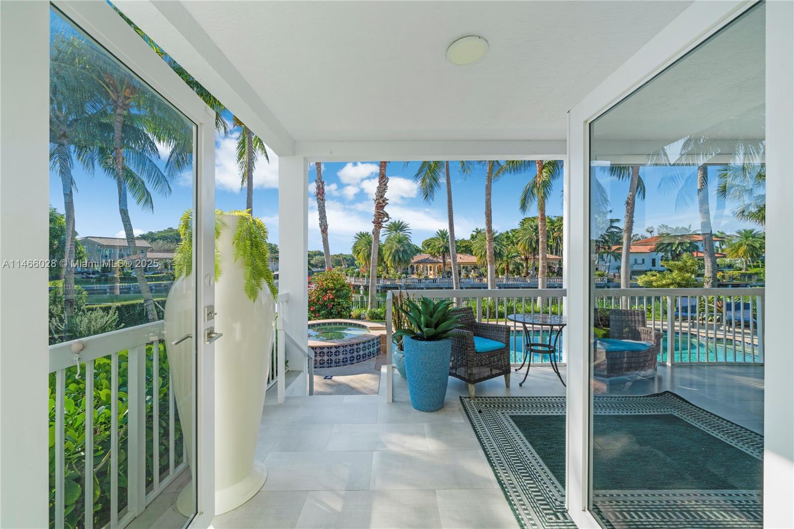 Welcome to your dream waterfront home in Gables by the Sea, a prestigious gated community offering tranquility and luxury. This stunning 2-story residence has been impeccably renovated with top-tier finishes, seamlessly blending sophistication and serenity. Soaring ceilings and Porcelanosa floors frame breathtaking water views. The primary suite boasts high ceilings, adding a sense of space and flooding the room w/ natural light, while the private balcony overlooks lush tropical gardens and peaceful waterfront vistas. Relax in the Jacuzzi, cascading into a sparkling saline-chlorine pool. The gourmet kitchen, featuring a grand quartzite island and Thermador & Wolf appliances, is a chef’s delight. Every gorgeous sunset feels magical in your private oasis—resort-style living at its finest