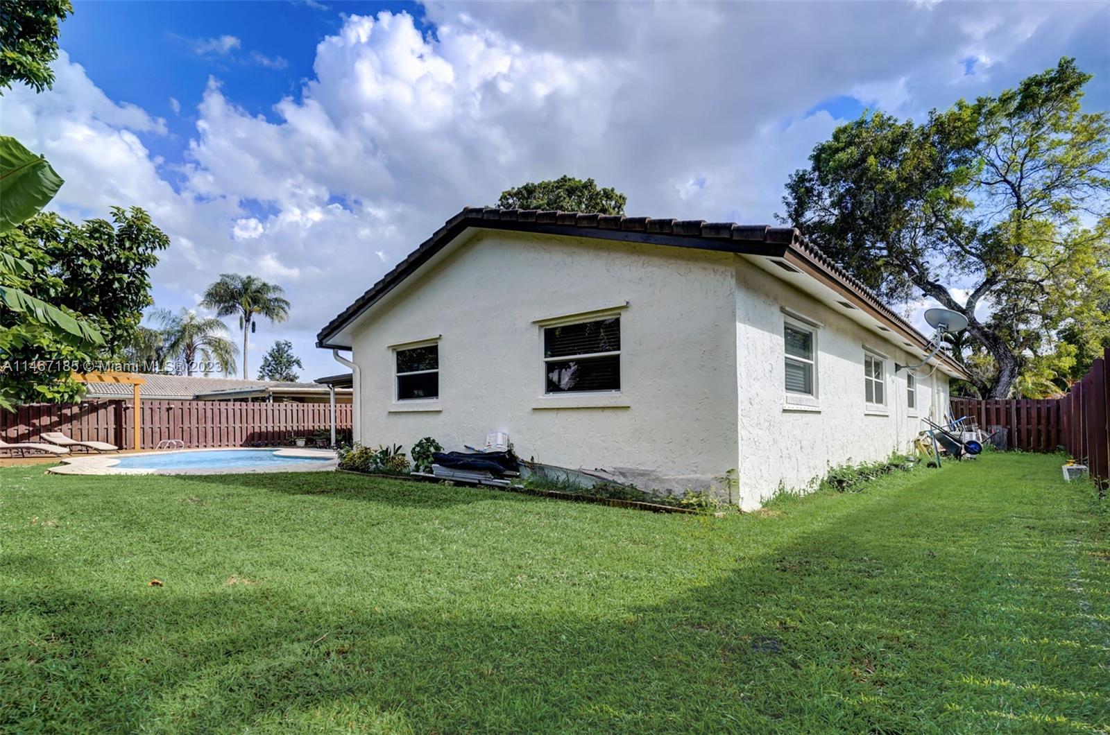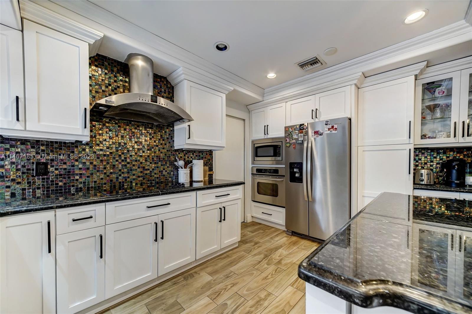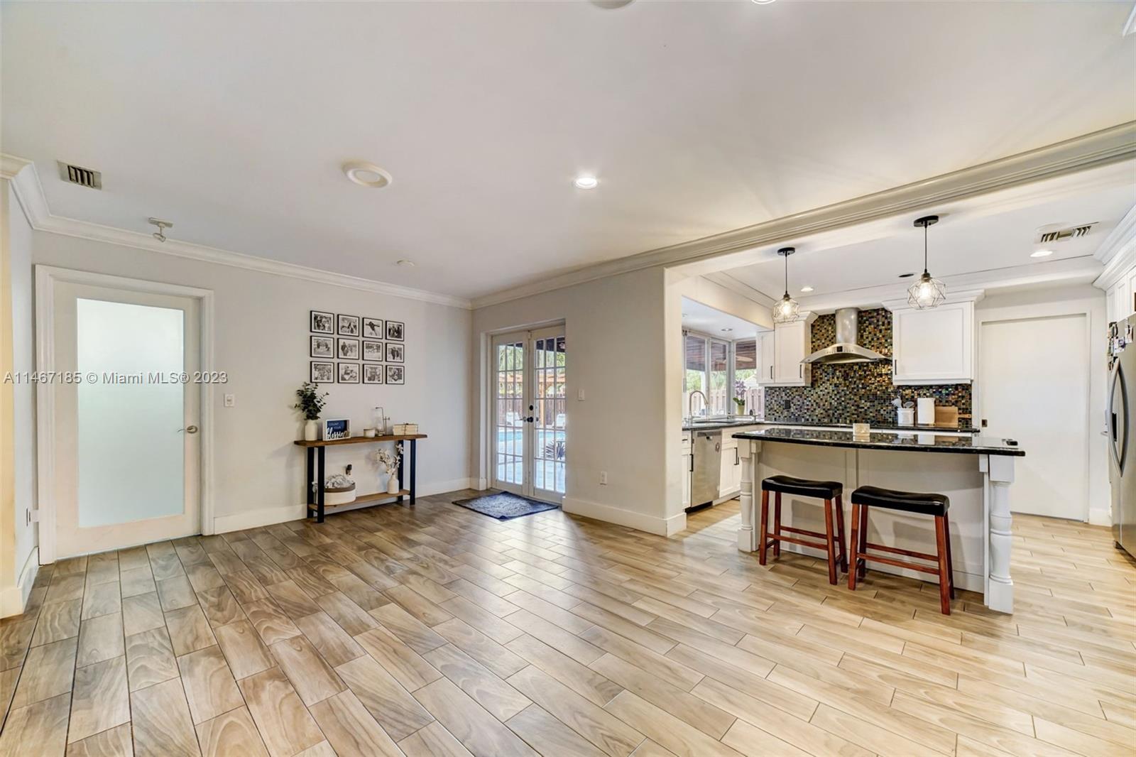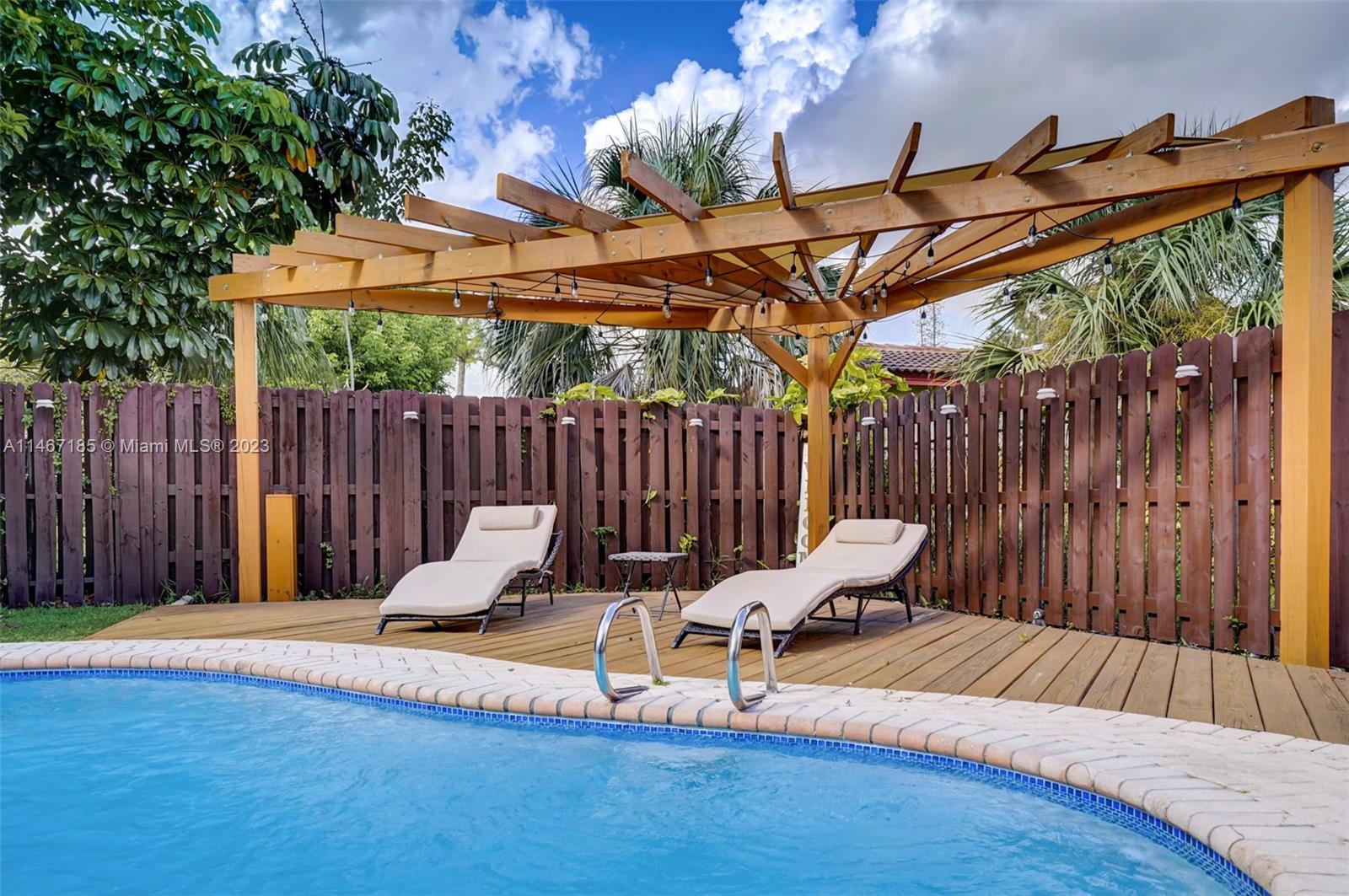 This exceptional property combines the best of outdoor living and modern interior design. Home features a saltwater pool, covered patio with a pass thru window to kitchen. Inside, the home has undergone a transformation. Chef's dream kitchen, adorned with pristine white cabinetry, exquisite backsplash, cooktop, wall oven, vented range hood and island for workspace or gathering. Both bathrooms have been tastefully updated to reflect current design trends. Luxury plank (LVP) flooring extends throughout the home, providing a cohesive and low-maintenance flooring solution. Spacious bedrooms are all generously sized, Backyard is fenced, circular driveway, air conditioner 3 yrs new. This property epitomizes modern luxury and convenience, making it a rare find in a desirable location.