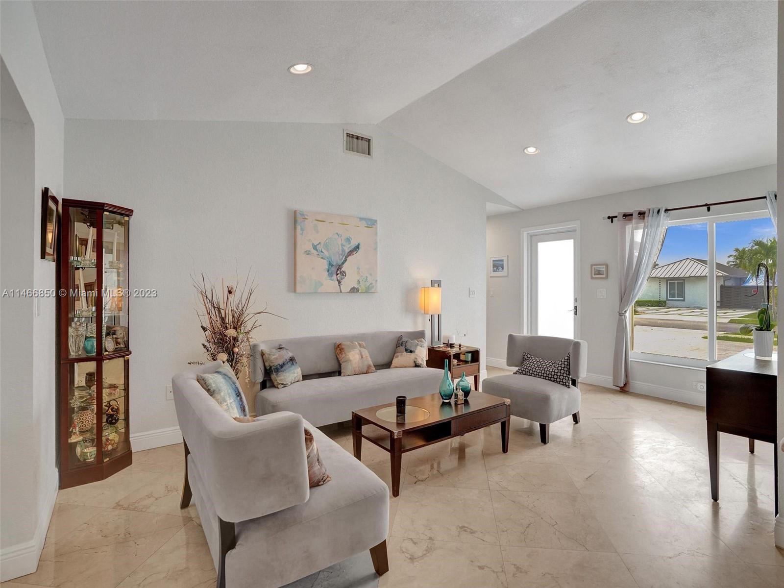 This gorgeous move-in ready home has a new roof, impact windows/doors, beautiful kitchen and baths, natural light through the open floor plan from large bay window. Marble floors in living area with wood laminate in bedrooms. You decide on either four bedrooms or three bedrooms plus a large Florida room. Plus there is a separate office/multi-purpose alcove and a one-car garage. In the back and side yards, create your masterpiece with room for pool, outdoor play area, covered entertainment space or gate access for extra car or boat. Country Lake Manors offers quick access to major transportation arteries such as the Florida Turnpike and Palmetto Expressway. Nearby are shopping centers and the community’s stunning lake and beautiful park.