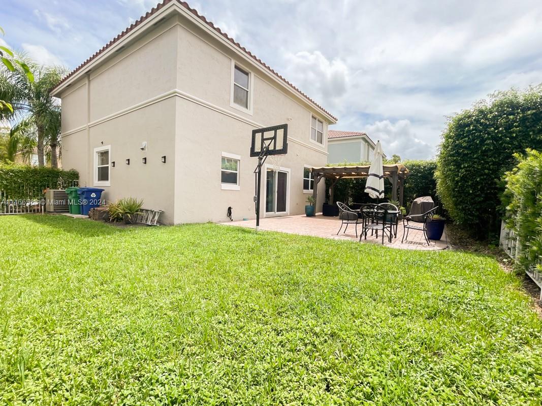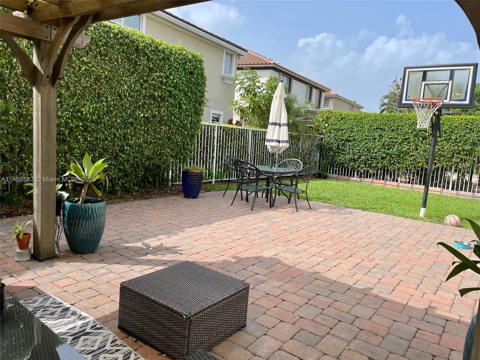 BRAND NEW ROOF 2022!!! Vizcaya community. Beautiful 4 Bedrooms and 2.5 Bathrooms plus office, gorgeous fully renovated gourmet kitchen new stainless-steel appliances refrigerator built in stove, oven and microwave. 42' cabinets. 3CM. quartz countertop with waterfall island, vinyl planks flooring, built-in wall unit, extra storage area in the garage, 10 x 10 pergola, outdoor pavers, basketball hoop, white metal 5FT. fence, exterior and interior paint less than 2 years ago, hurricane shutters, water heater 2019. Low HOA includes landscaping, basic cable, alarm monitoring and amenities such as gym, tennis court, pool and hot tub!