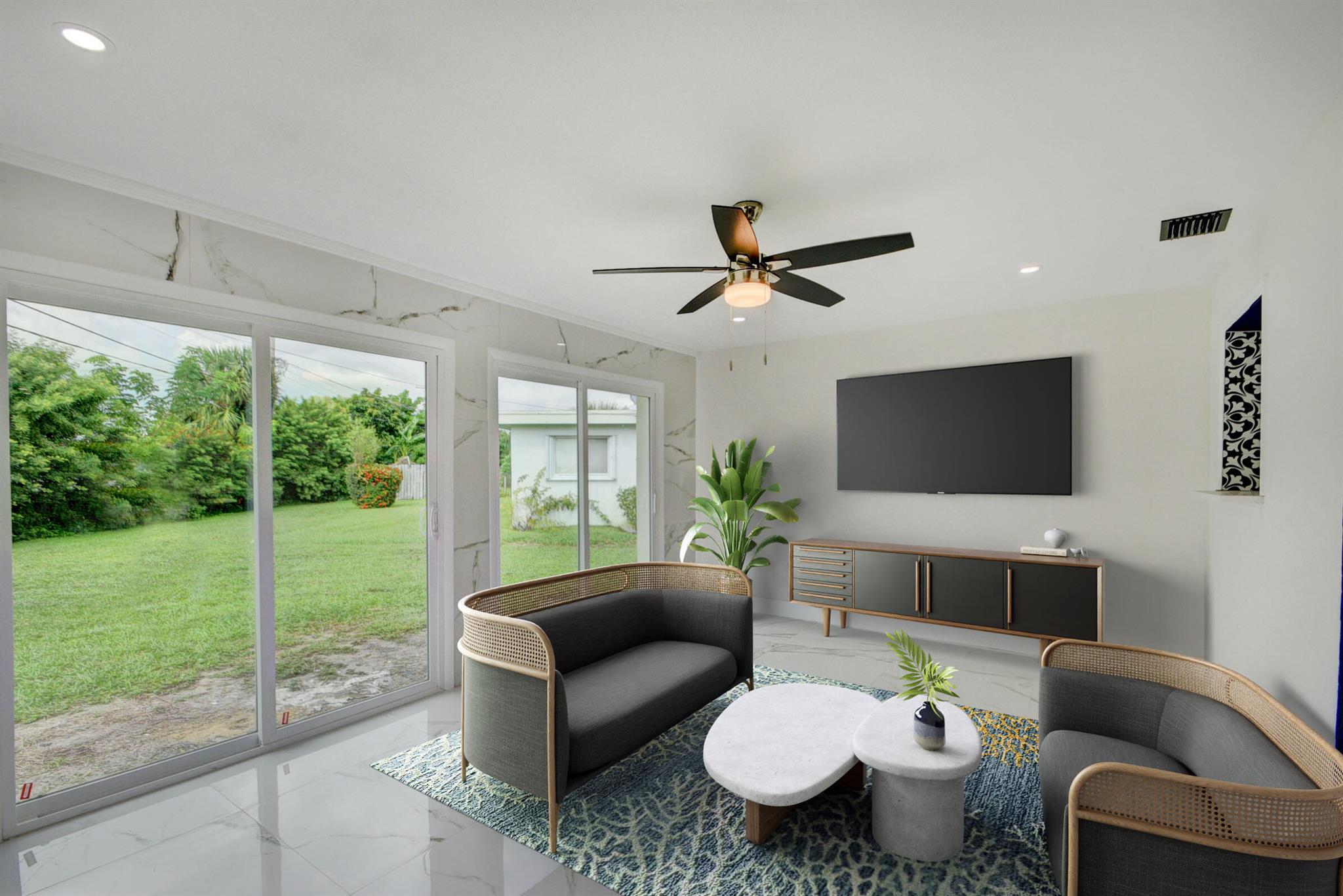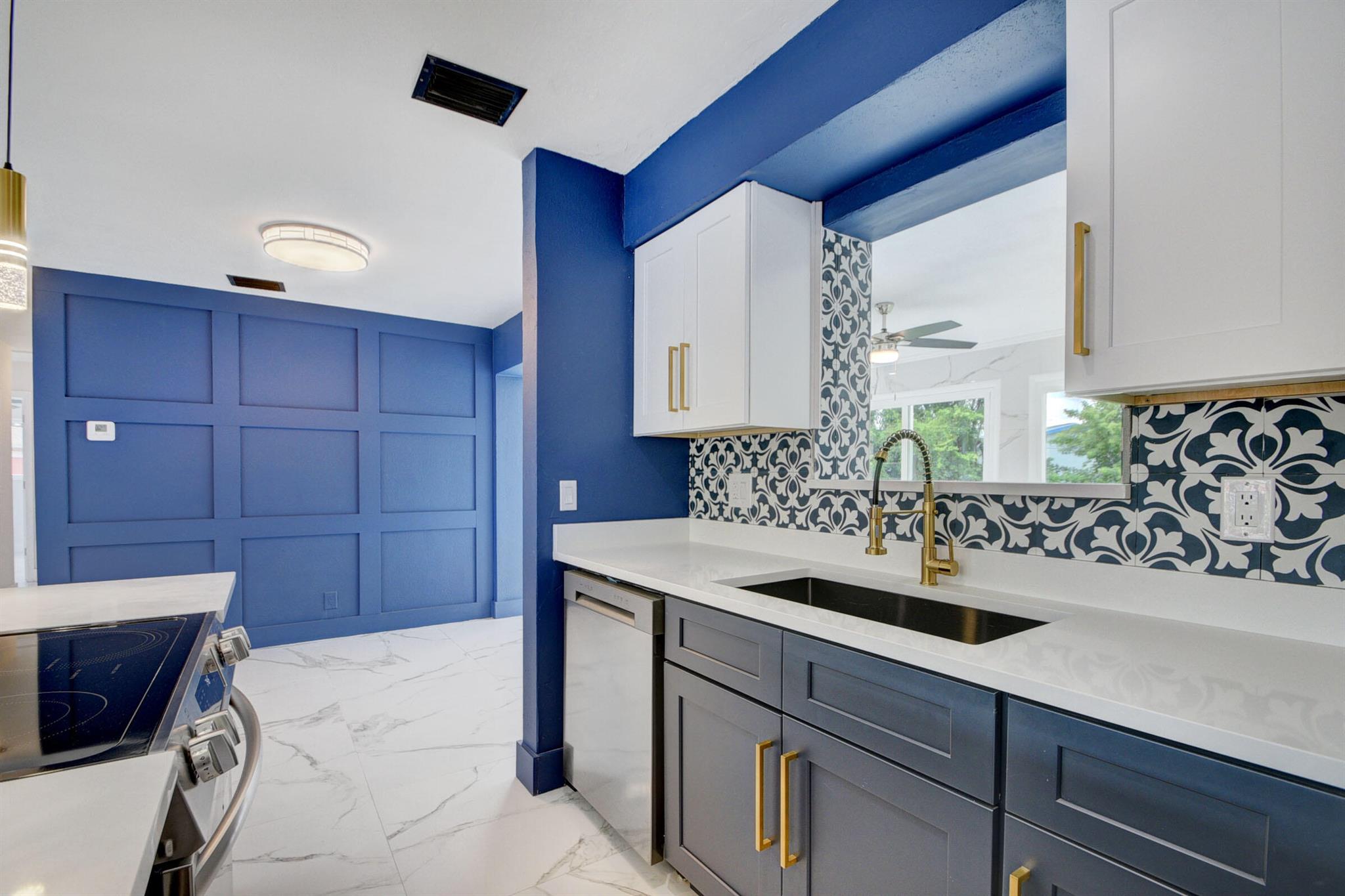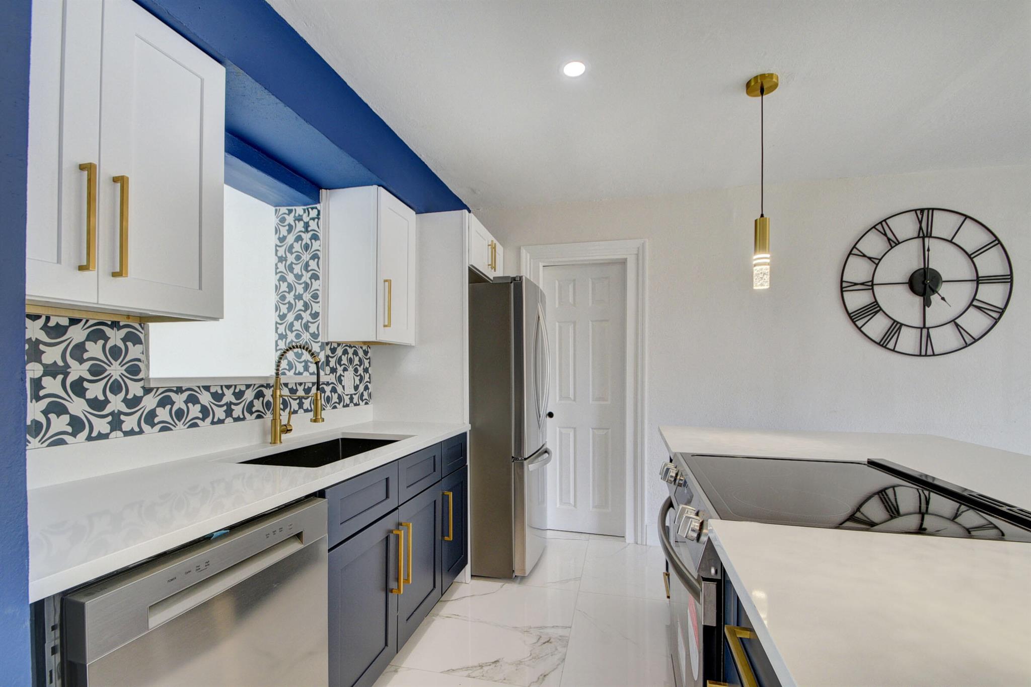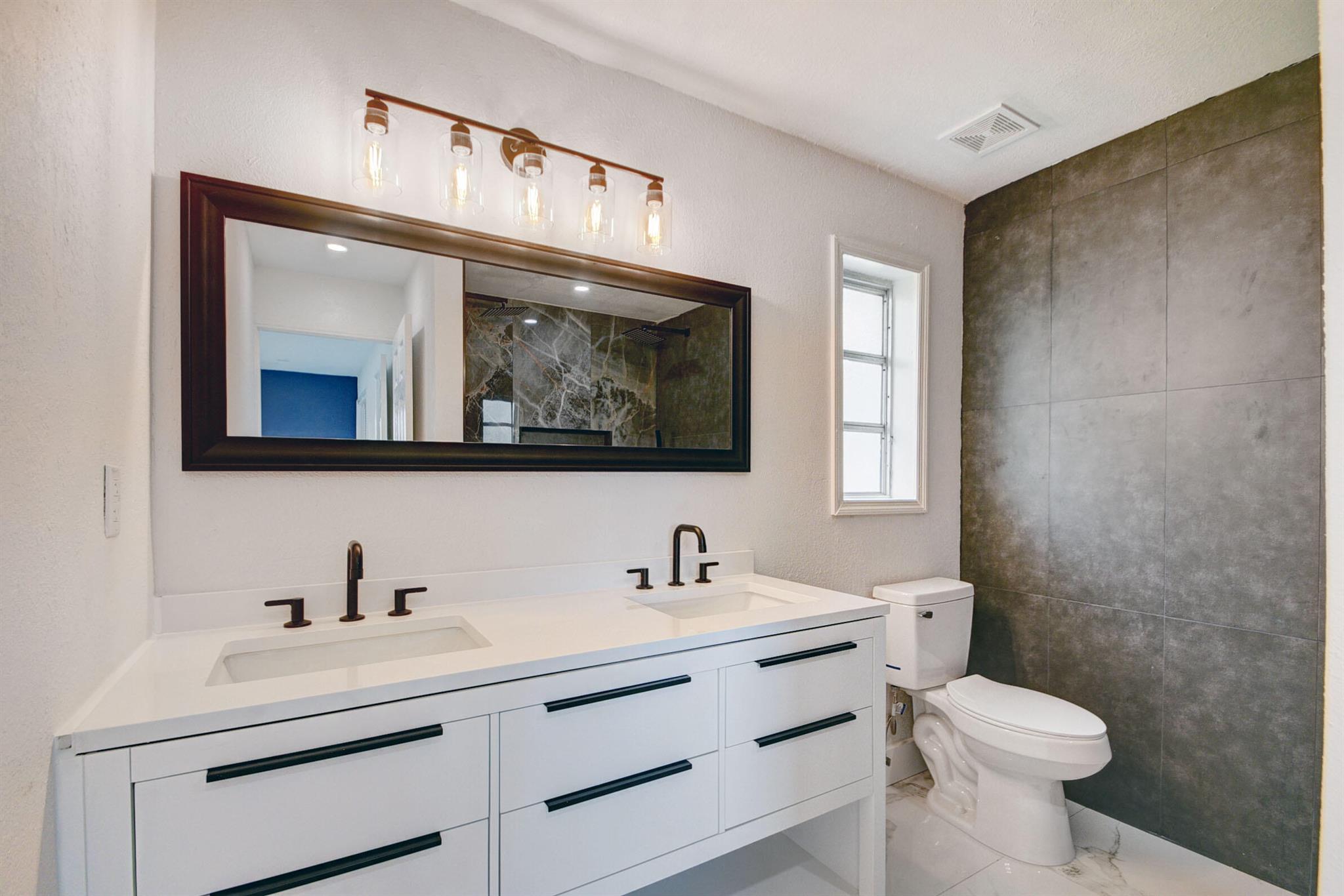 Completely renovated, 2/2 CBS home now available in Roosevelt Estates! Formerly a 3 bedroom, we combined 2 bedrooms to offer a large Master Suite This stunning home on a corner lot features an enormous master suite with a walk-in closet and even a dual master shower! This home has a large backyard, large laundry room and an attached carport. New tile flooring throughout and brand new kitchen appliances, cabinets and quartz countertops. No HOA! Excellent location close to shopping, I-95, downtown WPB and beaches. Schedule your showing today!
