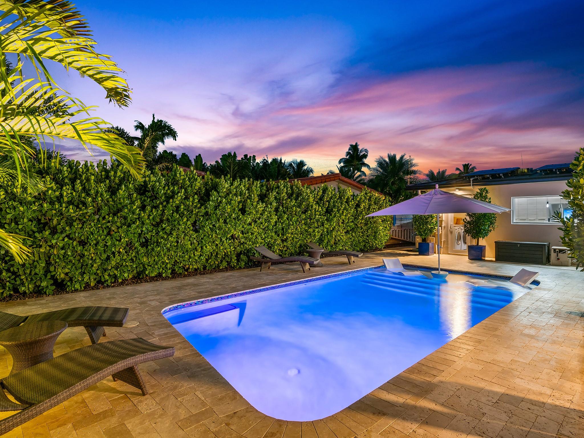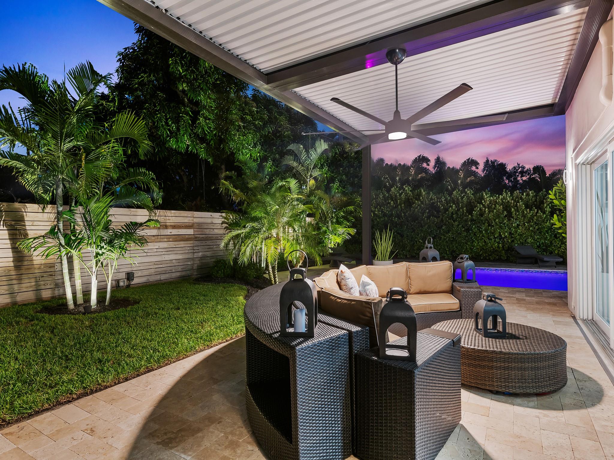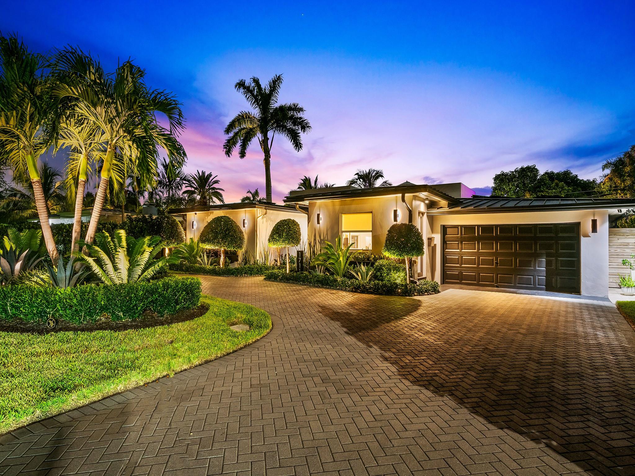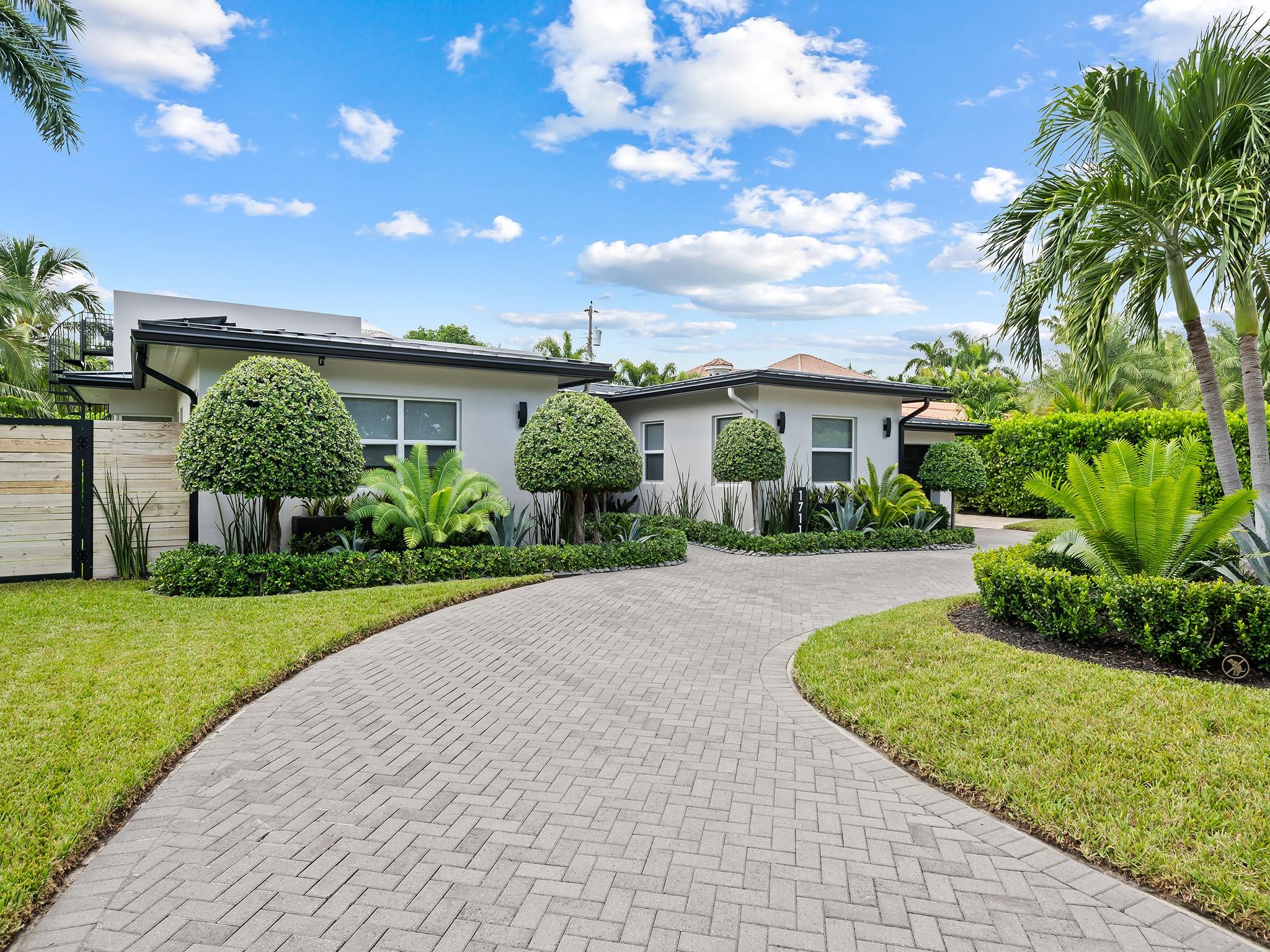 Exquisitely renovated residence lives like new construction w/modern details & luxurious appointments. Every element is designed to cultivate today's lifestyle w/an open concept flr plan, walls of glass providing an abundance of natural light & glass doors that stack to blend interior & exterior living spaces. Enjoy the S. Florida lifestyle under the covered loggia w/a louvered electric ceiling, swim in the salt water chlorinated heated & chilled pool, or experience waterway views from the finished roof top terrace. The kitchen is outfitted w/upgraded appliances & tremendous storage. The spacious primary suite offers 2 custom walk-in closets & lavish spa inspired bathrm. Additional features incl: a mosquito misting system, water filtration system, solar panels & more. Sq. Ft. from seller.