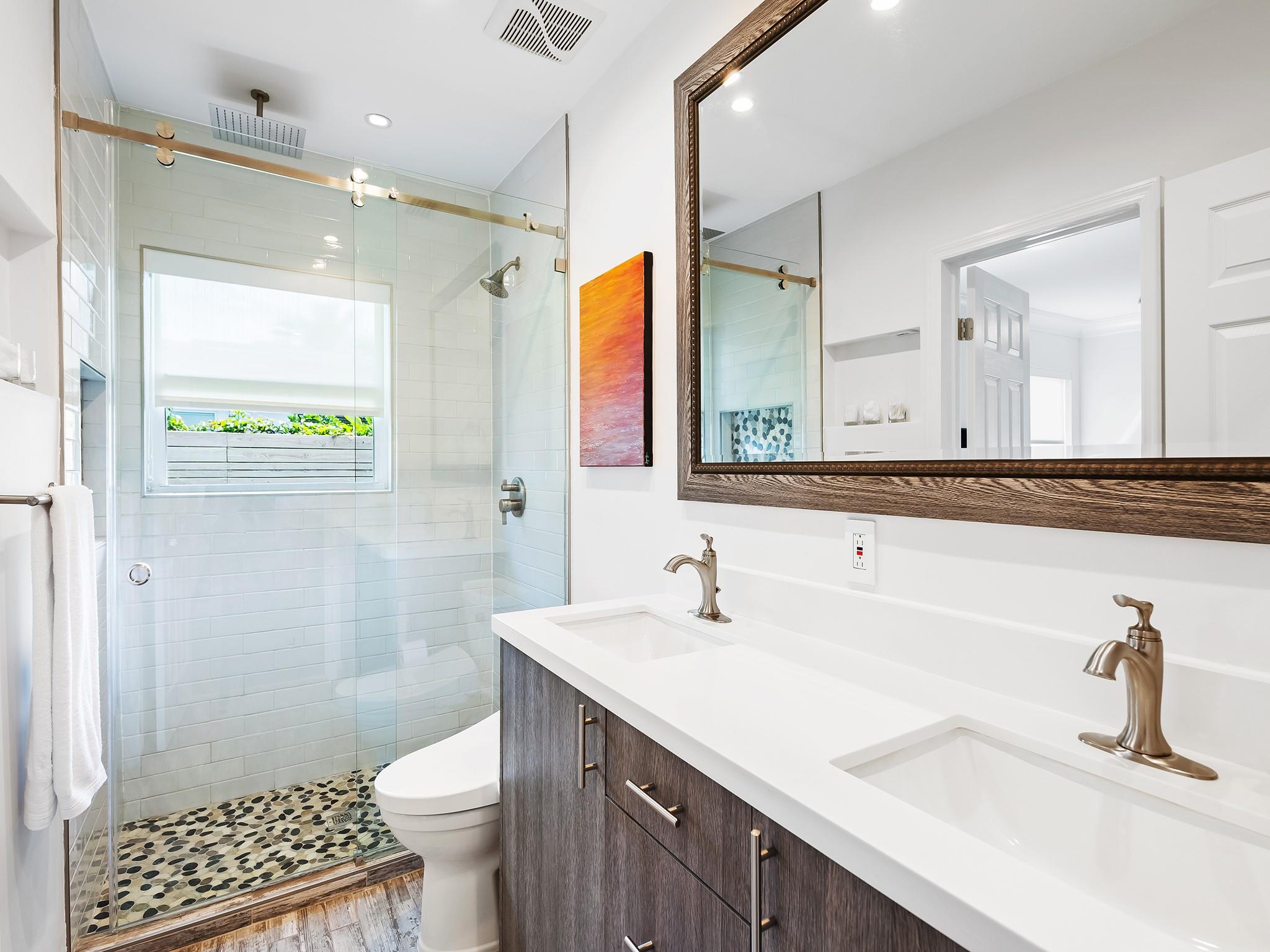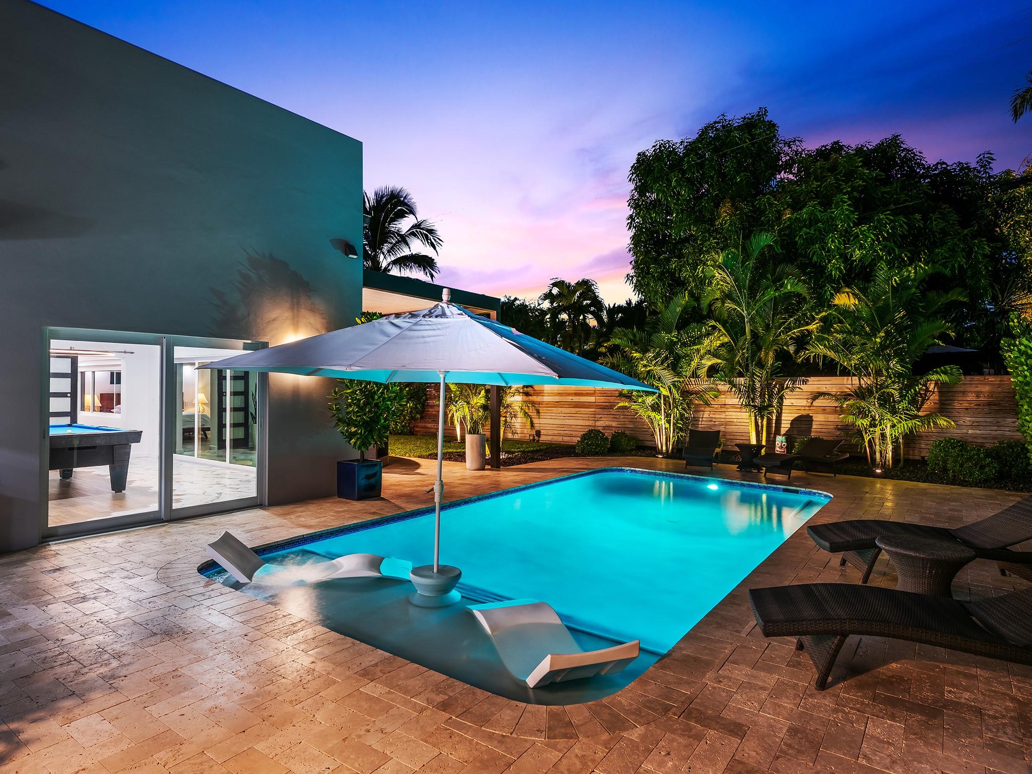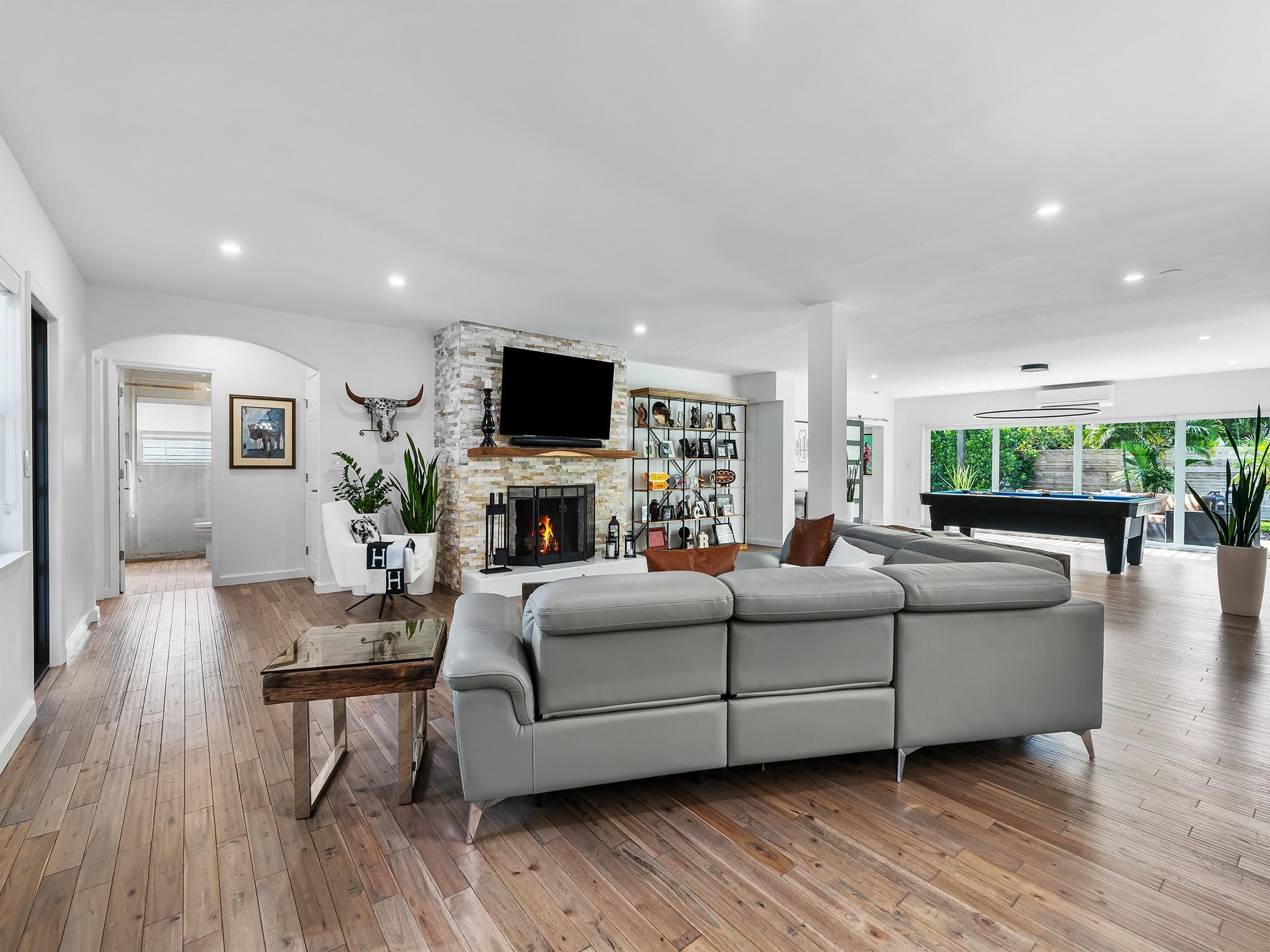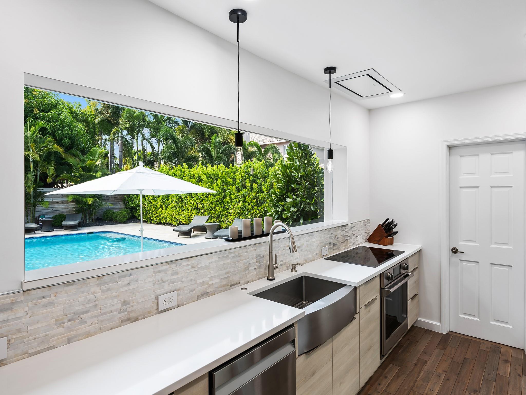 Exquisitely renovated residence lives like new construction w/modern details & luxurious appointments. Every element is designed to cultivate today's lifestyle w/an open concept flr plan, walls of glass providing an abundance of natural light & glass doors that stack to blend interior & exterior living spaces. Enjoy the S. Florida lifestyle under the covered loggia w/a louvered electric ceiling, swim in the salt water chlorinated heated & chilled pool, or experience waterway views from the finished roof top terrace. The kitchen is outfitted w/upgraded appliances & tremendous storage. The spacious primary suite offers 2 custom walk-in closets & lavish spa inspired bathrm. Additional features incl: a mosquito misting system, water filtration system, solar panels & more. Sq. Ft. from seller.