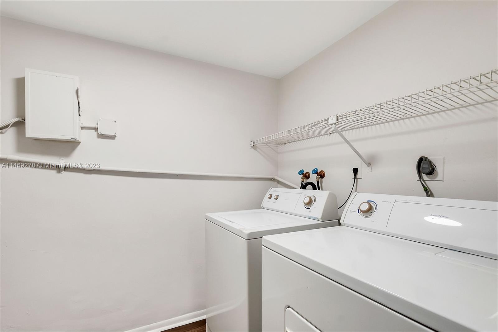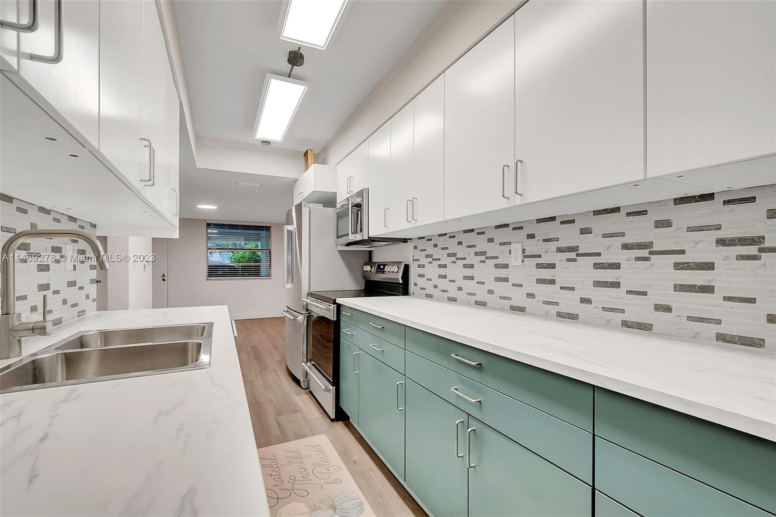 Fantastic, remodeled, two story, 2 bdrm/ 2.5 bath townhome in North Miami. New roof! Great floorplan. Formal living/dining room. Remodeled kitchen with stainless steel appliances, new countertops, and white cabinetry. Adjacent family room with sliding doors out to the backyard. Half bath located on the first floor. 2 en-suite bedrooms are located upstairs each with their own balcony, walk in closets and updated bathrooms. Conveniently located, separate laundry room. Laminate flooring, sliding shades for windows. Beautiful, tropical fenced backyard. 2 car carport and double driveway.