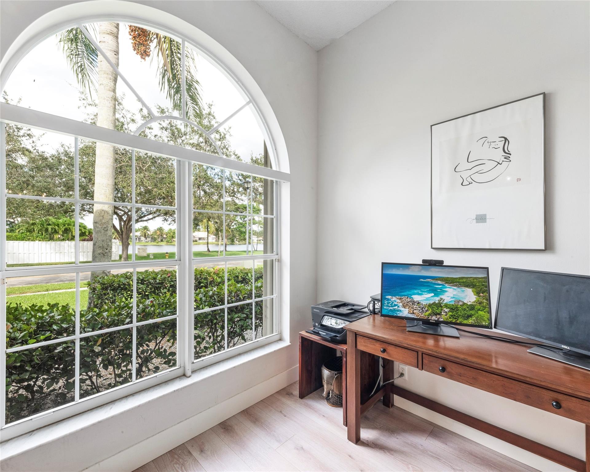 Exceptional Lakefront Living in Sought-After Pembroke Falls! This single-story 3-bed, 2.5-bath home is situated on a rare oversized corner lot, offering breathtaking water views from every angle. Features include a screened porch, new flooring, new kitchen and bathrooms, hurricane shutters, a 2019 AC unit, and a stylish pavered driveway. With an airy, open layout and soaring vaulted ceilings, the house feels bright and spacious. Enjoy luxurious amenities, 4 guarded entrances, and the convenience of bundled cable, internet, and alarm services in the HOA. Plus, easy access to I-75 and a central location between Pembroke Gardens and Pembroke Lakes Mall. Call us today for a private viewing and discover the essence of lakefront luxury living in Pembroke Falls.