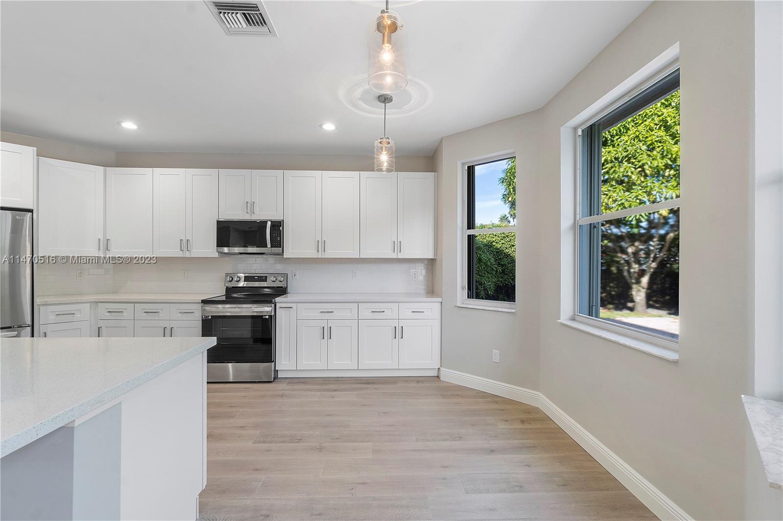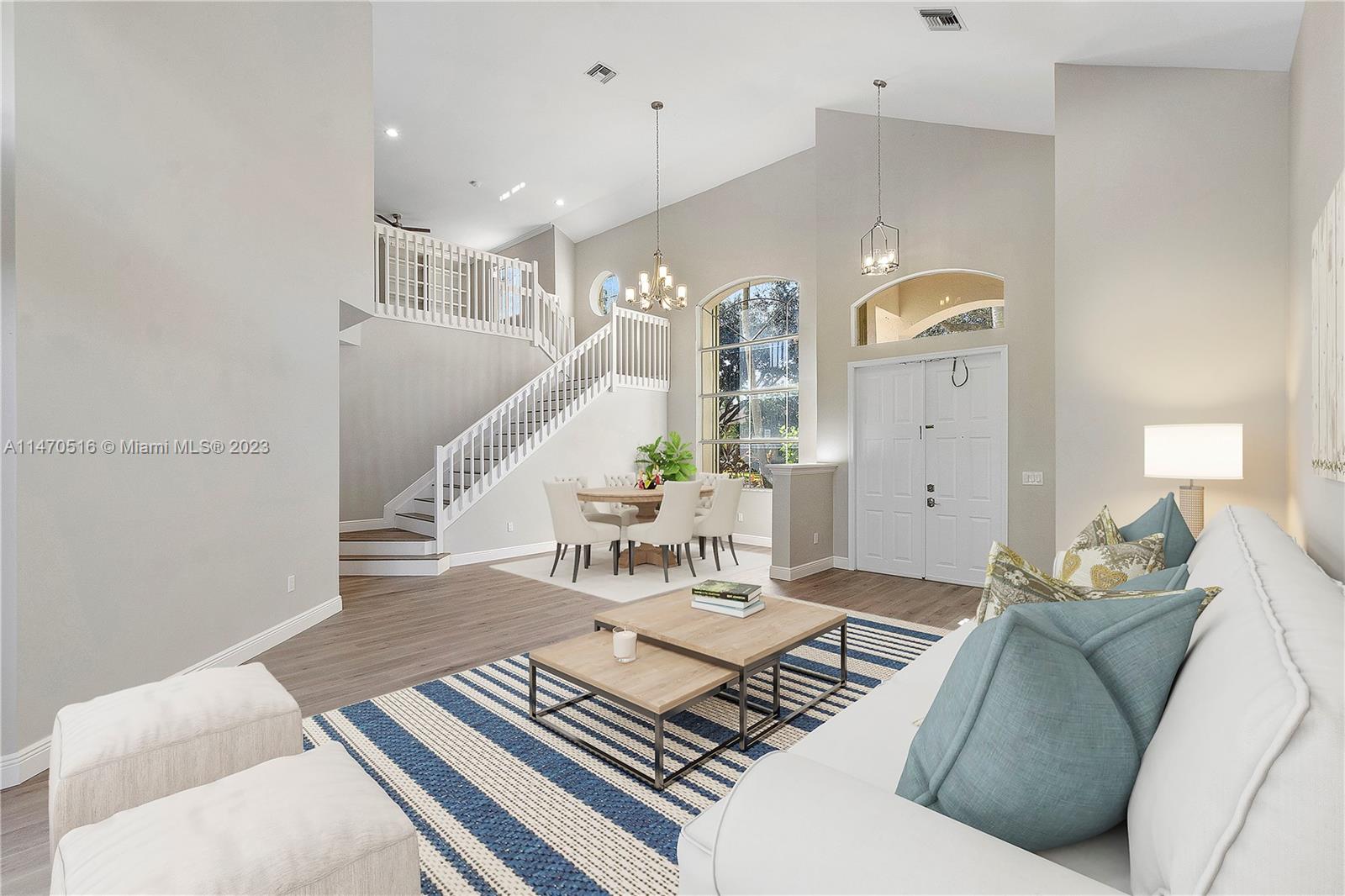Beautiful 4 Bed/ 3 Bath + (5th Bed Loft) & 3 Car Garage Pool Home Located In Prestigious Yardley Estates. This Home Features An Open New Custom Kitchen W/ LG SS Appliances, Quartz Countertops W/ Island & Breakfast Bar. One Bedroom Downstairs Has Connecting Bathroom With New Vanity, Shower W/ Frameless Enclosure. New Flooring Throughout, All New Light Fixtures & Fans, LED Recessed Lighting, Siemens Electrical Panel. Water Heater 2020. 2 Newer AC's. Large Primary Suite W/ Dual Walk-In Closets. Upgraded En-Suite Bathroom With Freestanding Tub, Dual Sinks & Upgraded Shower. Two Other Bedrooms Share Updated Hall Bath W/ Dual Sinks, & Upgraded Tub/Shower. Large Private Fenced Corner Lot w/ Newly Renovated Pool, Mango Trees, & Accordion Shutters. Located Near A Rated Schools & Park. Low HOA.