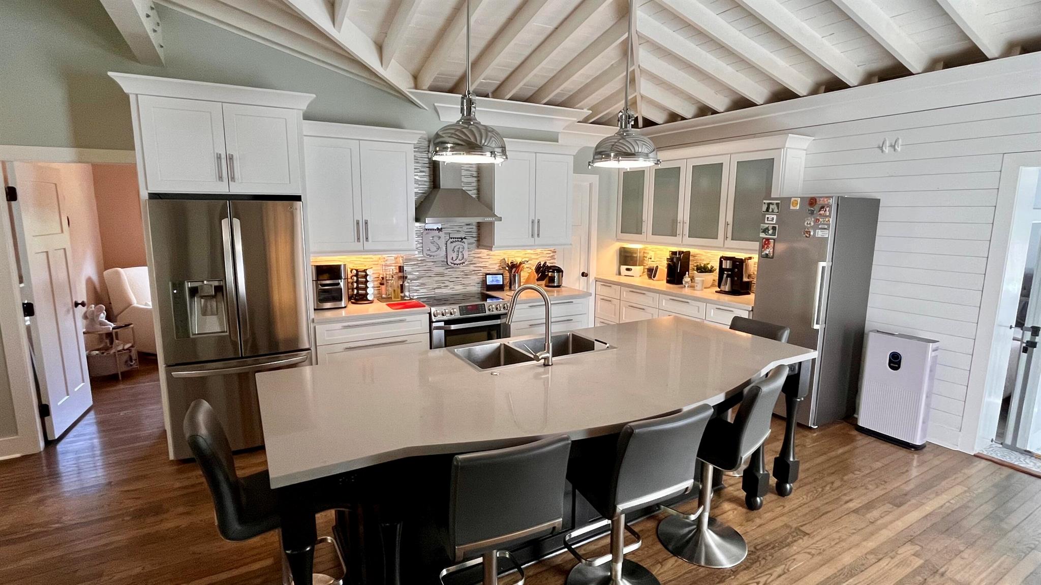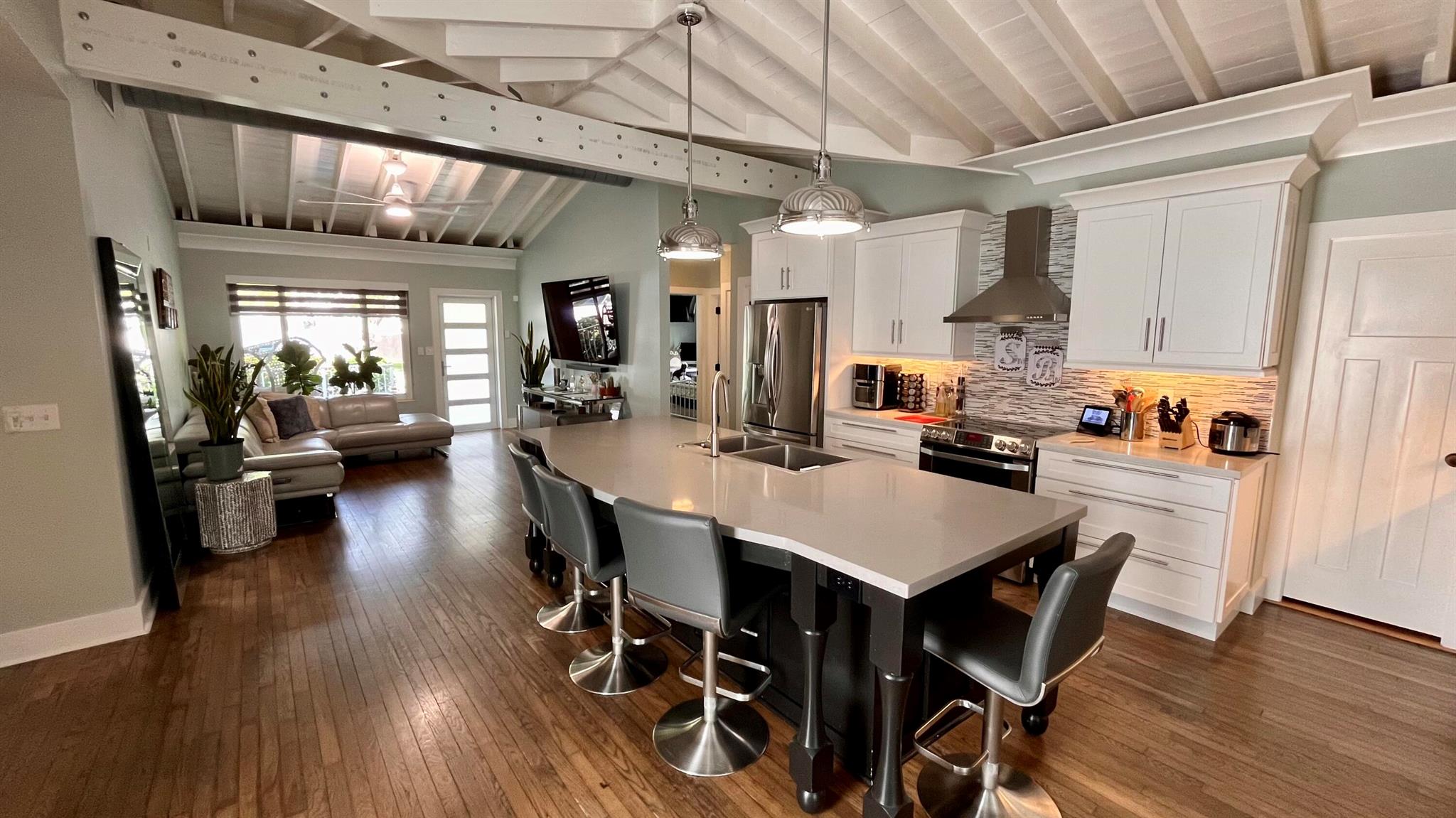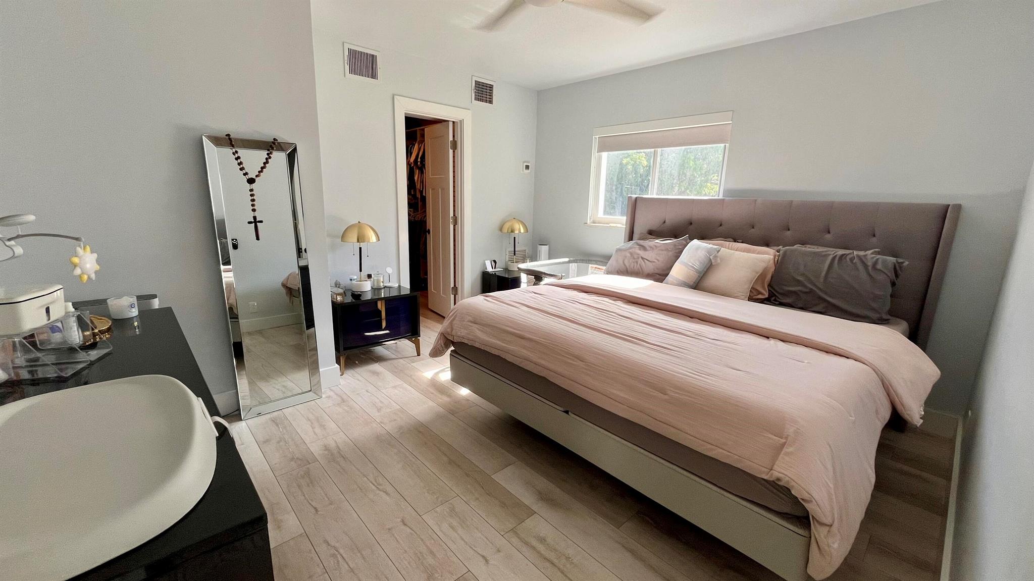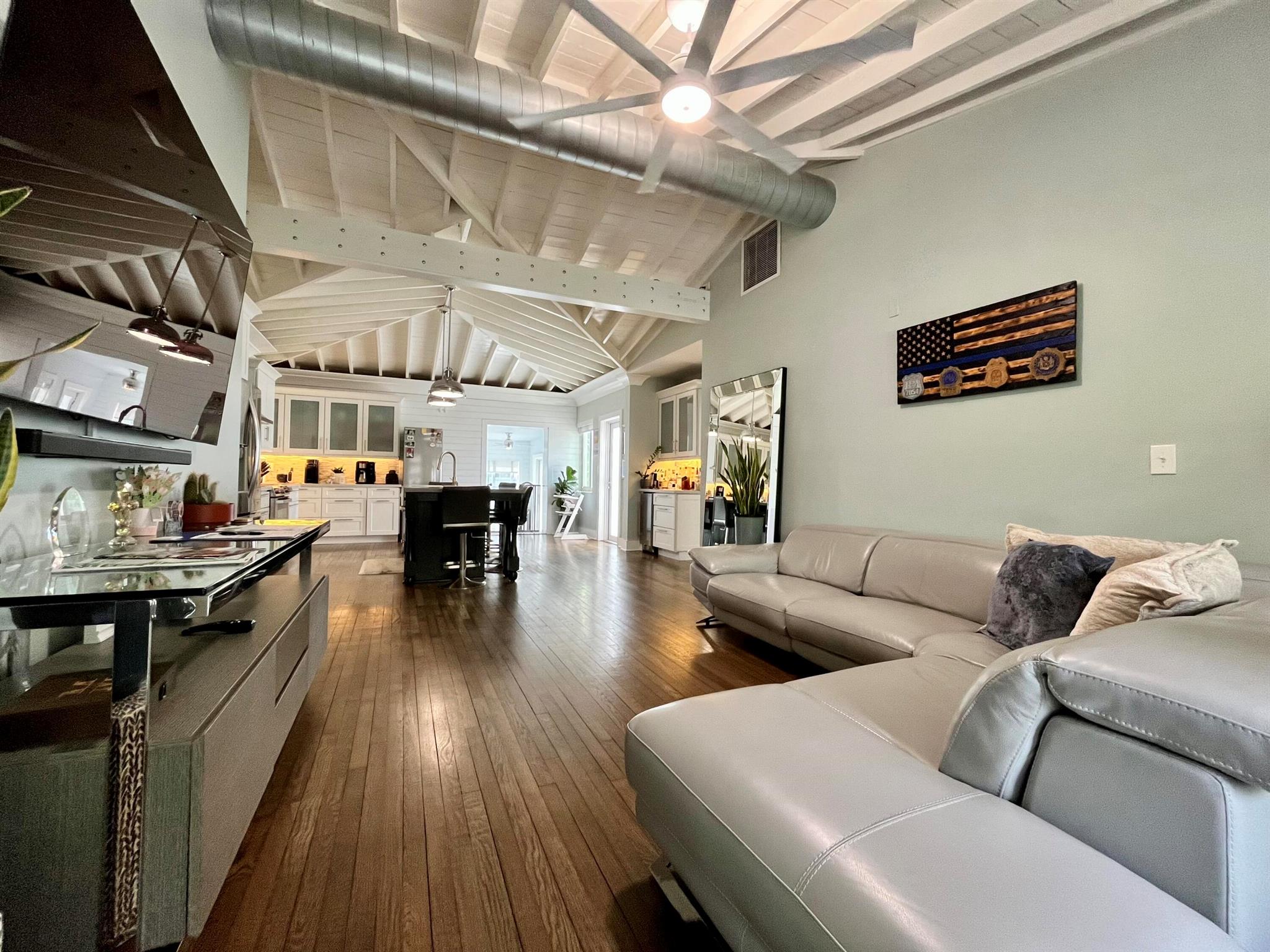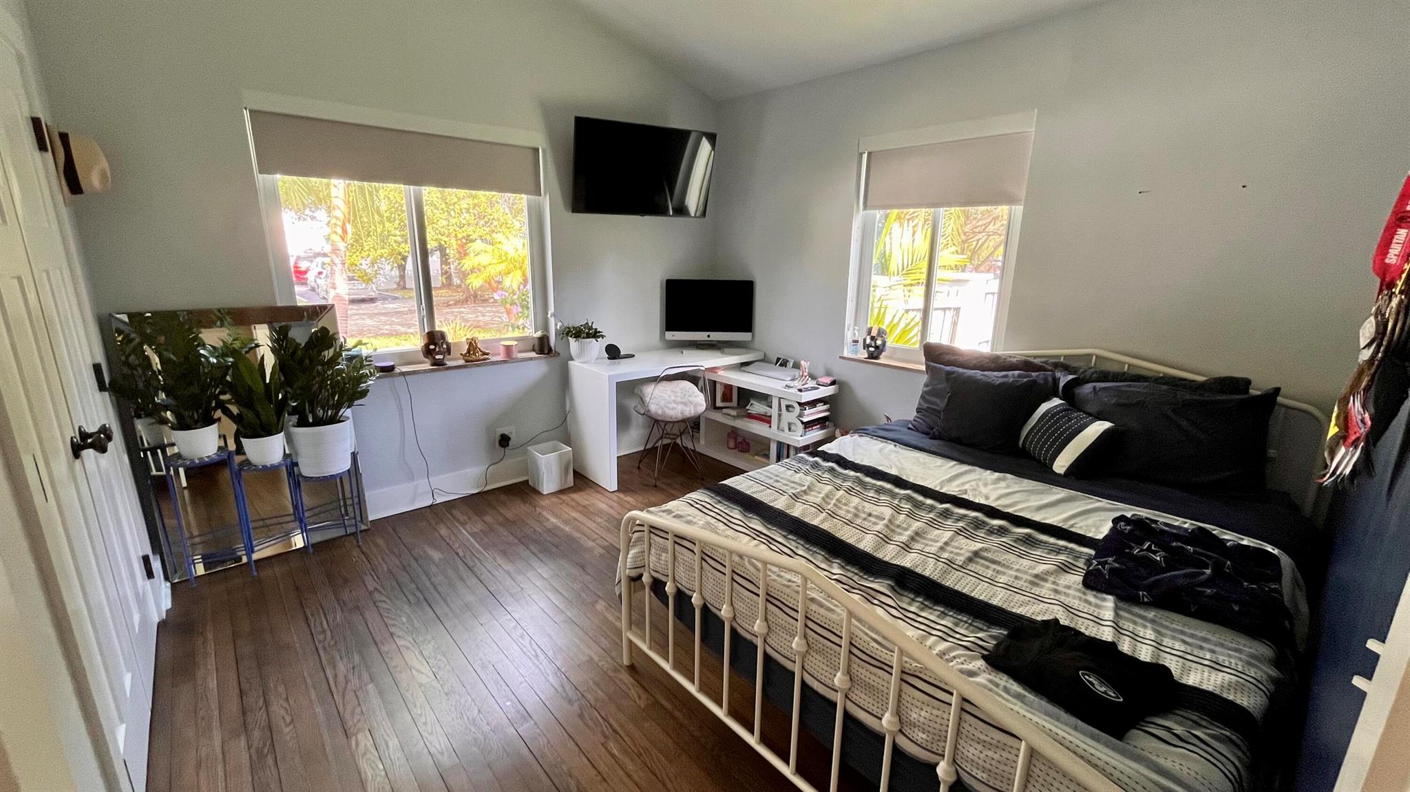 Beautiful Renovated Mid Century 3 bedrooms, 2 baths, plus office home located in The Lakes Neighborhood. Situated on a spectacular double lot, 3 blocks from downtown Hollywood and a Mile from the Beach. The home offers a large kitchen which features a massive center island, stainless appliances, custom cabinetry, a walk in pantry and real hardwood floors throughout. There is tons of closet space throughout the house. Two bedrooms have walk-in closets and the third bedroom offers a huge cedar lined closet. The home offers all around impact windows, 4 brand new impact doors, new custom window treatments throughout. The yard is large enough to park a 45 Ft. Boat and RV with 2 separate entrances in the rear alleyway. Includes a large Shed. The home is located outside of the flood zone