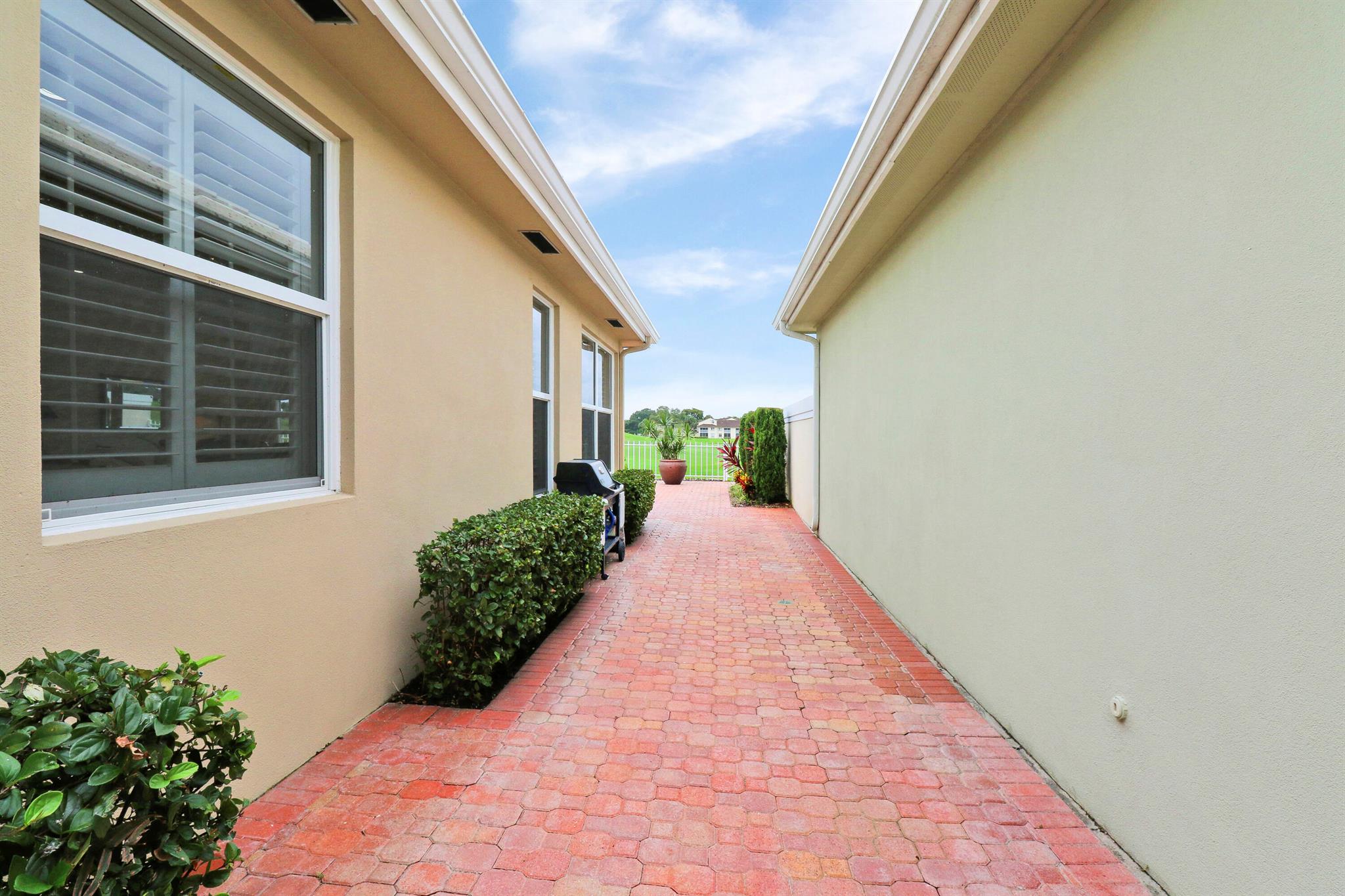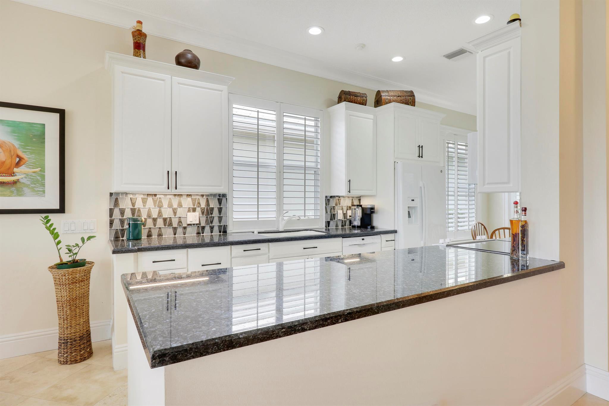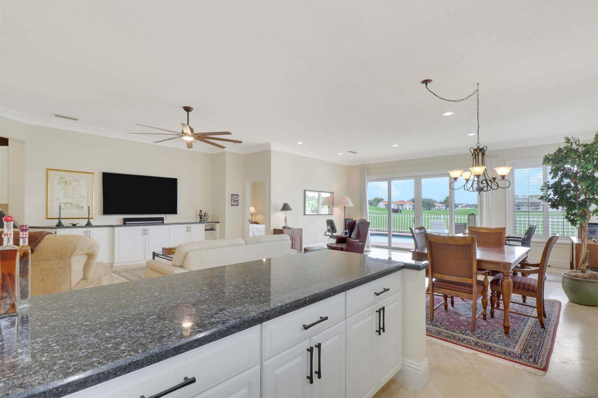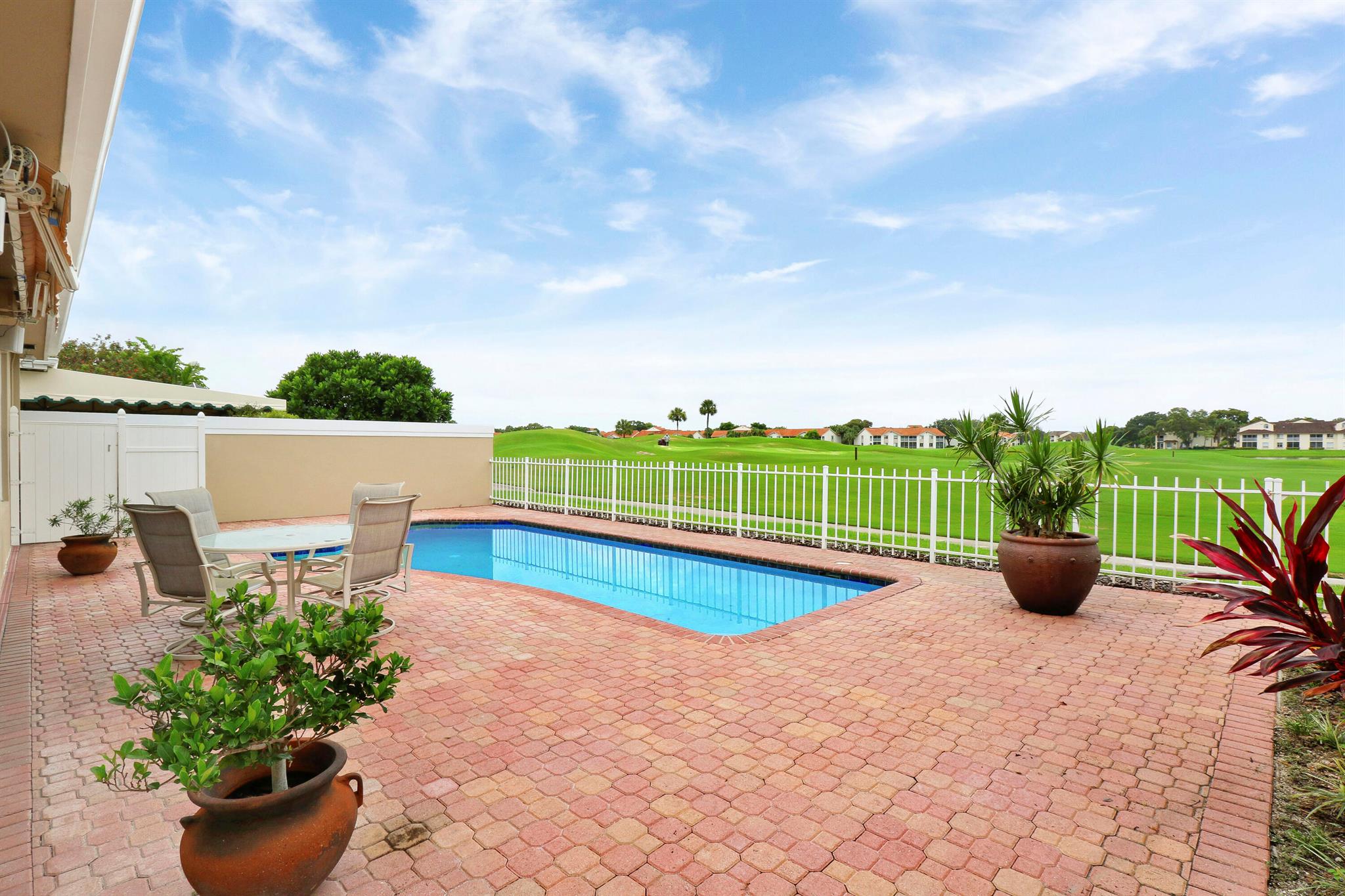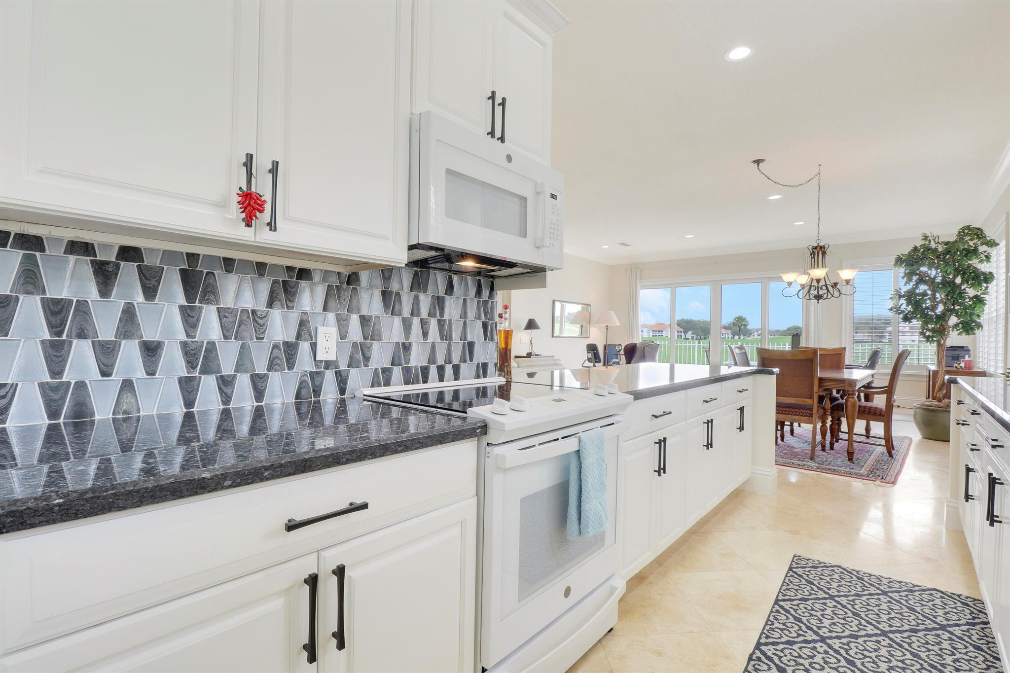 Bear Island Hampton model home overlooking the 12th green of Bear Lakes Golf Course. This home is neat as pin and has been well cared for with may updates and upgrades including marble floors and bathrooms. Beautiful trim work including solid core doors, crown moulding, plantation shutters, and trimmed out windows throughout. Appliances are new about 1 year ago. All windows are impact. Patio has brick pavers and a nice size pool with a sun setter retractable awning for shade. Beautiful western sunsets over the golf course from the back patio table. Is move in ready and needs nothing. Brand new air conditioning system installed on 1/24/2024. Comes with transferable warranty. 2 years labor and 10 year parts. Updated termite bond 1/2024.