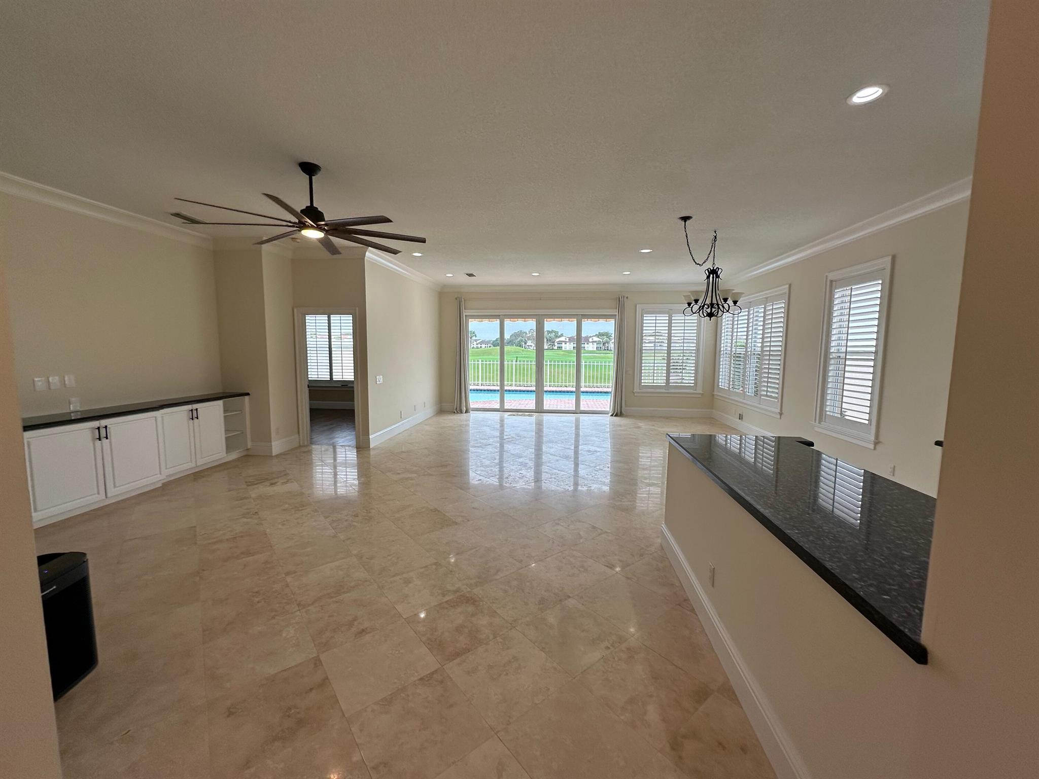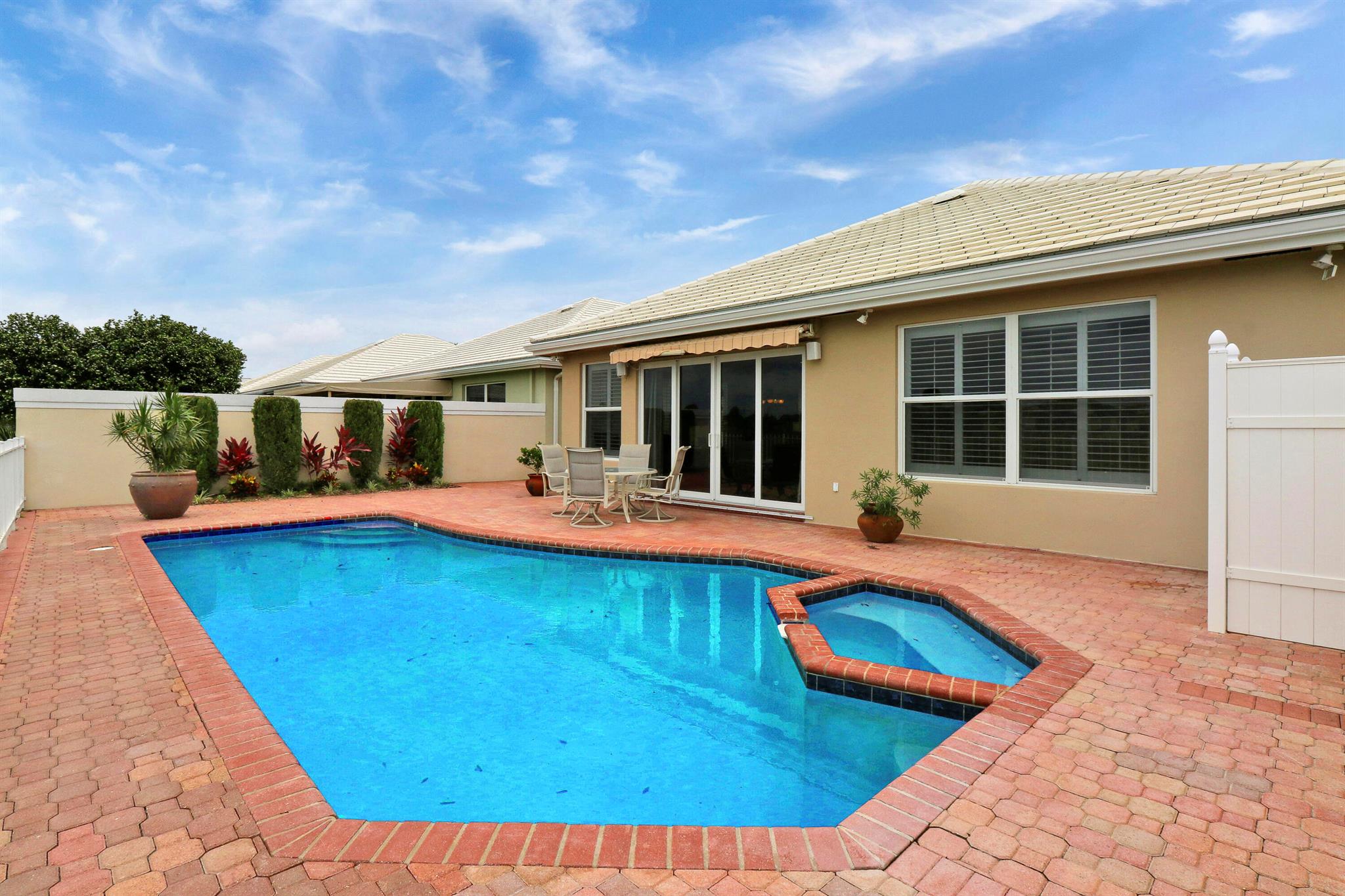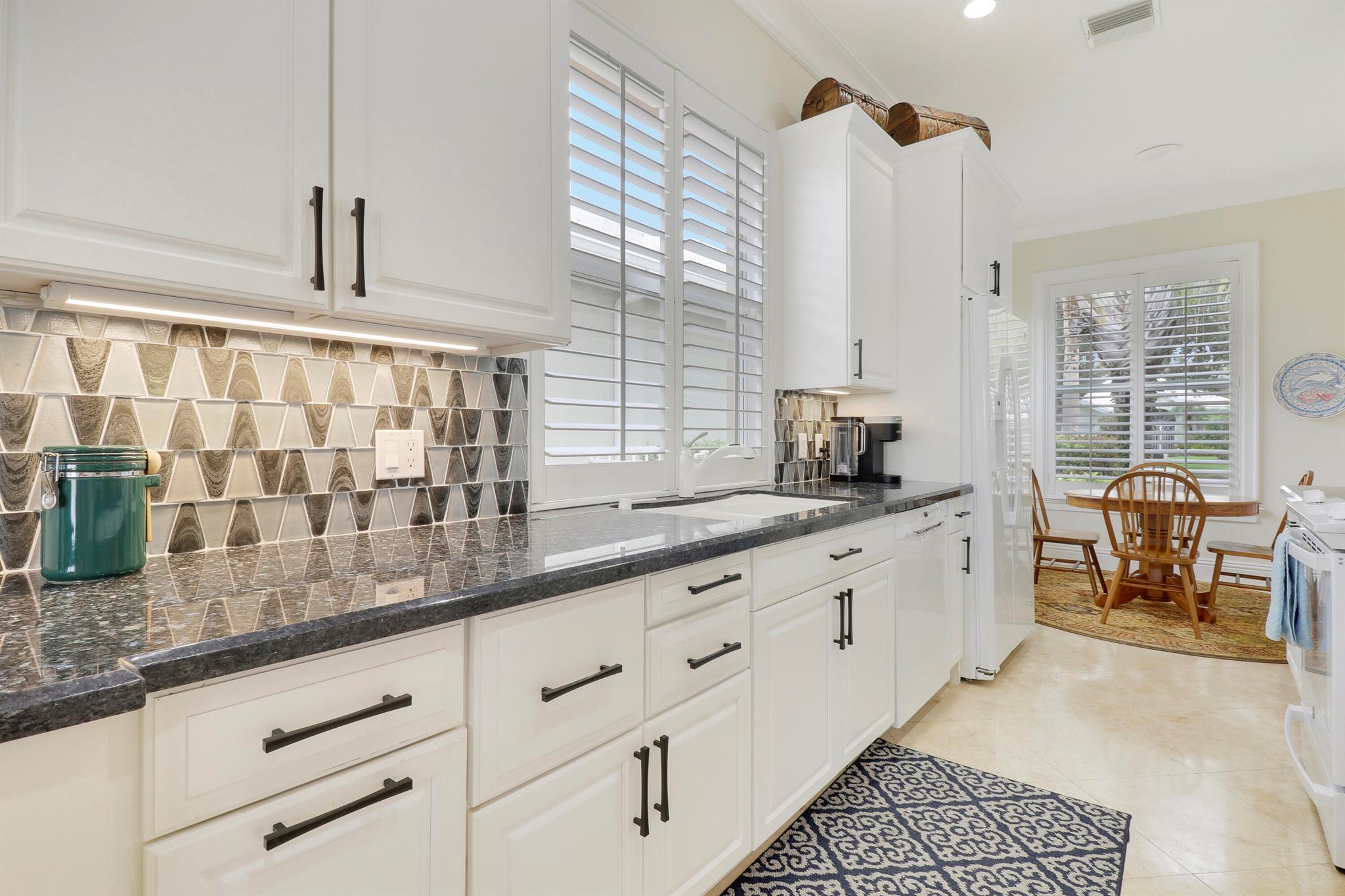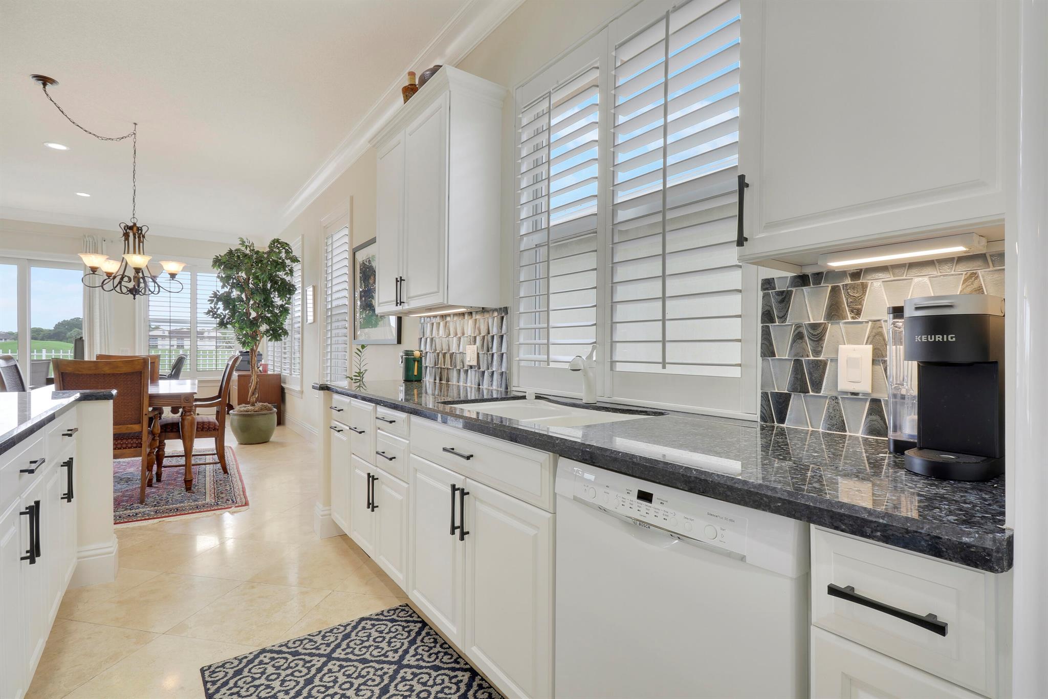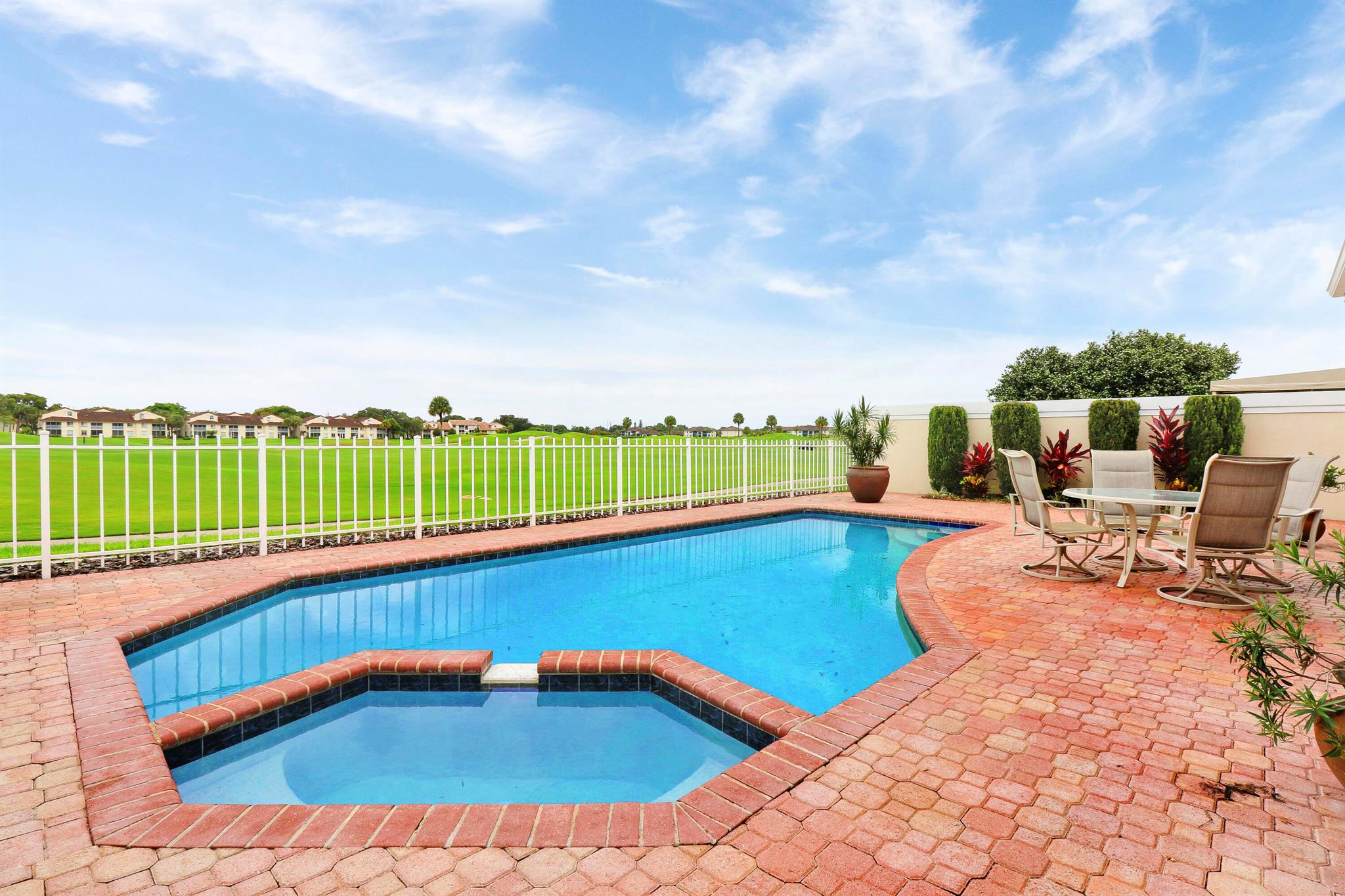 Bear Island Hampton model home overlooking the 12th green of Bear Lakes Golf Course. This home is neat as pin and has been well cared for with may updates and upgrades including marble floors and bathrooms. Beautiful trim work including solid core doors, crown moulding, plantation shutters, and trimmed out windows throughout. Appliances are new about 1 year ago. All windows are impact. Patio has brick pavers and a nice size pool with a sun setter retractable awning for shade. Beautiful western sunsets over the golf course from the back patio table. Is move in ready and needs nothing. Brand new air conditioning system installed on 1/24/2024. Comes with transferable warranty. 2 years labor and 10 year parts. Updated termite bond 1/2024.