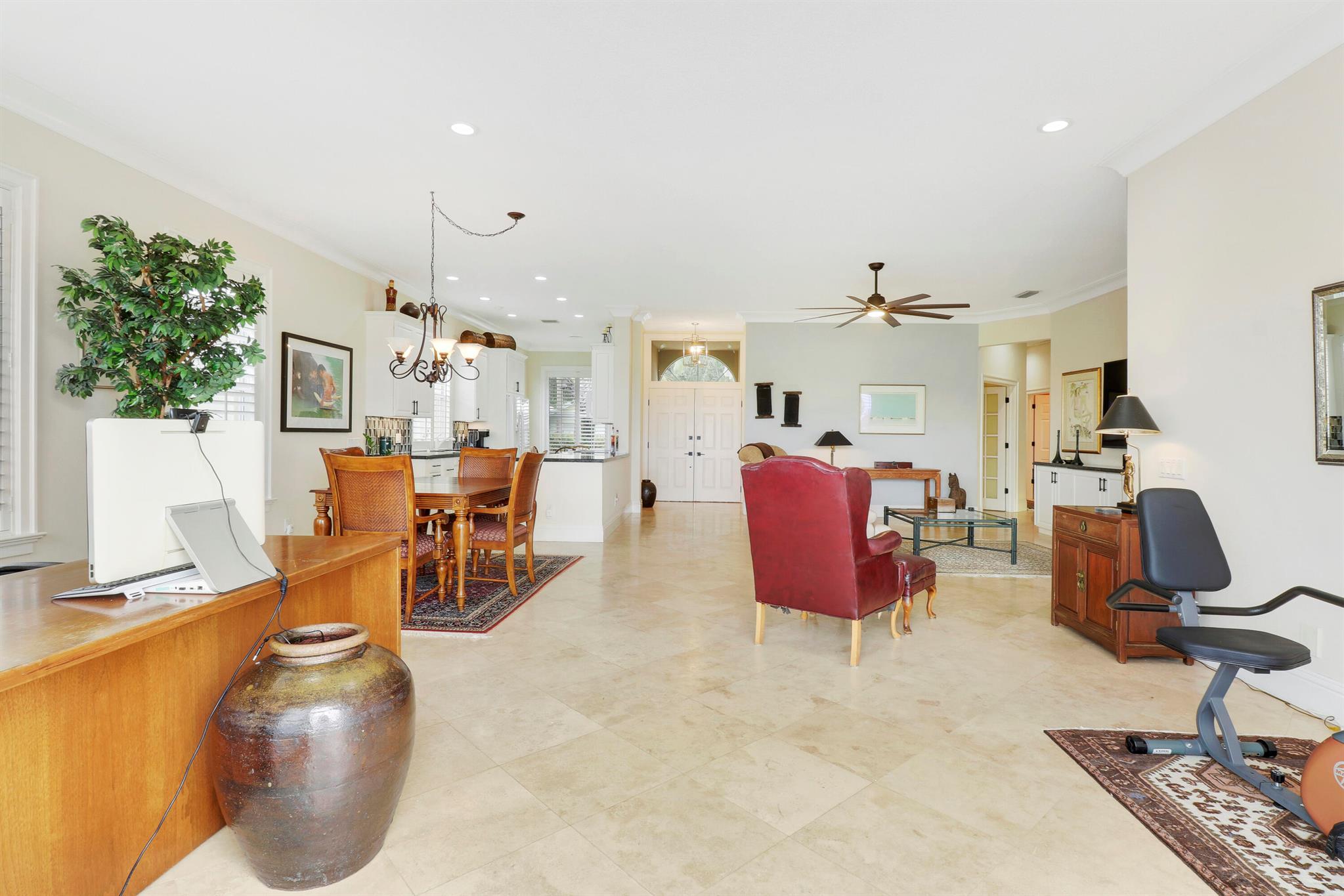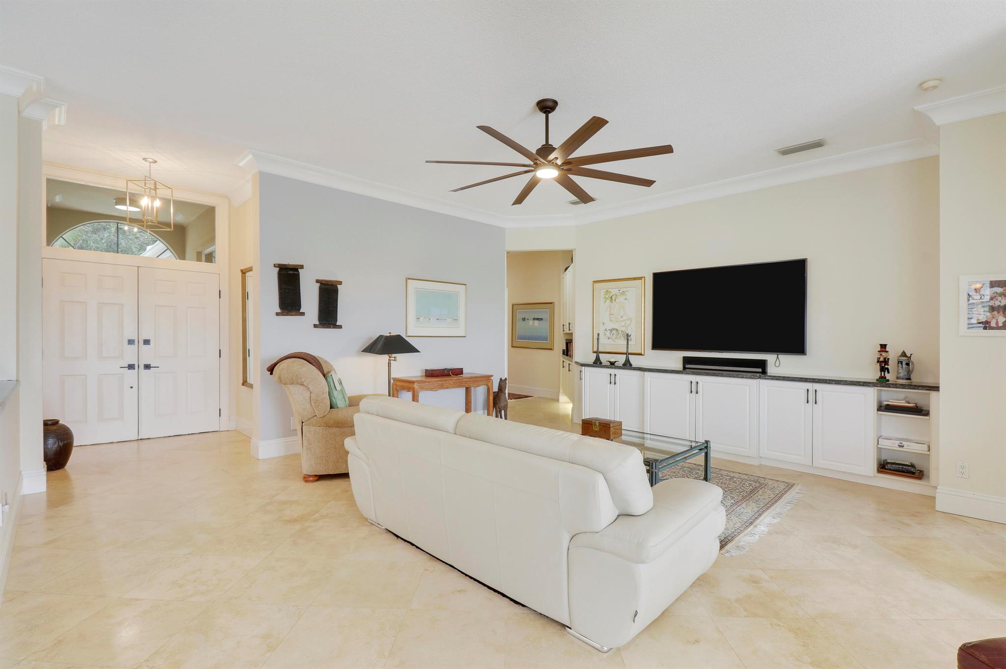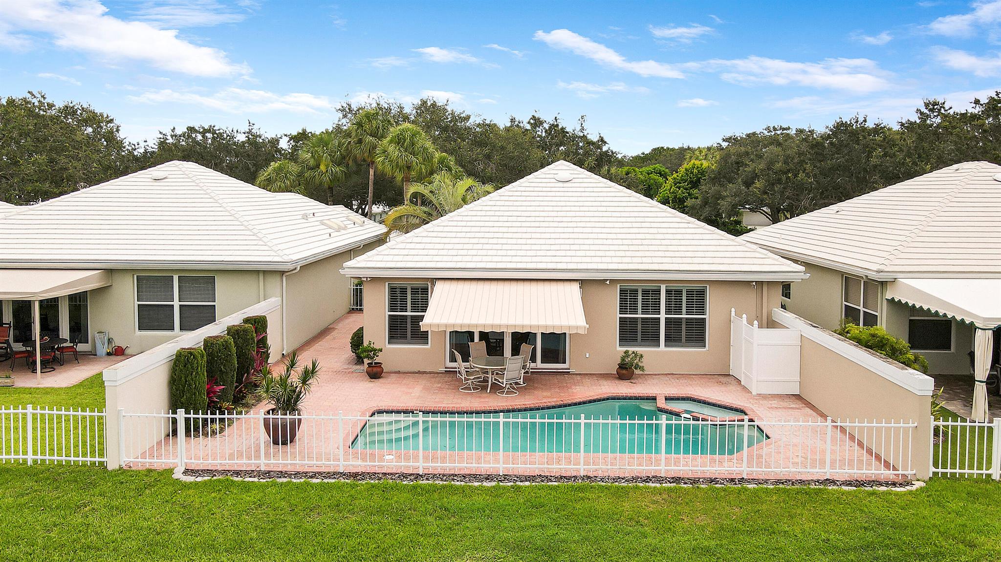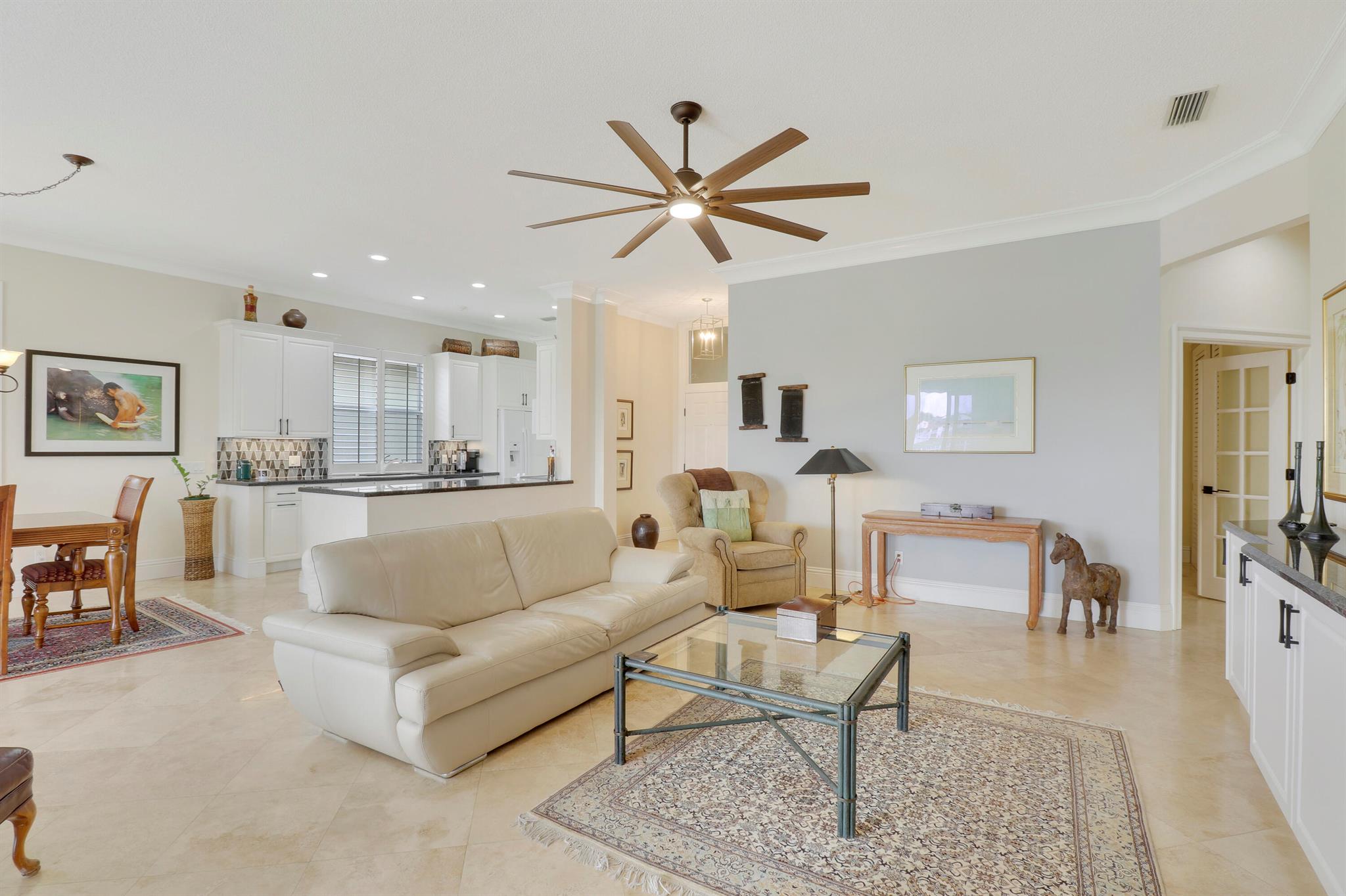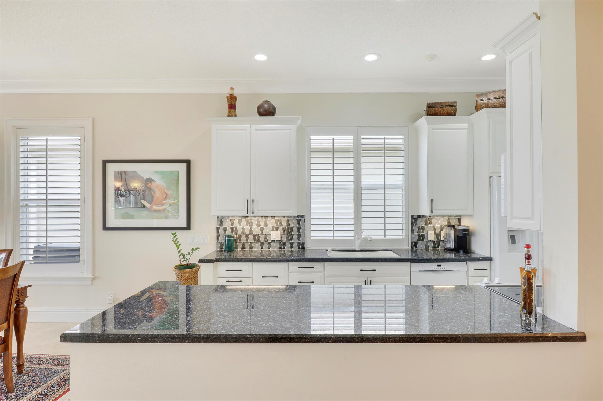 Bear Island Hampton model home overlooking the 12th green of Bear Lakes Golf Course. This home is neat as pin and has been well cared for with may updates and upgrades including marble floors and bathrooms. Beautiful trim work including solid core doors, crown moulding, plantation shutters, and trimmed out windows throughout. Appliances are new about 1 year ago. All windows are impact. Patio has brick pavers and a nice size pool with a sun setter retractable awning for shade. Beautiful western sunsets over the golf course from the back patio table. Is move in ready and needs nothing. Brand new air conditioning system installed on 1/24/2024. Comes with transferable warranty. 2 years labor and 10 year parts. Updated termite bond 1/2024.