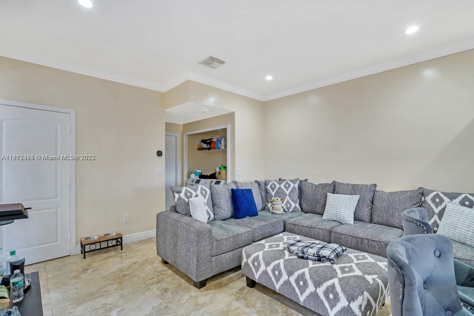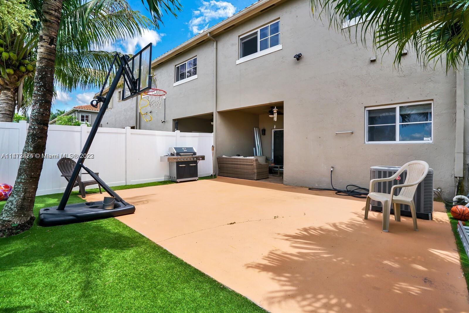 Stunning 3/2.5 townhome fully upgraded with fenced backyard and a 1-car garage (will be vacant of all furnishings). This home boasts ample square footage (1804 sf), very large master bedroom with amazing master bath and walk-in closet, 24x24 porcelain tiles throughout ground level, upgraded chef's kitchen with island and stainless-steel appliances, renovated bathrooms, crown moldings throughout, newer wood flooring on 2nd story and very large backyard with covered porch for entertaining. New roof (2023), AC (2020) and instant water heater (2019). The entire complex was painted last year. The location is very private with no neighbors to the rear (canal). Newer front-loader washer/dryer included. Two(2) weeks approval process. Pets Ok and may rent immediately. Easy to show.