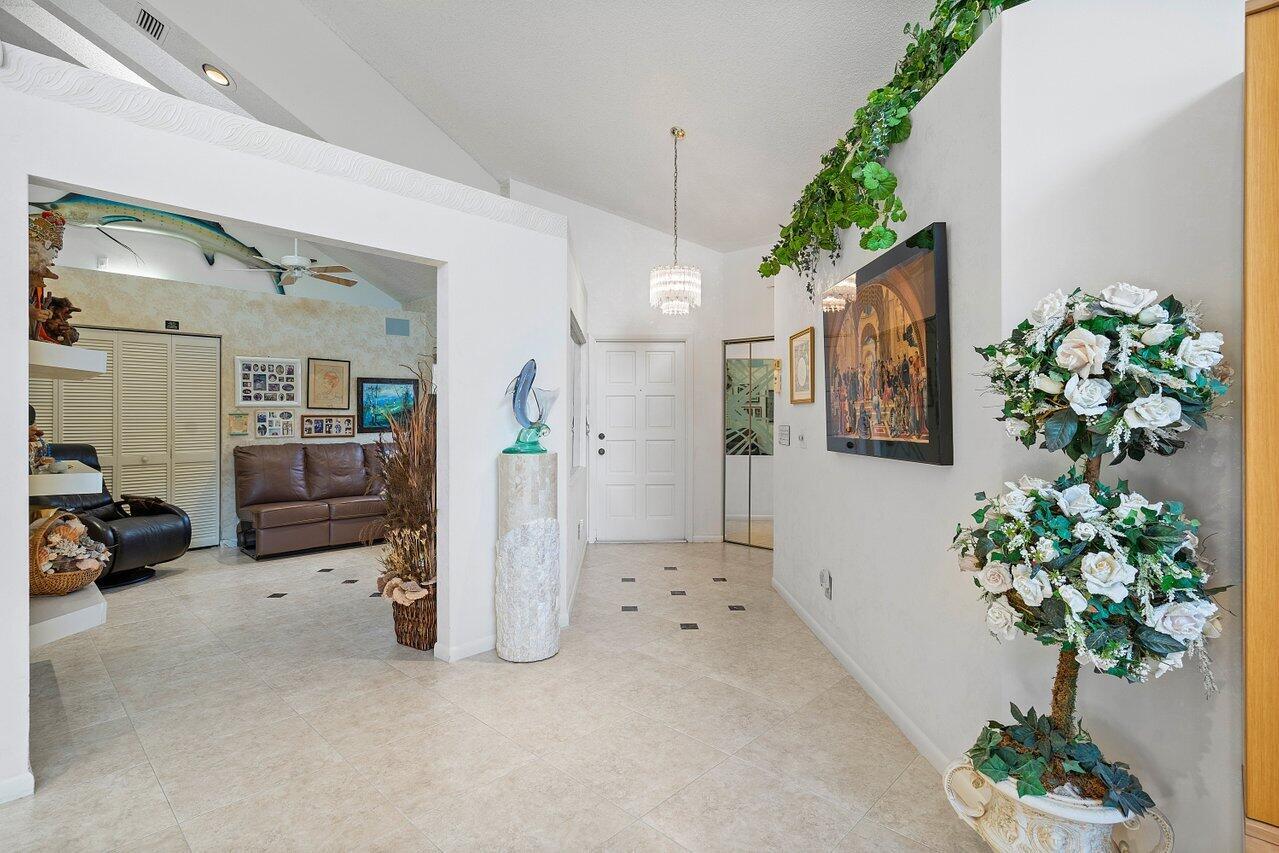 Charming one-story home nestled in Ville Capri. Boasting 2 bedrooms plus a den/3rd bedroom, 2.5 bathrooms, and a 2 car garage. As you step inside, you'll be greeted by vaulted ceilings providing an open and comfortable living space. The screened patio offers a picturesque view of the beautiful lake. Whether you want to enjoy your morning coffee or unwind after a long day, this tranquil outdoor space provides the perfect setting. New AC 2023. Conveniently located in close proximity to the clubhouse, you'll have easy access to the community amenities and activities.The Polo Club is an upscale mandatory membership country club with 2 championship golf courses, a renowned tennis center, fitness and spa facilities, and several dining options to choose from. You won't want to miss this one!