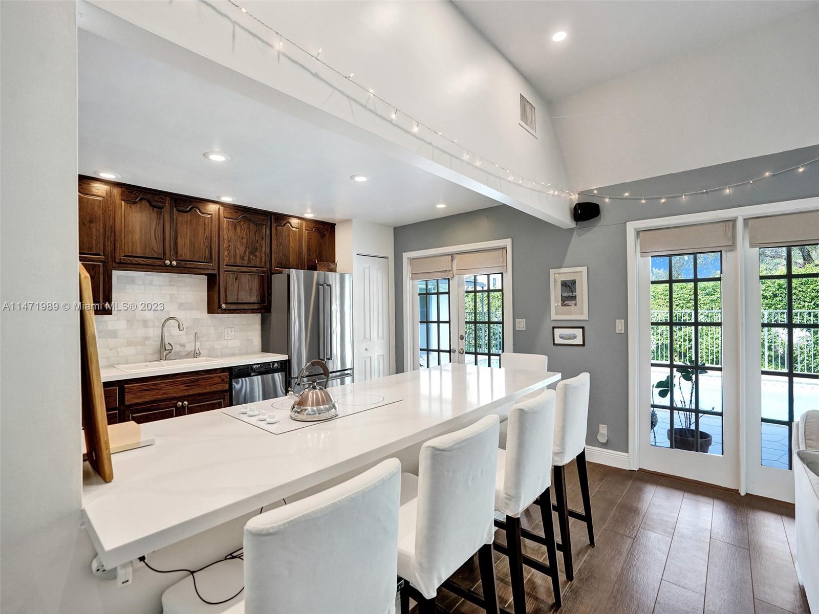 Wonderful 4 BR 2 Bath Single Level Single Family Home with NO HOA. Located at the serene end of the street near the Plantation Equestrian Center and Sawgrass Mall. Open-floor-plan featuring vaulted ceilings in LR and DR and Volume ceiling in FR for airy, brightness throughout. Porcelain tiles throughout the Home. Bedrooms have walk-in closets and the two bathrooms have double sinks. Well-appointed kitchen, equipped with stainless-steel appliances and quartz countertops. French doors open up to a splendid patio, creating an indoor-outdoor living atmosphere. The Salt Water Pool fits well in the Tranquil Plantation Neighborhood! Windows are Impact, French Doors have hurricane panels. New Roof 2005. New Water heater 2019. New A/C 2015. Refrigerator in Garage and Ring Doorbell are not included.