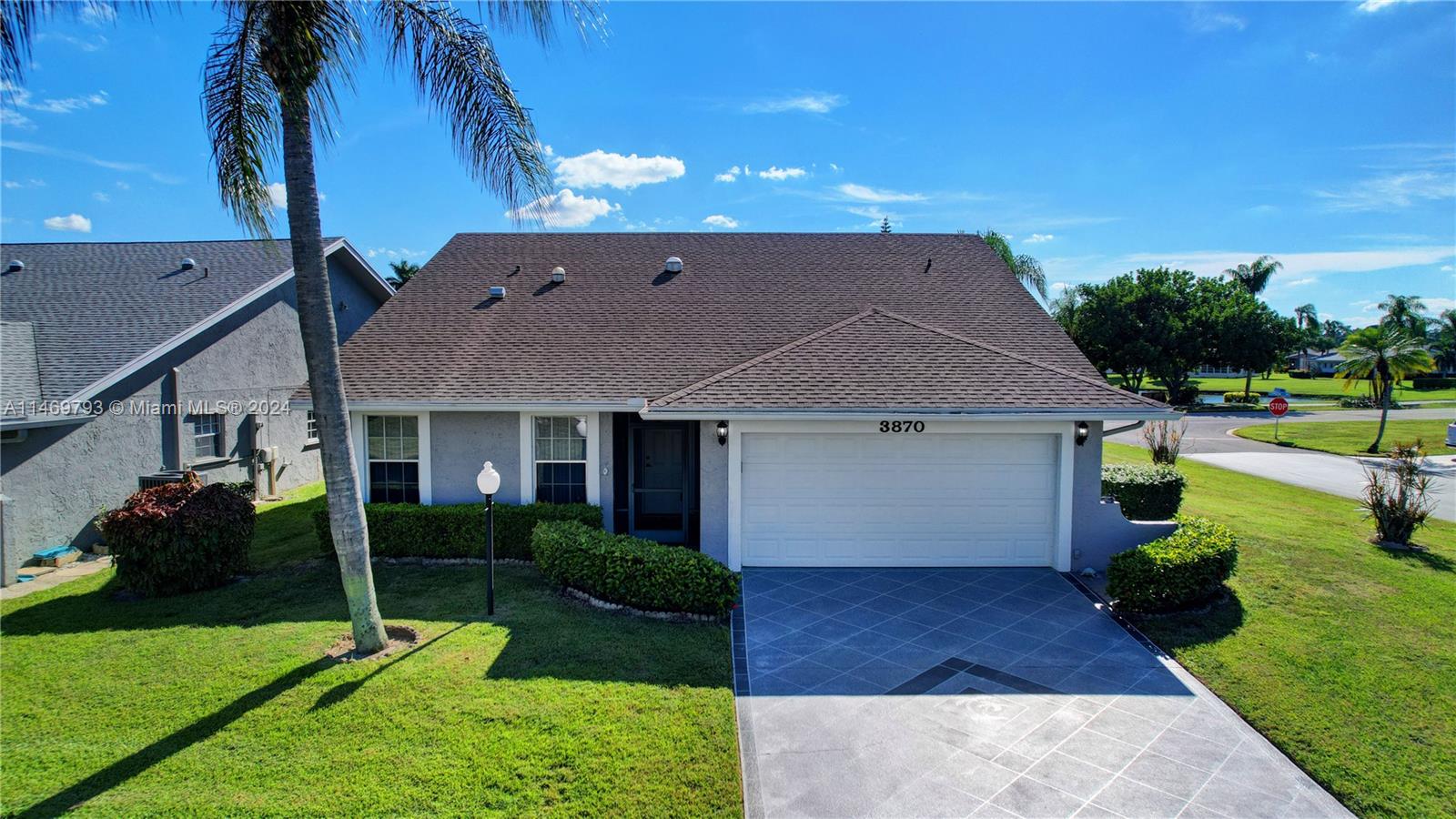 Wow 2 car garage & 2.2 SF furnished Corner lot rarely comes on the market. Great Opportunity to buy for 2nd Vacation home or perfect for Retirement. Open airy with lots of sunlit, rooms painted in neutral colors. Split Bedrooms, Master has Walkin closet, Guest bedroom has deep Jack & Jill closets. Family room exits onto sunroom. Screened sunroom has rollup shutters & access to patio. Tile floors thru out. Vaulted ceilings thru out, 3 sky lights. Roomy garage with lots of storage & pulldown stairs. Outside house freshly painted. Unique View of Lake from Sunroom and patio! Schedule online. Easy to Show.
