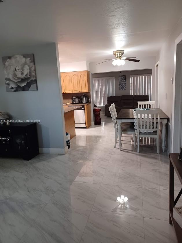 This 3/2 home is located in a quiet family-oriented neighborhood, very spacious with a split bedroom plan, living room and family room. Many updates, including bathrooms beautiful new tile floor, almost new A/C, washer and dryer in interior spacious laundry-storage room. stainless steel appliances, etc. Nice size backyard with space for a pool, also included metal shed in the back for extra storage. Fairly priced, this home will not last long in the market.