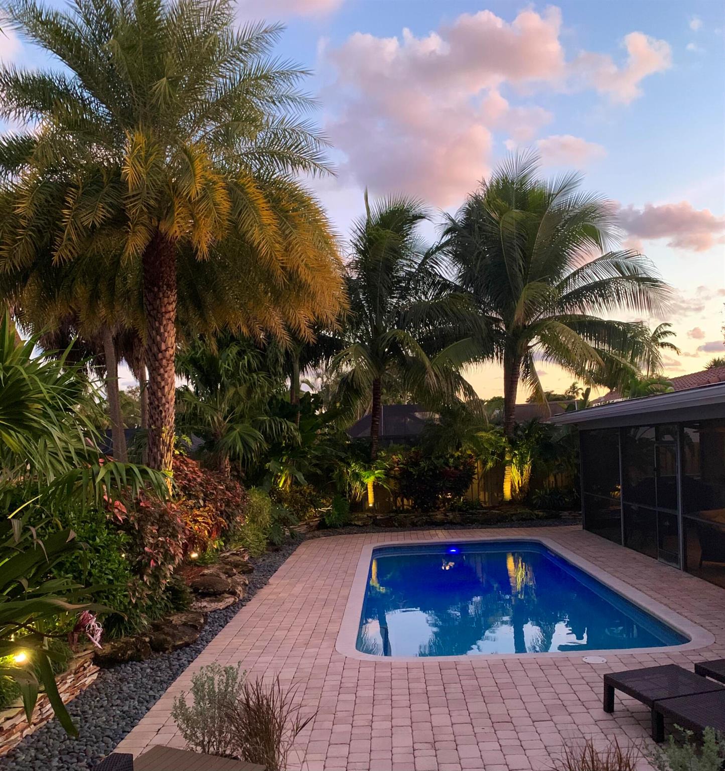 This 3/2 corner lot provides a slice of paradise in a highly sought after East Boca neighborhood. No HOA. Updated kitchen and bathrooms. New wooden fence encloses lush, tropical landscaping which surrounds the open air pool. Washer and Dryer inside. 2 car garage. Crown molding, tile throughout. Double oven in kitchen. Close proximity to I 95, Beach, great schools, and Sugar Sand Park. Chandelier in Primary Bedroom does not convey.