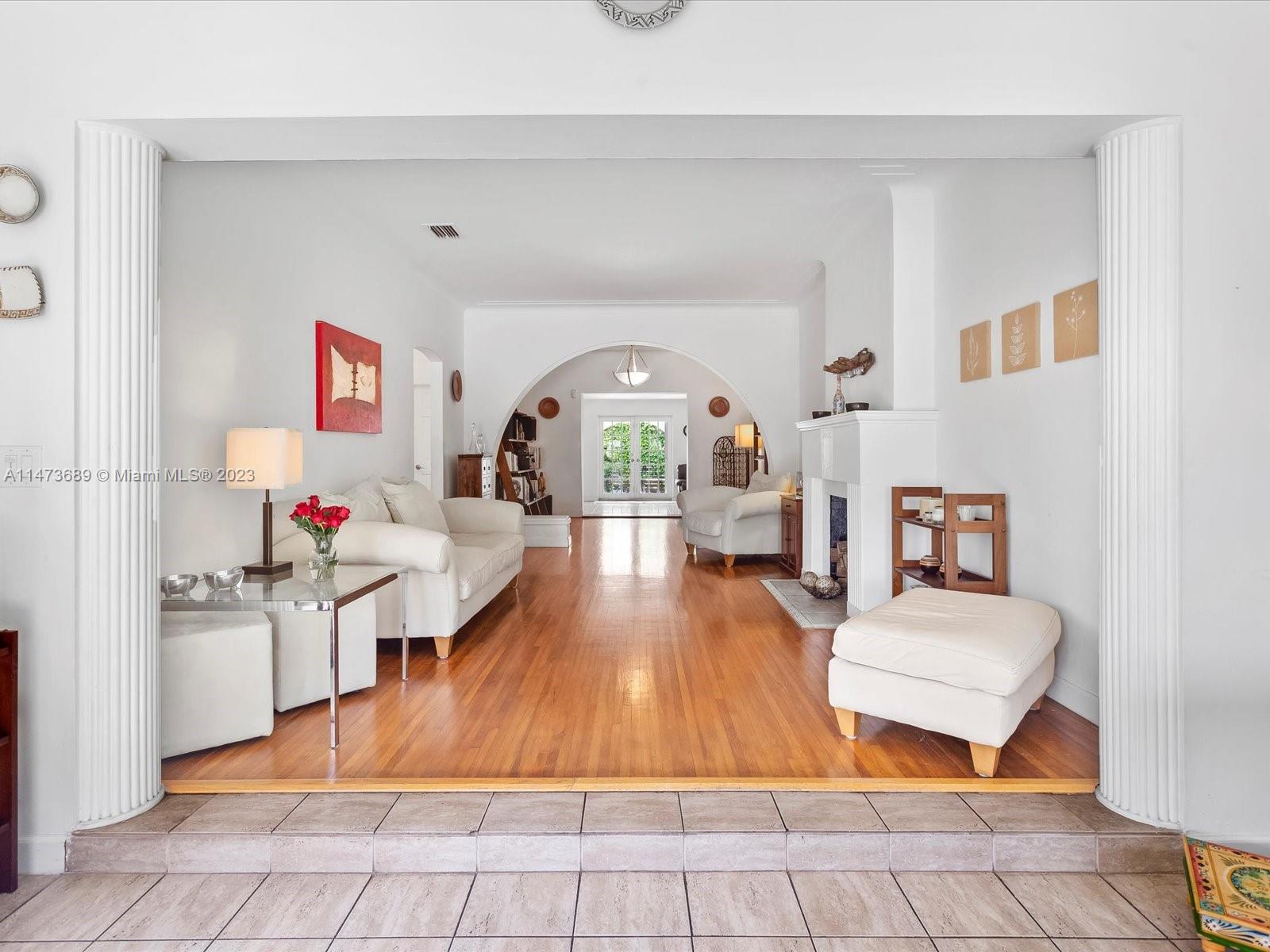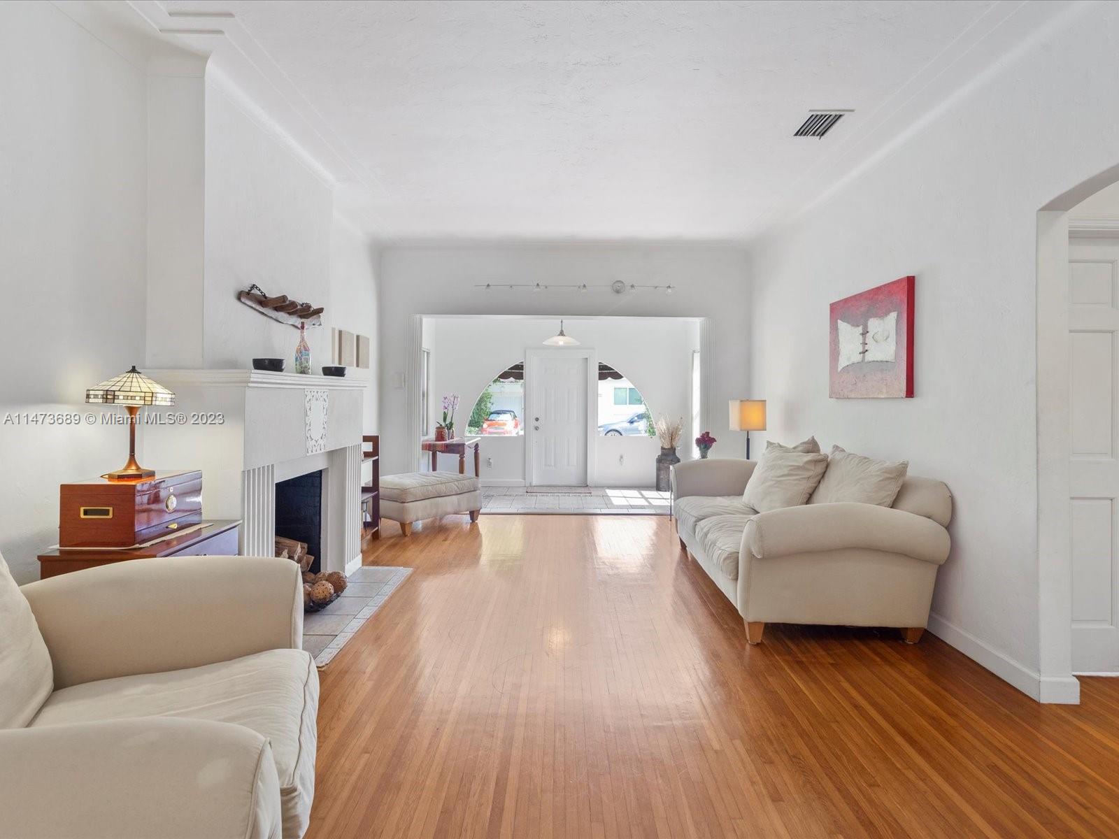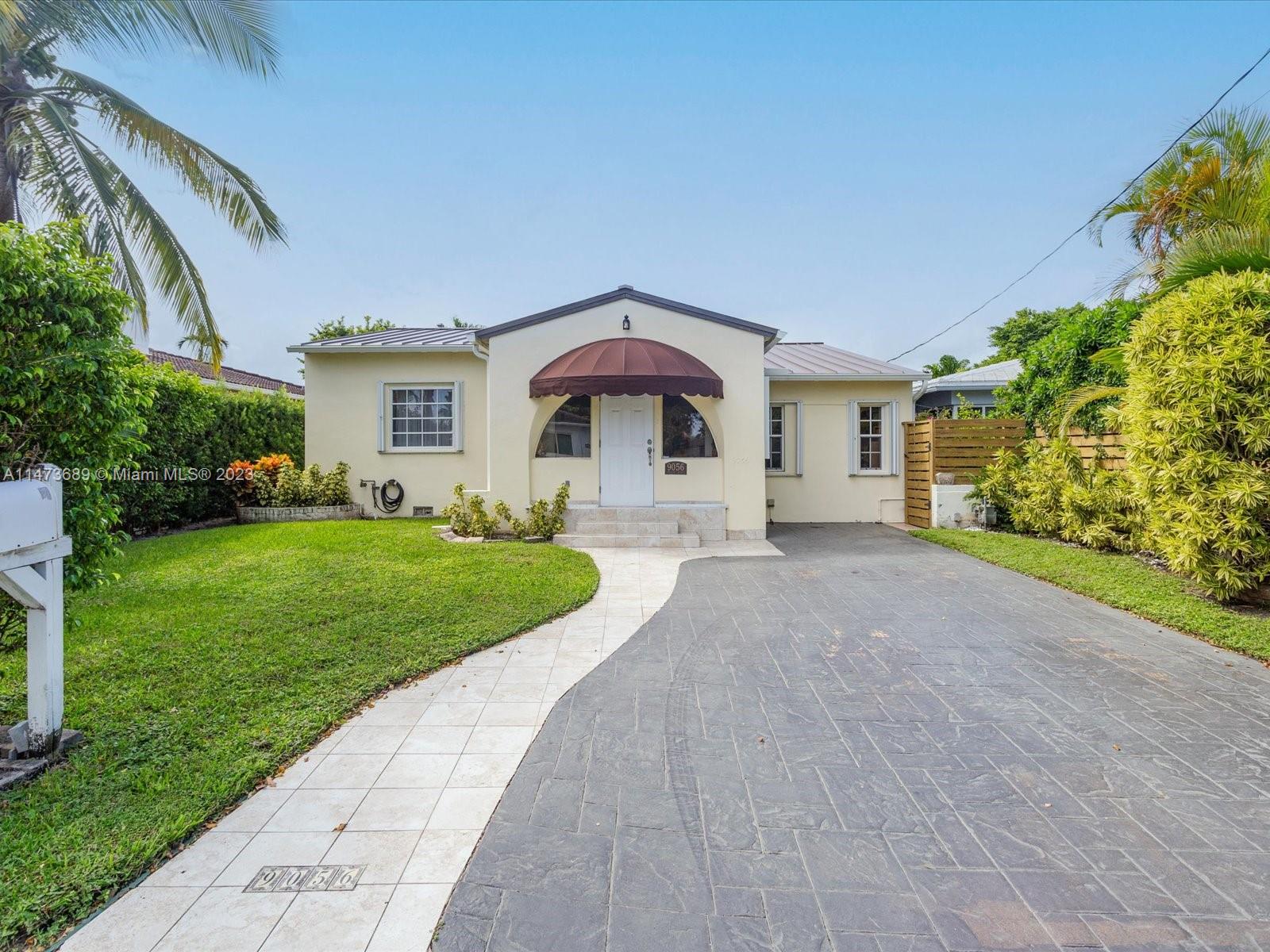 This architecturally unique gem is sure to captivate you from the moment you enter the sunlit foyer. Located in the Town of Surfside, this expansive home showcases a timeless charm with an original art deco fireplace, custom archways, high ceilings & original wood floors. There are 3 bedrooms, 2 bathrooms, an office that could be a 4th bedroom & a huge family room. The kitchen has a gas stove & granite counters. The aluminum/metal roof was installed in 2019 & all windows/doors have hurricane shutters. The private, fenced backyard has a large covered patio. Many renovations have been completed since 2005, including electrical, plumbing, gas water heater, both bathrooms & more. Walk to the beach, community center/pool, Bal Harbour Shops, dining, tennis. Zoned for A-rated Bay Harbor schools.