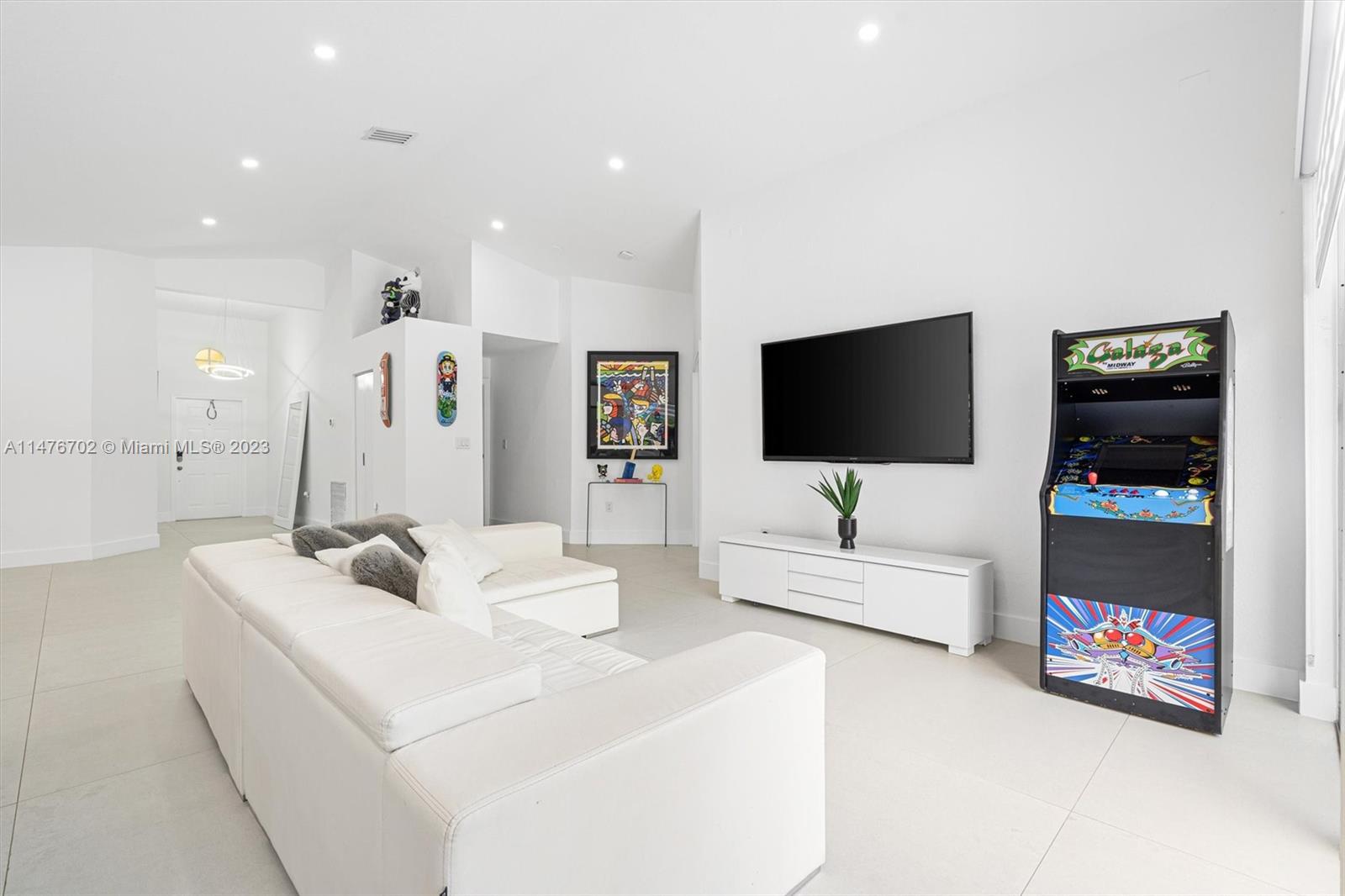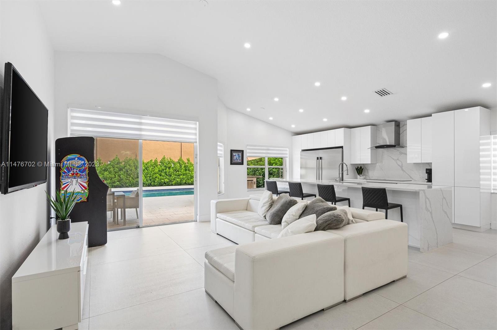 Welcome to this stunning, completely renovated one-story home located in the highly sought-after gated community of Weston, Perfectly situated just minutes from major expressways, this private corner lot offers maximum privacy. As you step inside this modern oasis featuring 3 bedrooms and two baths , you'll be immediately captivated by the open-concept layout and the abundance of natural light. The 48x48 white porcelain flooring enhances the contemporary design and creates a seamless flow from room to room. The heart of this home is undoubtedly the ultra-modern kitchen, boasting sleek finishes and top-of-the-line Frigidaire appliances. With its open concept, it seamlessly connects to the living and dining areas, making it perfect for entertaining. Step outside and discover a true oasis.