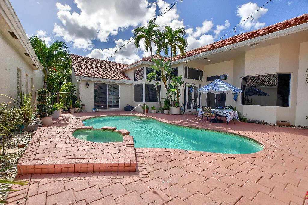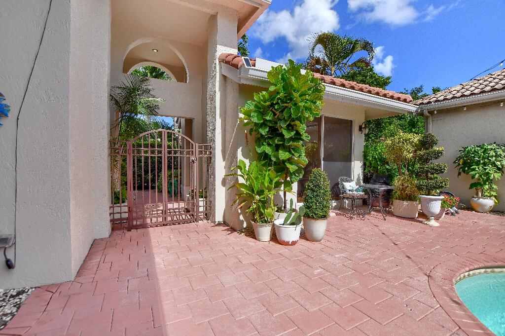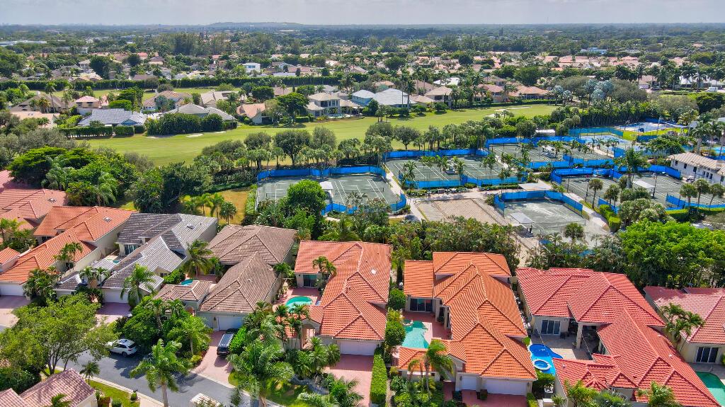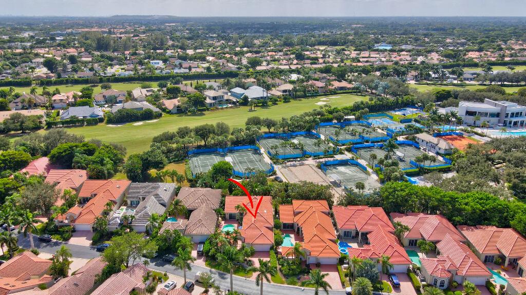 You are at the center of it all, in the Club or Boca! Just 15 minutes from anywhere in Boca Raton. Fantastic Boutique Gated Community with Top-notch Security. Only 440 select properties. A Beautiful Courtyard Style 4BR/3.5BA home. Just a short walk to the Clubhouse, Fitness center, Pool, Pickleball, Jim Fazio-designed 18-hole, championship golf course, and Tennis. New roof 2022, New Kitchenaid refrigerator 2023, new carrier air conditioner 2023. Raised ceilings filling the home with plenty of natural light. Solid core doors, Central vacuum, Walk-in Pantry, Back-up generator, and Bosch Induction cooktop. A Private Courtyard with a pool and Separate Guest house. Walking distance to Houses of Worship, and A-rated schools.