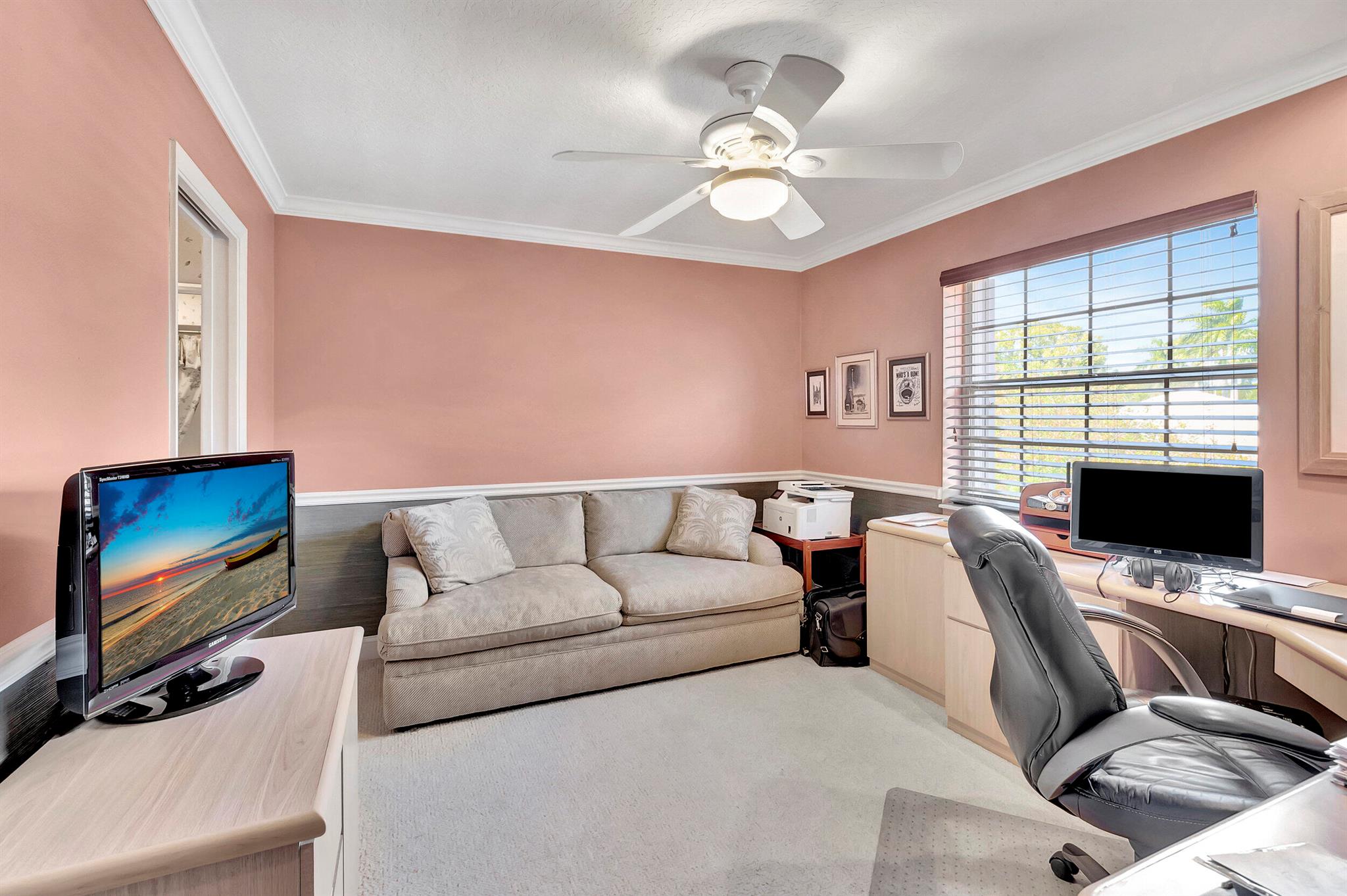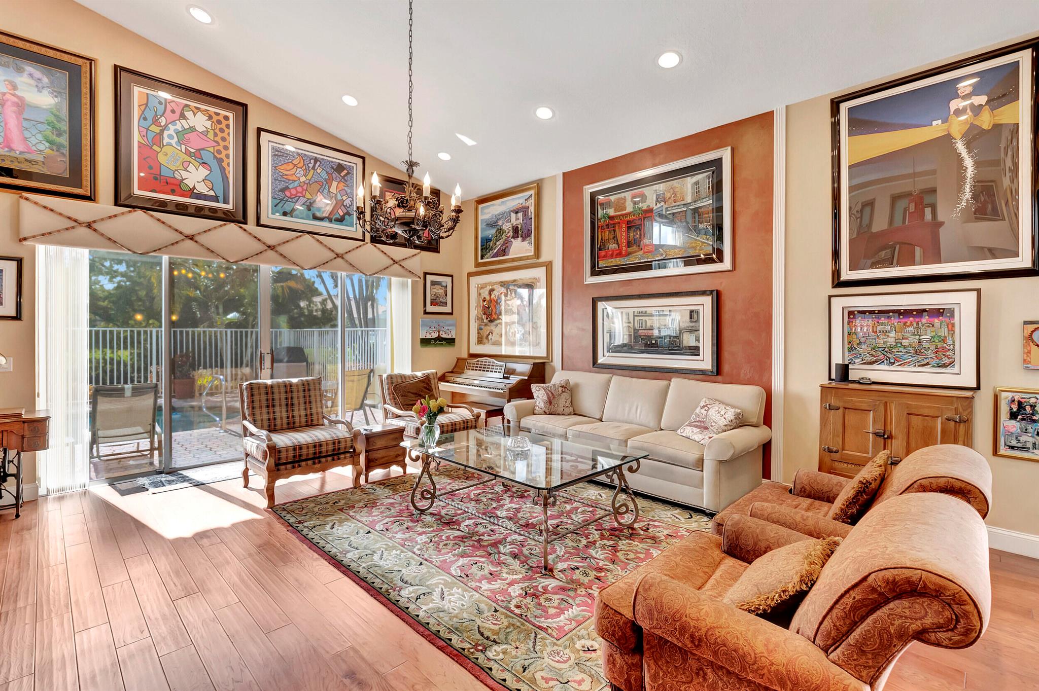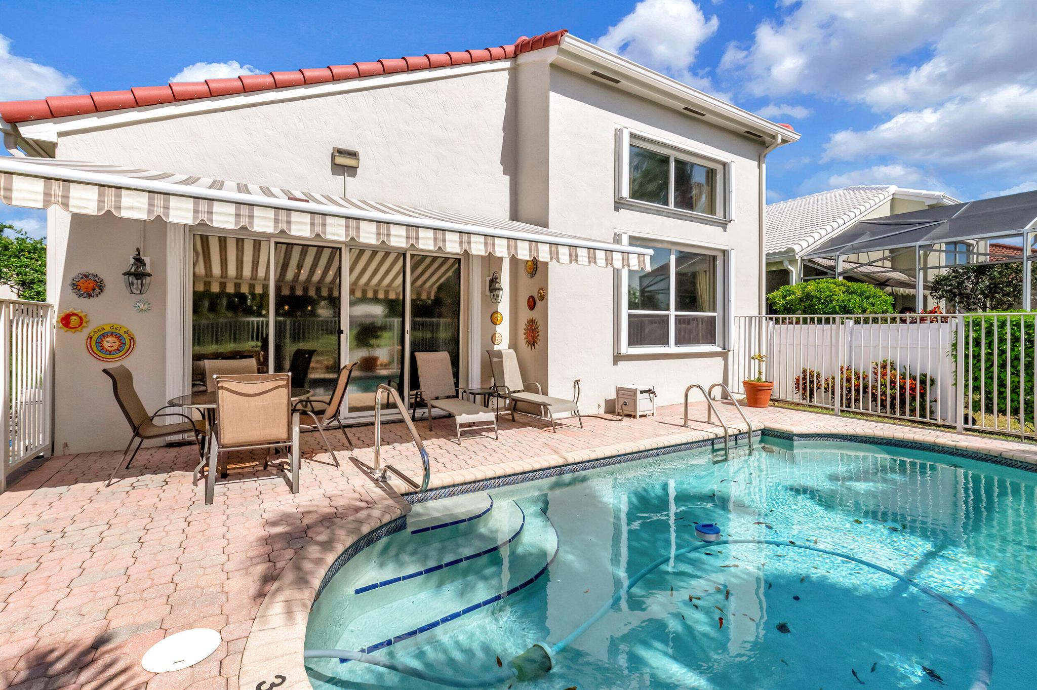 This is the home that is too good to be true ---magnificent lake and fountain view and an inground swimming pool with a retractable awning !!!! Big ticket items have already been completed: New ROOF and HURRICANE shutters on windows and doors ; New WOOD floors and crown and baseboard MOLDING that are decorative and larger than average . Updated KITCHEN and some updates in the BATHROOMS .... All CLOSETS are professionally done with shelving.This community is part of a country club without mandatory membership... and close to shopping . Primary bedroom is on first floor of this two-story home facing south. LED lights throughout the house.