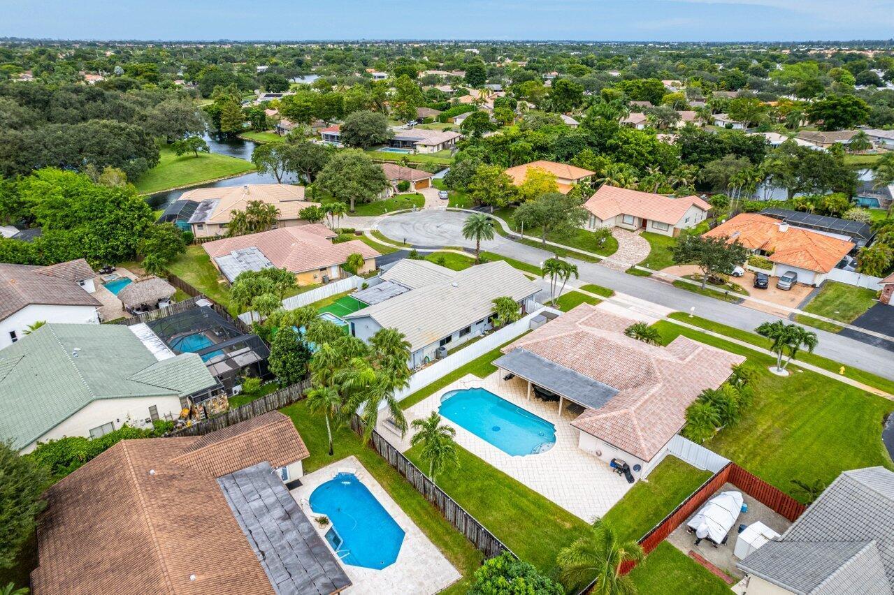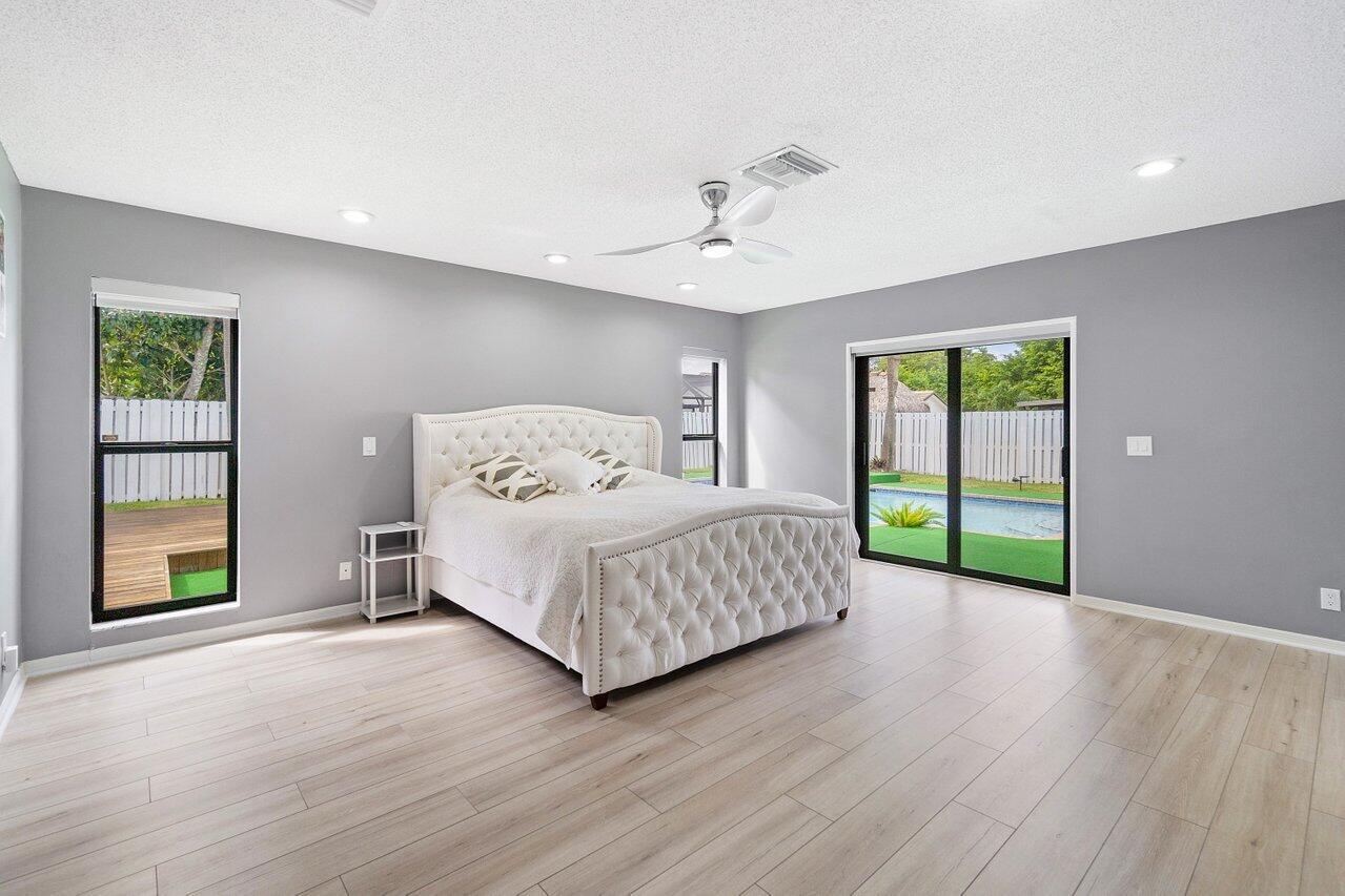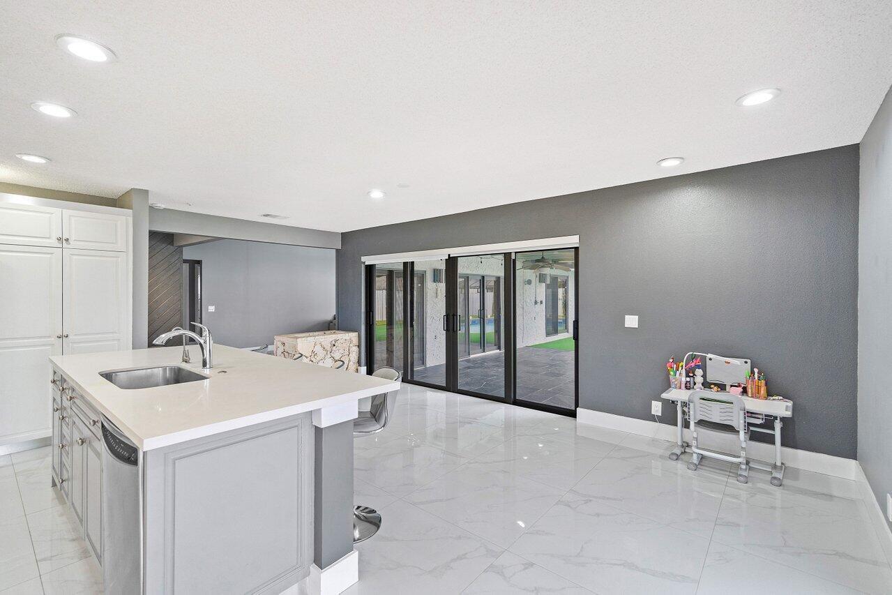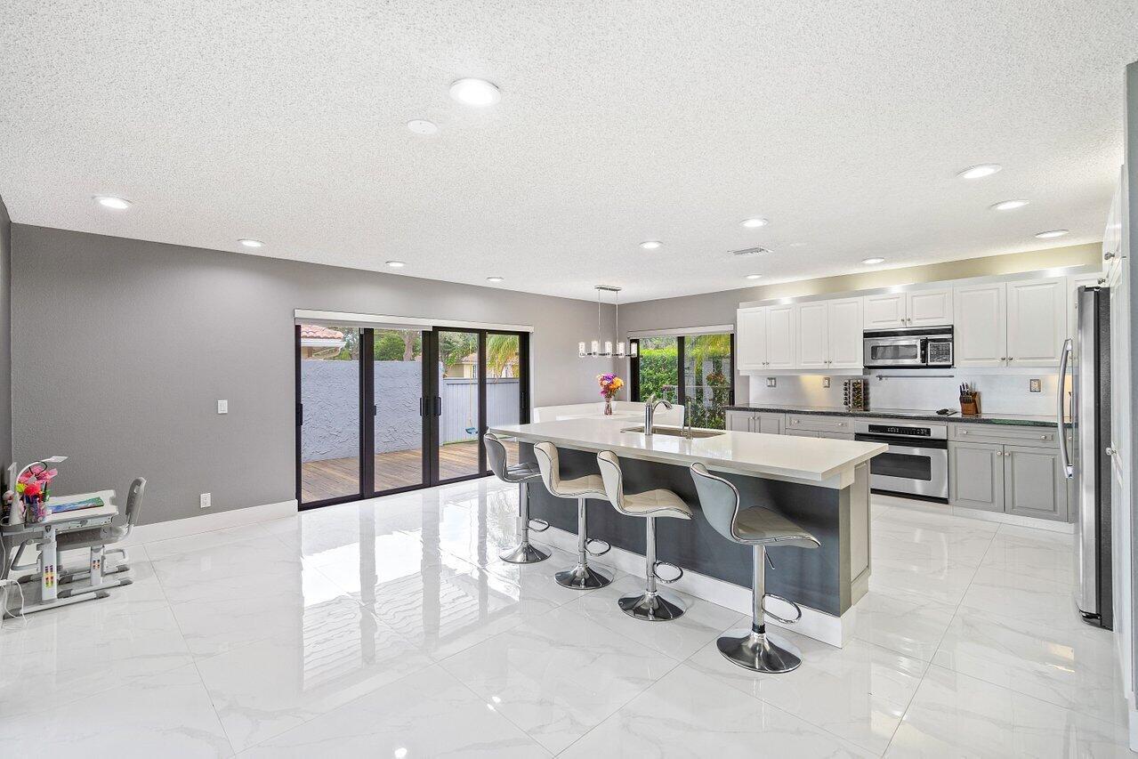 Enjoy the perfect blend of indoor and outdoor living in this exquisite 4-bedroom, 2-bathroom home with pool. lt is nestled in the heart of the coveted community of Jacaranda Lakes. You'll be impressed by the recently remodeled kitchen and primary bathroom, both featuring gorgeous contemporary upgrades. This home boasts all the modern amenities for your enjoyment: new water heater, electric car charger, rain gutters, and multiple outdoor decks thoughtfully designed for your entertainment needs. Privacy is paramount in this completely fenced-in backyard, ensuring a serene and secluded atmosphere. The property is equipped with impact windows and doors throughout, and a recently converted irrigation system. Welcome to a lifestyle of comfort and luxury in this captivating Jacaranda Lakes