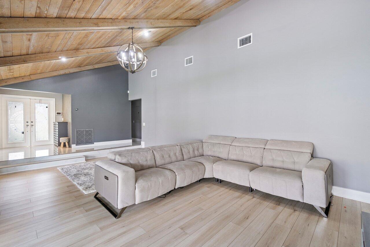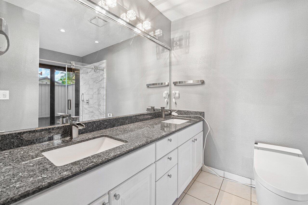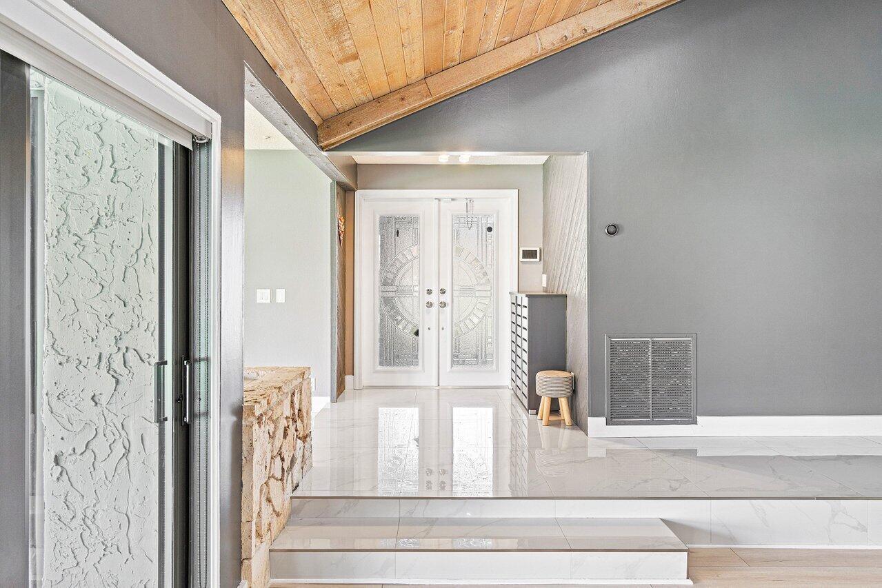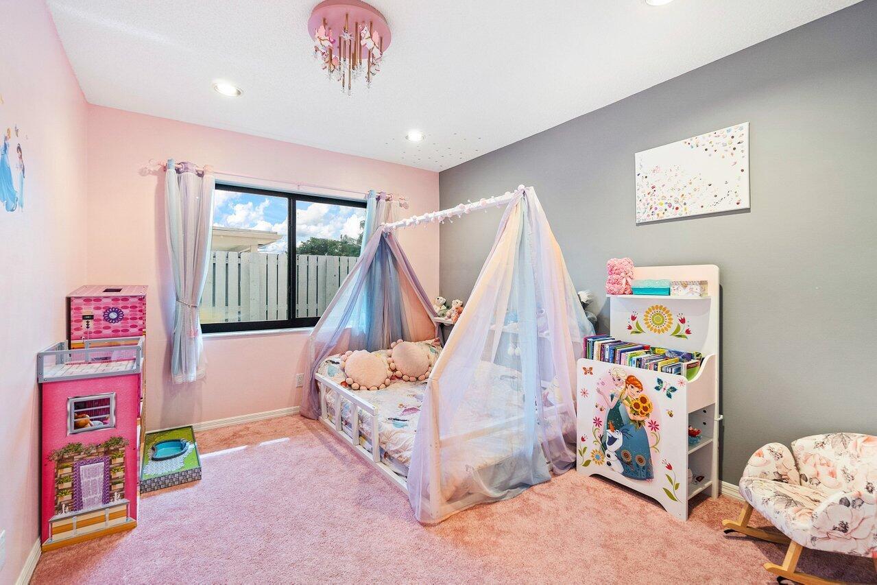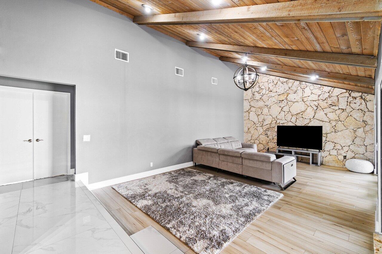 Enjoy the perfect blend of indoor and outdoor living in this exquisite 4-bedroom, 2-bathroom home with pool. lt is nestled in the heart of the coveted community of Jacaranda Lakes. You'll be impressed by the recently remodeled kitchen and primary bathroom, both featuring gorgeous contemporary upgrades. This home boasts all the modern amenities for your enjoyment: new water heater, electric car charger, rain gutters, and multiple outdoor decks thoughtfully designed for your entertainment needs. Privacy is paramount in this completely fenced-in backyard, ensuring a serene and secluded atmosphere. The property is equipped with impact windows and doors throughout, and a recently converted irrigation system. Welcome to a lifestyle of comfort and luxury in this captivating Jacaranda Lakes