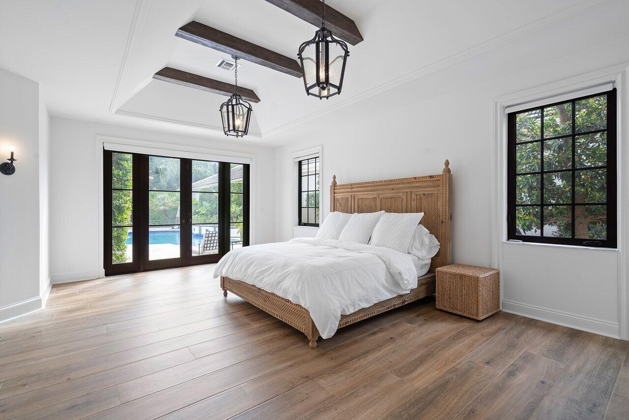 Rarely available, gut renovated and ready for immediate move-in, in Clubside at Woodfield CC. Enjoy your own private courtyard as well as a backyard with golf course views. With 4 BR, and 4.5 baths, this bright and spacious one-story home includes all new: roof, impact windows, custom wood doors, wide plank porcelain flooring that looks like wood, wood-planked ceilings, painted and smoothed walls and baseboards, and custom built-ins. All new appliances, including all A/C units, washer/dryer, hot water heater, Sub-Zero fridge, 4 Sub-Zero freezer drawers, Miele dishwasher, and AGA ''Elise'' oven and stovetop. All home lighting and wiring is new as well. Additional features include a reverse osmosis water system and electric blackout shades in bedrooms.