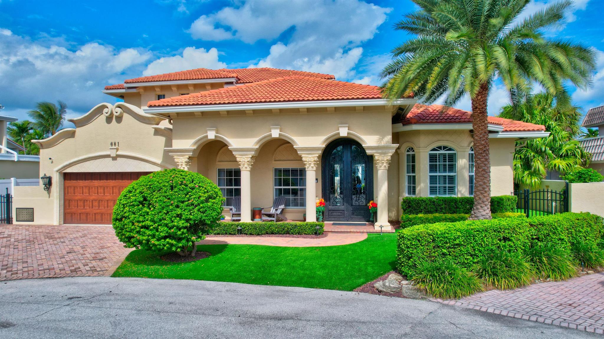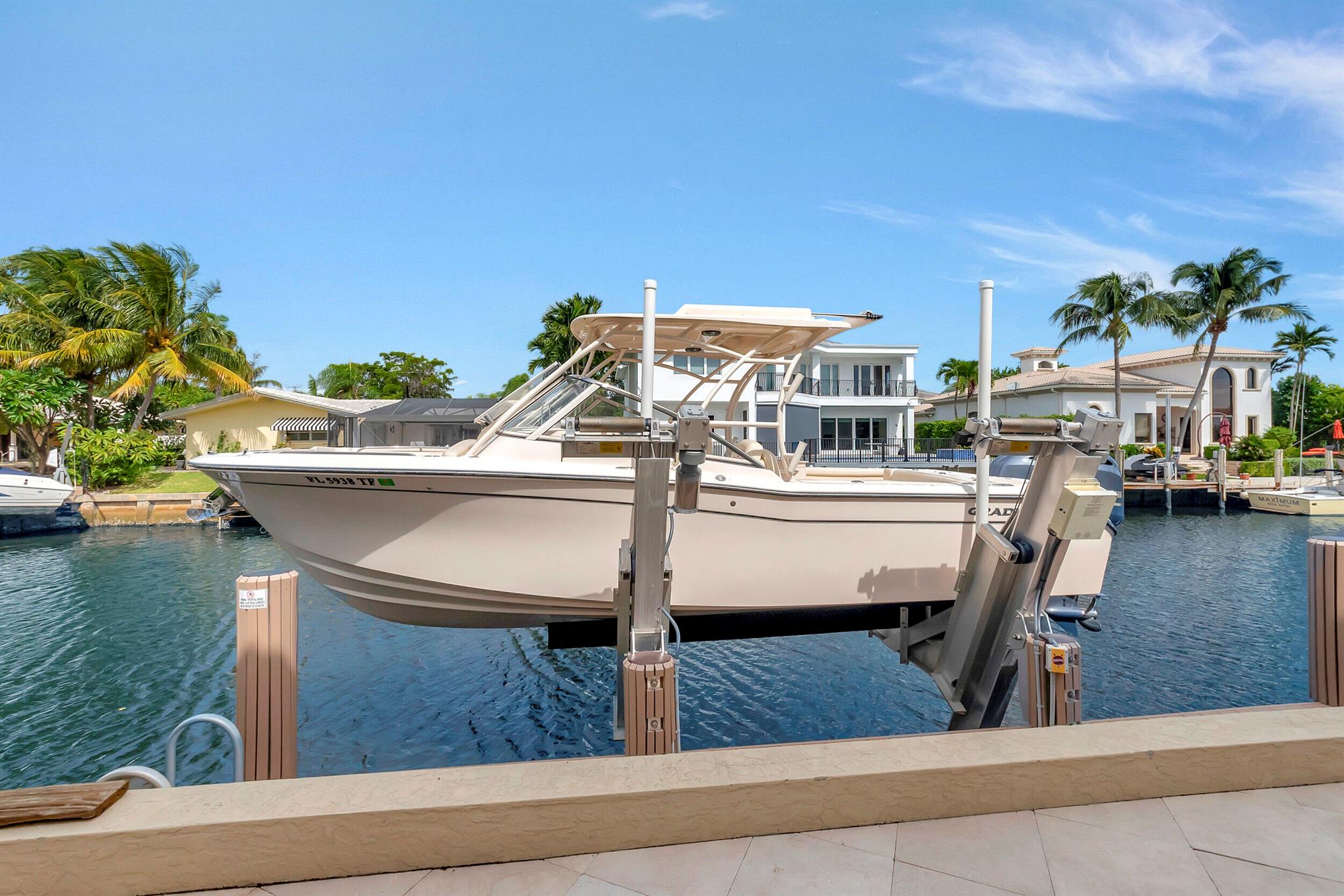 Bring your yacht and walk to the beach from this exquisite waterfront oasis! This stunning property features a primary downstairs bedroom, ensuring convenience and luxury for all. Enjoy year-round swimming in the heated pool, and rest easy with a full house generator for peace of mind. Entertain in style with a state-of-the-art summer kitchen, and keep your vessel secure on the 20,000 lbs aluminum lift. The new deck and dock pilings provide a solid foundation, while impact glass throughout the home offers added protection. High ceilings create an open, airy feel, and the putting green is perfect for golf enthusiasts. Elegant marble floors add a touch of timeless elegance. 80ft of water frontage. Don't miss this waterfront paradise!