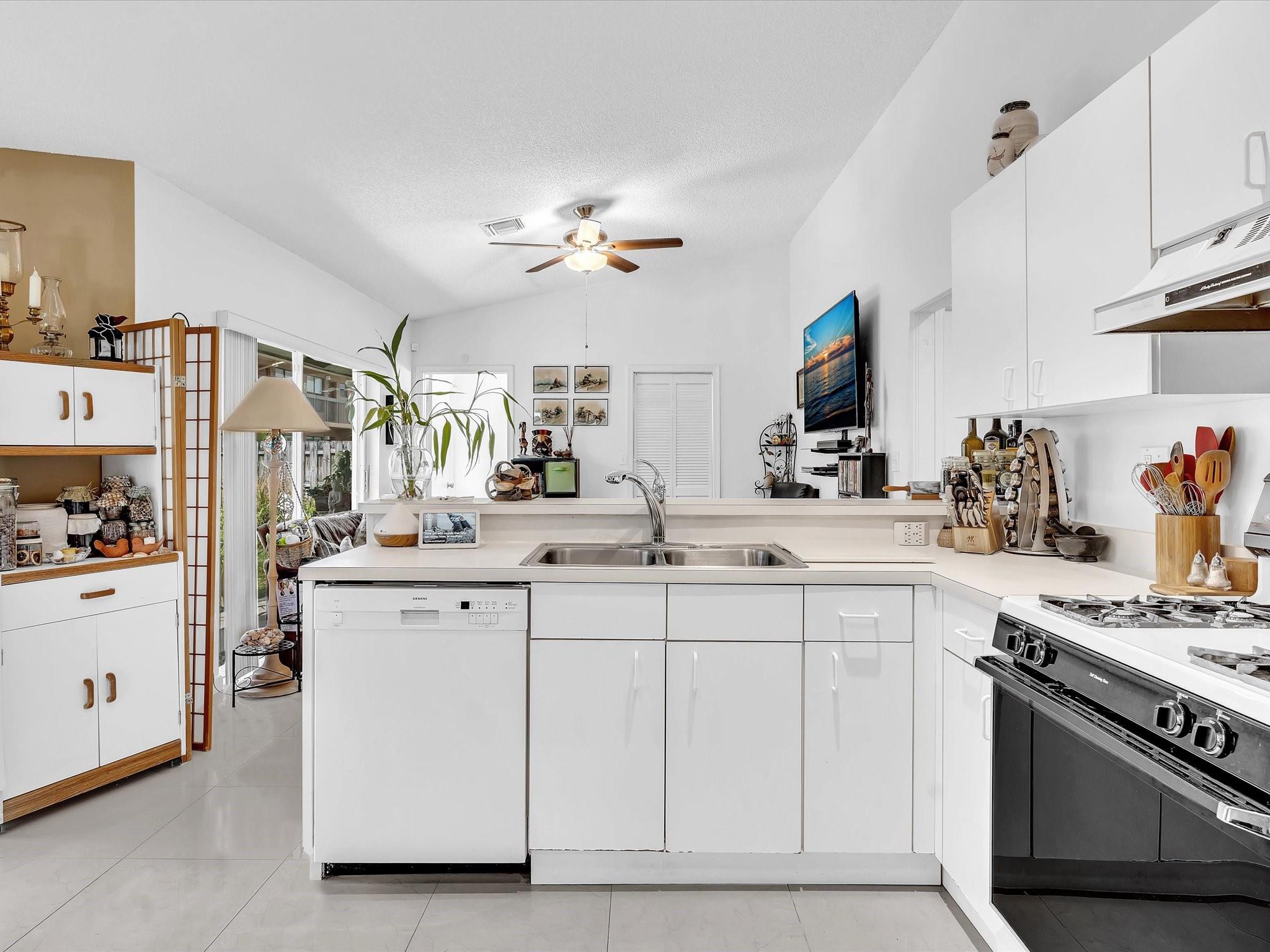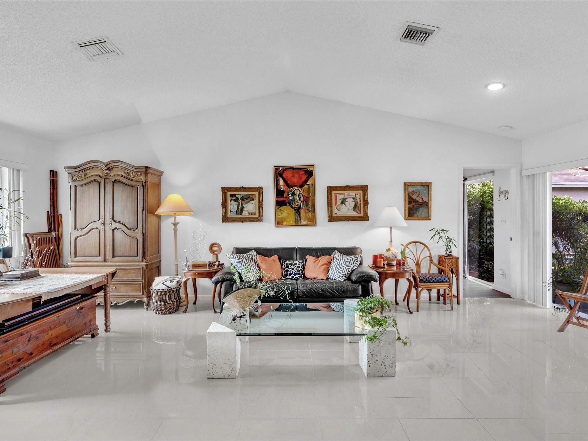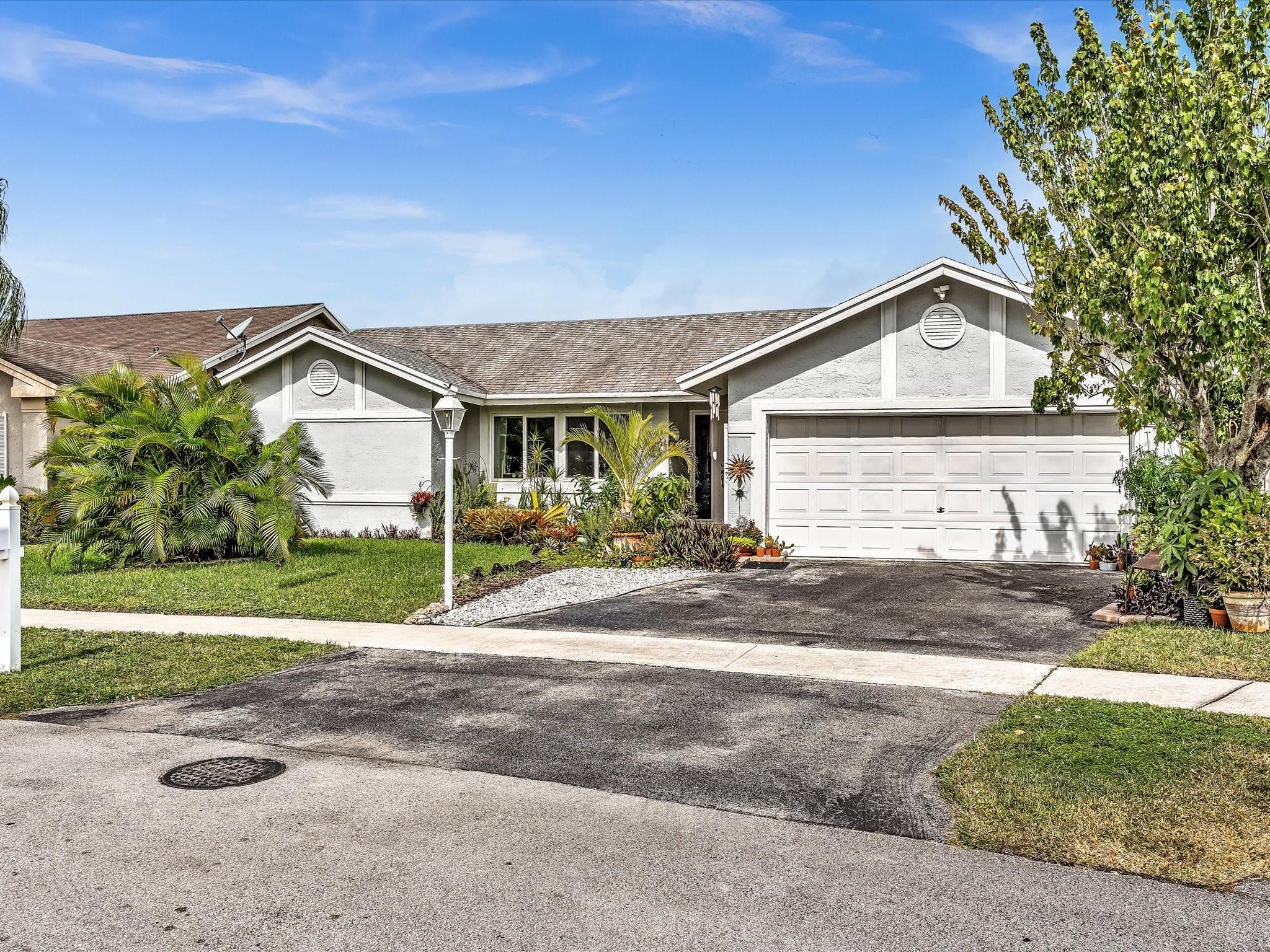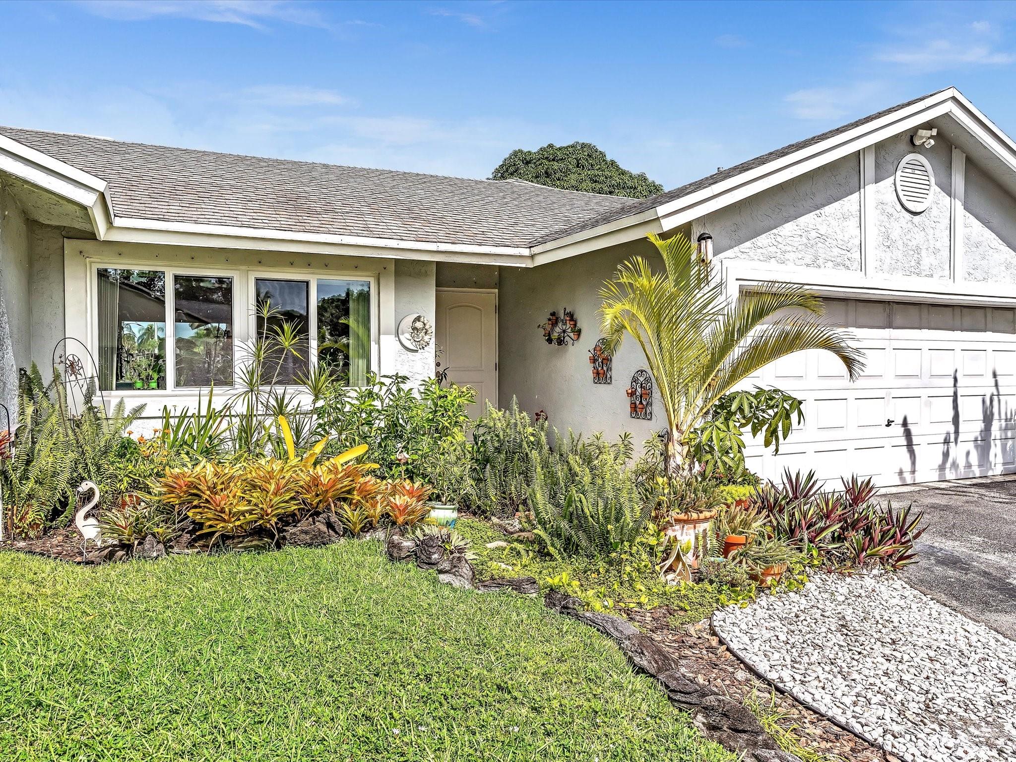 Welcome to your dream home! This 3-bed, 3.5-bath gem with an 2nd Master or In-laws quarters with attached 2 car garage is nestled in the serene and well maintained Welleby neighborhood. Abundant natural light streams from the impact windows with the exception of the sliding doors which have shutters. Vaulted ceilings with LED lighting throughout create an inviting open atmosphere. Two master suites with huge walk-in closets and large baths await. The well-appointed kitchen features a pantry and sleek porcelain tile floors. Spacious bedroom with wood laminate flooring! Outside, a lush oasis with fruit trees and a charming stone patio beckon. Ample storage, and beautiful outdoor spaces, it's not just a house; it's your new home. Schedule your visit today!