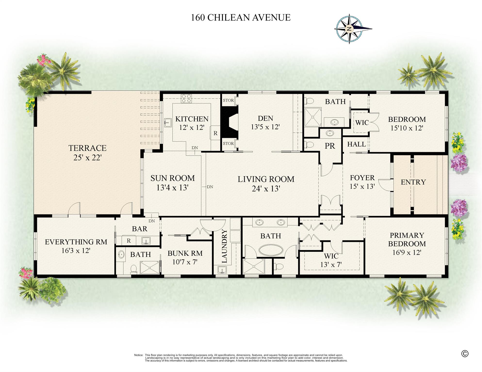 Welcome to 160 Chilean! Located on the ocean block of Chilean and coming off of a fresh 2 year gut renovation, this pristine residence lives like brand new construction. Situated conveniently in the heart of town on Palm Beach Island and with a high elevation, this home includes 3BRs (one of which is a well thought-out bunk room) + office and den, 3.5BAs, and nearly 3,200 square feet of total living space. Featuring a clean, classic, and effortlessly elegant aesthetic, the overarching design direction for the revitalization was to be thoughtful about every inch of space and to add special details to every room.