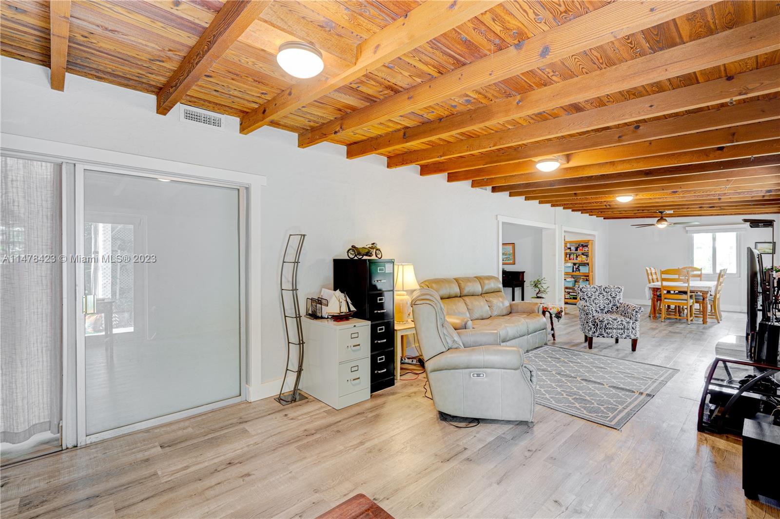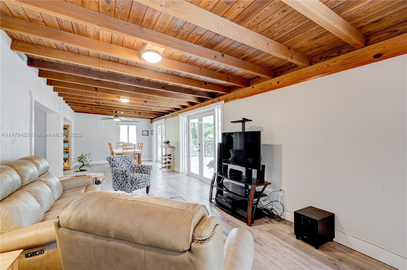 Amazing Pinecrest Opportunity! Lowest priced single family home in Pinecrest!! 3bed/2bath updated ranch home on a 16,330 square ft. tropical oasis lot. Conveniently located close to shopping centers & highways. This home has it all. Split floor plan with newly installed vinyl flooring throughout, master bathroom completely updated which leads to an outdoor atrium. Large family room w/cedar ceiling overlooking the expansive yard w/ exotic trees & plants + plenty of room for a pool. Double Garage converted as room & storage, Impact doors, + More. Home is larger than tax roll. Multiple New Constructions on same street. Must See!!