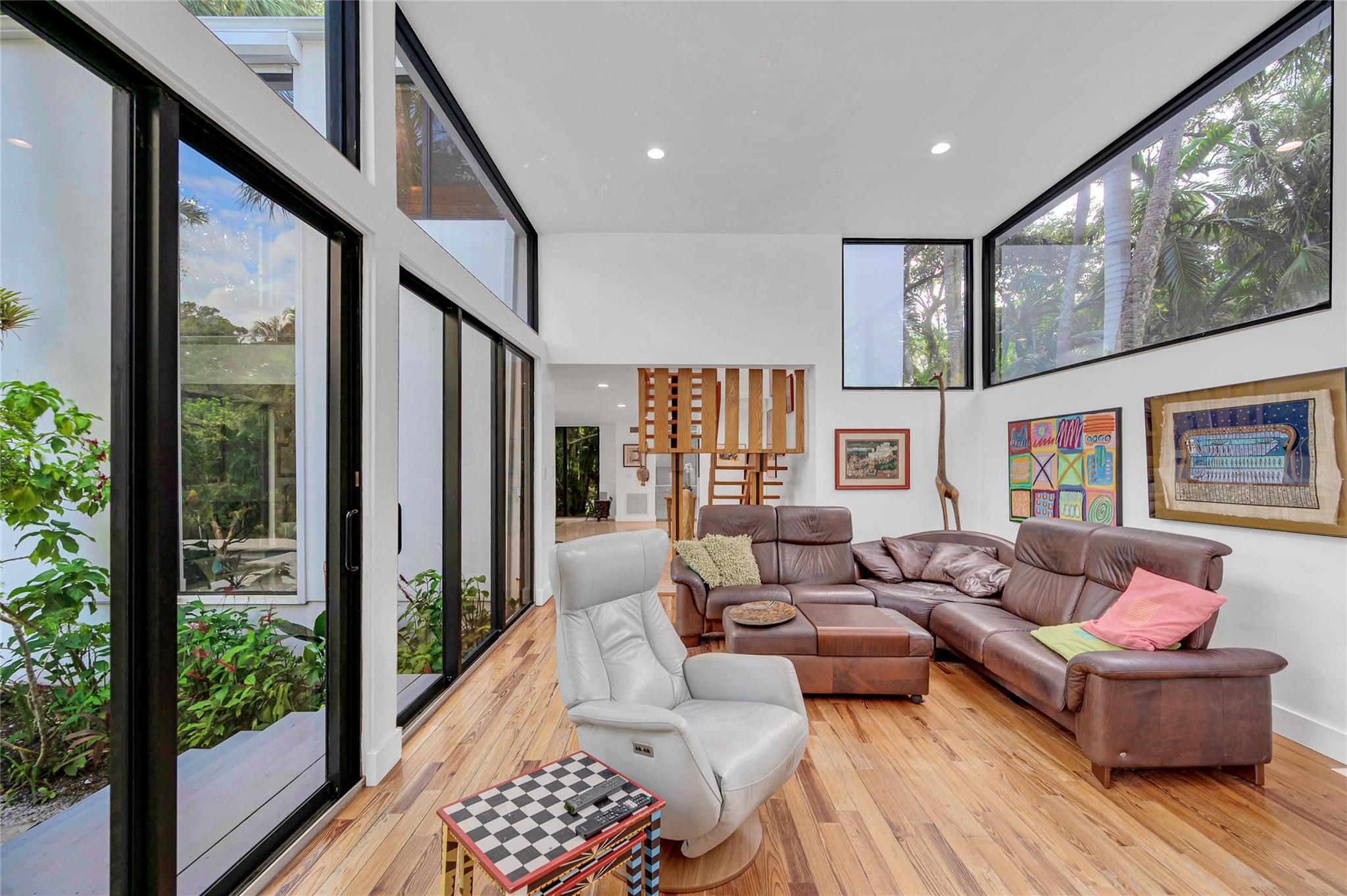 An oasis of luxury and privacy, this nearly two-thirds acre property is located on a canal in a designated bird sanctuary with a canopy of mature oaks, palms and tropical plants. Designed by award-winning architect Robert Vick, this unique, loft-style home sits on the cul-de-sac of a private road of 8 estate-like properties. A light-filled great room features living and dining areas, an 18’ fireplace and a stainless-steel clad kitchen. The adjacent family room and guest bedroom suite (or office) features soaring glass walls and windows overlooking the pool and gardens. A massive primary bedroom suite occupies the second level. Extensive updates include a new roof and EV charging station in double carport. A rare opportunity to live in a nature lover’s paradise just 10 minutes from downtown